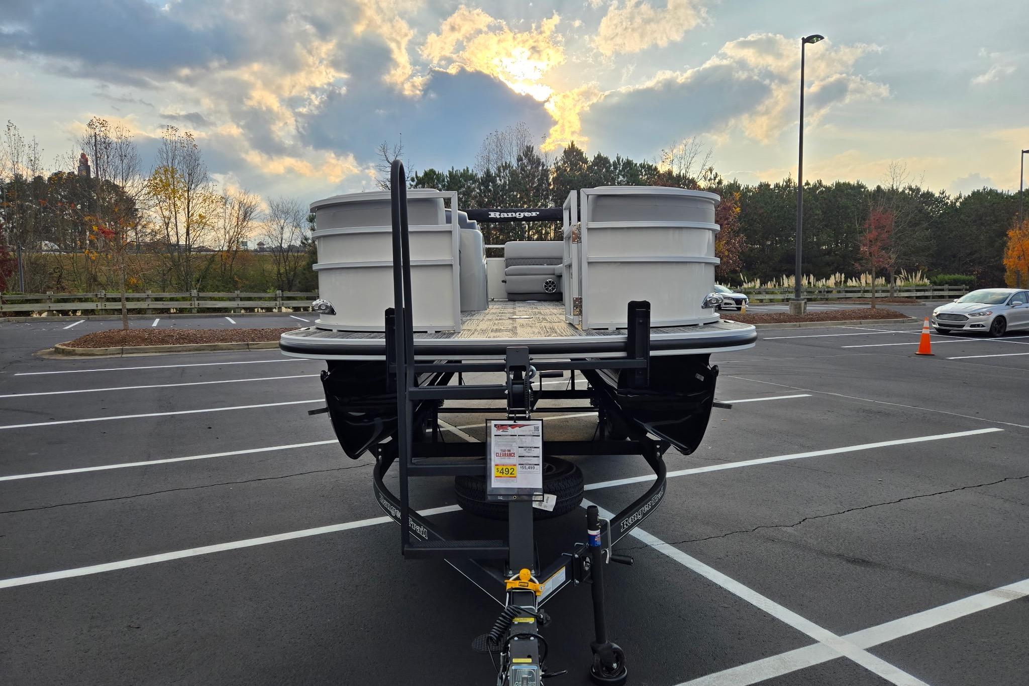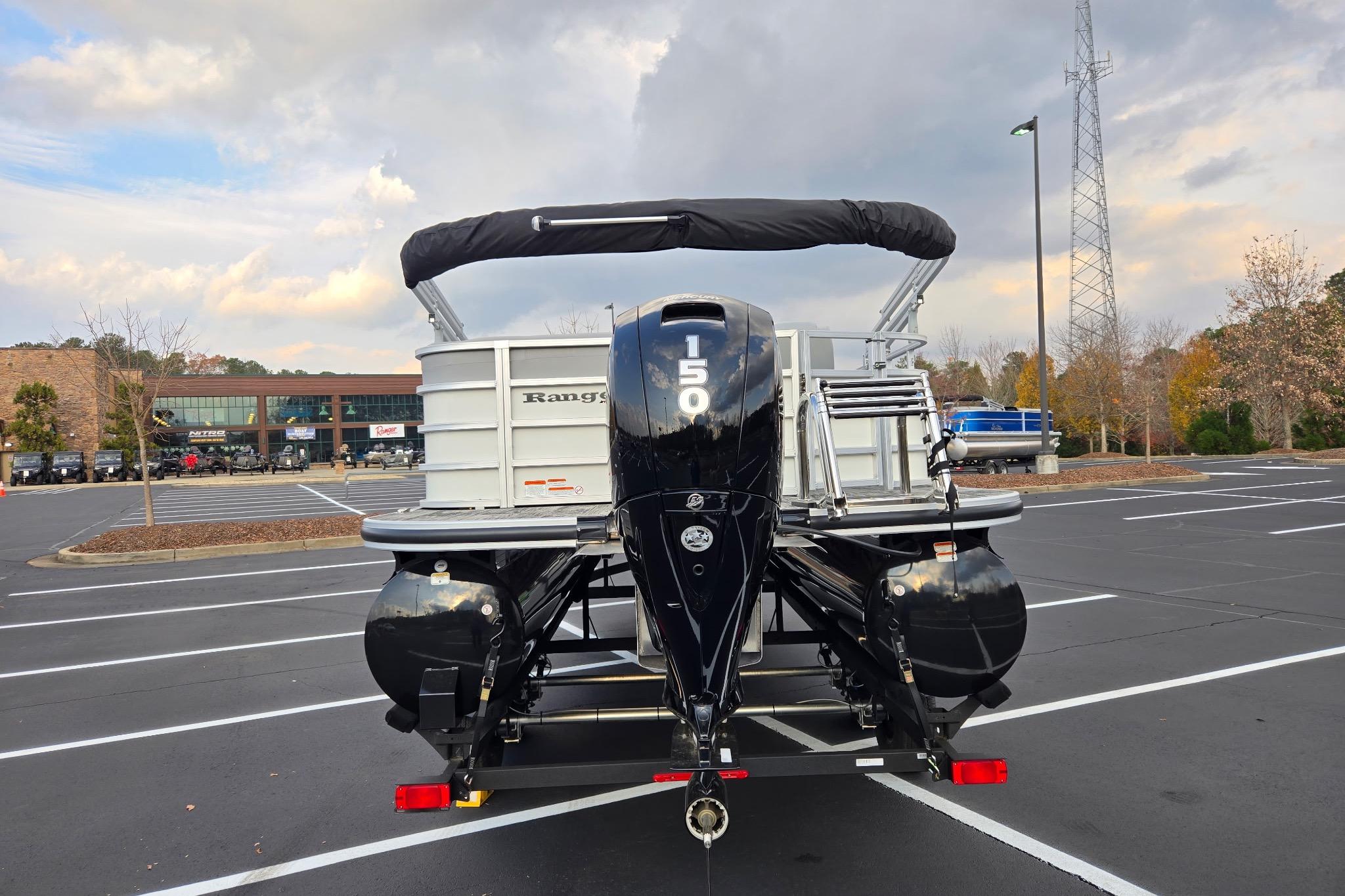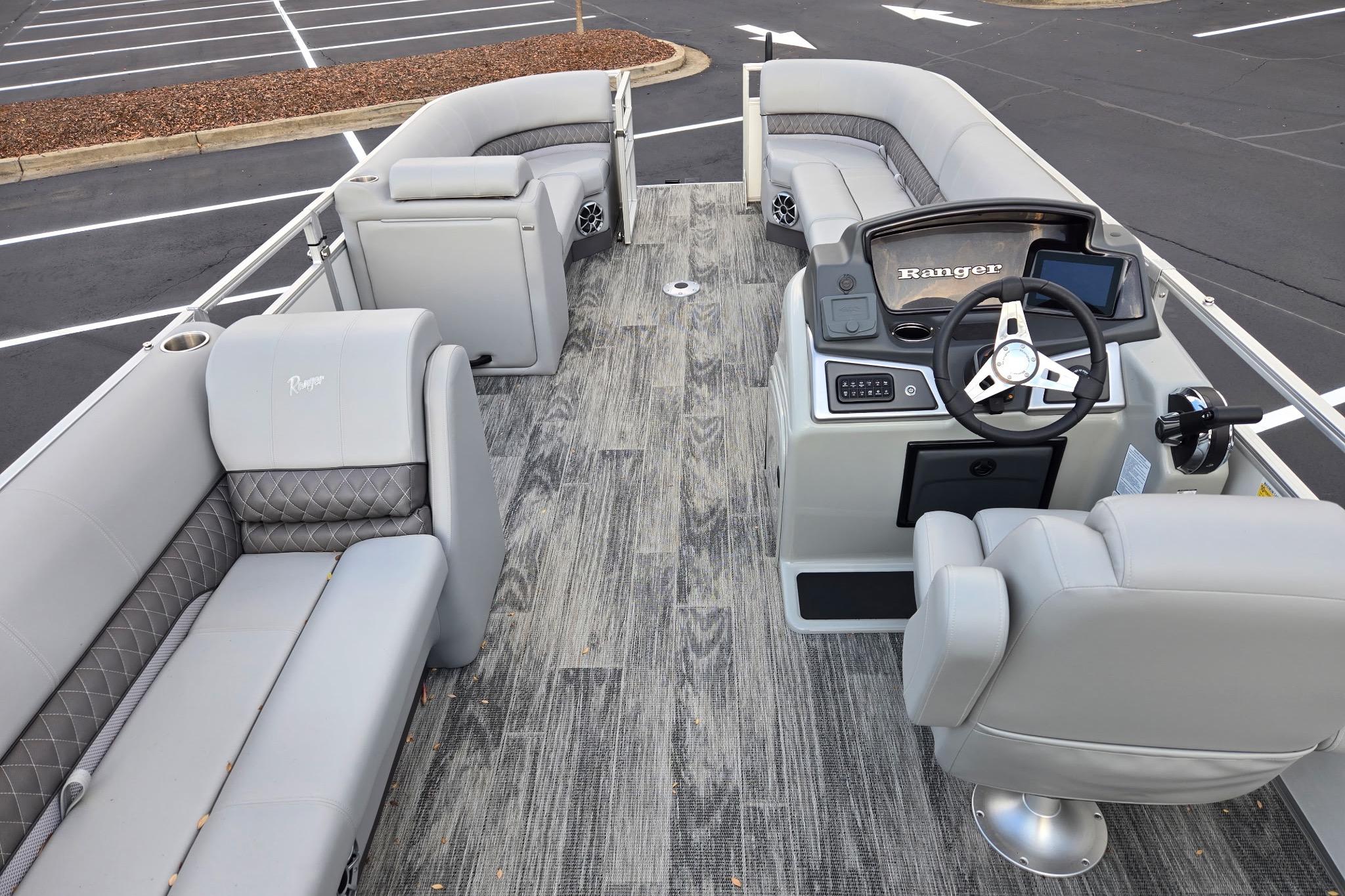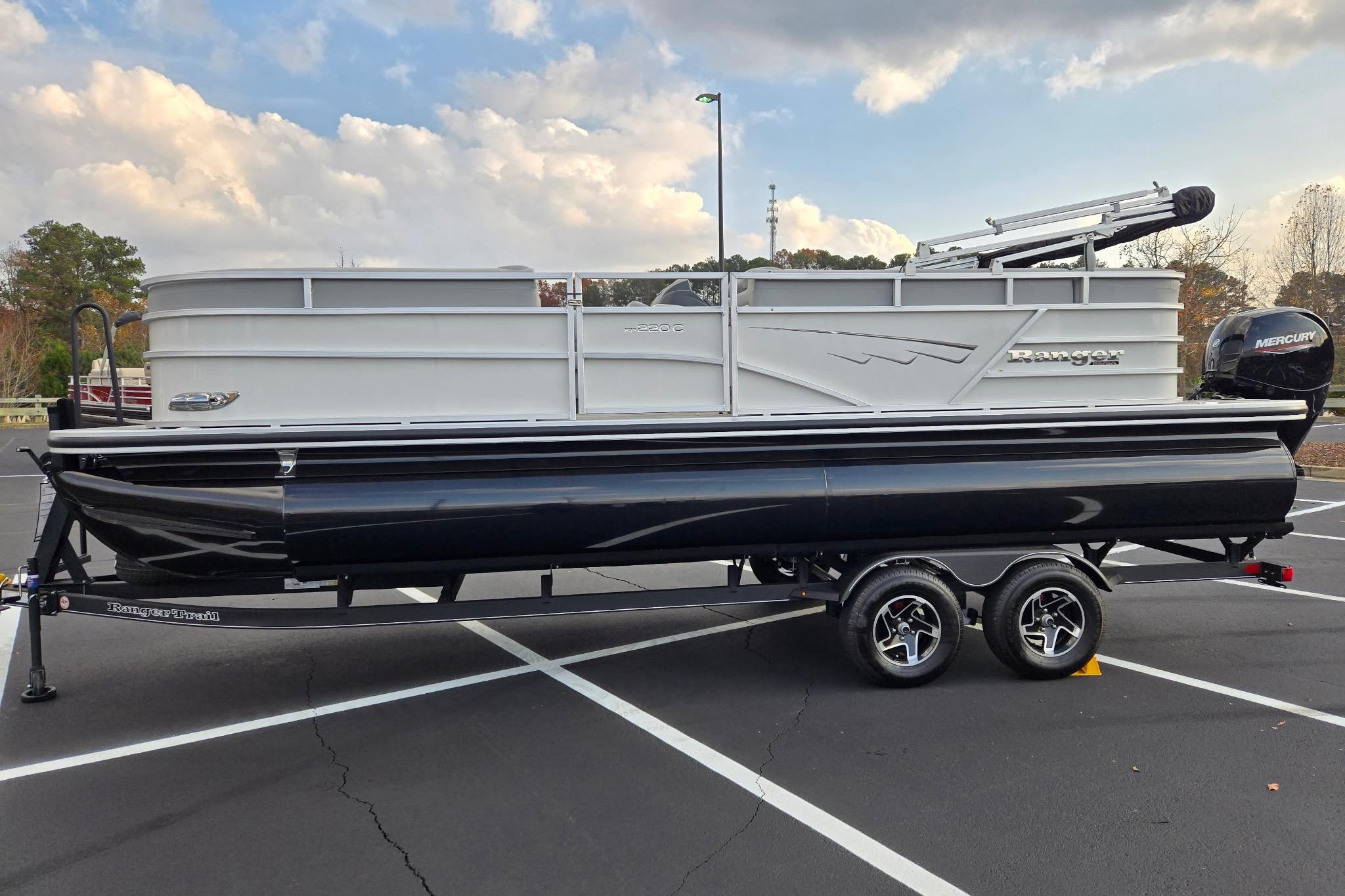 The 2025 Ranger® Reata® 220C is your new floating headquarters for your on-the-water adventures. With a long list of high-end features, a great amount of space, and quality craftsmanship, the Reata® 220C is a tough boat to beat. This cruise pontoon's 22'1" deck holds a crew of up to 10 and boasts an array of features built for fishing, relaxing, and fun in the sun. Cool off under the Dowco® EasyLift 10' bimini top as you relax in this pontoon's 3 corner lounges or the swiveling captain's chair at the helm. Customize your deck with the movable drink holders and tables. Stow gear and supplies in the under-seat storage compartments. The full-width aft swim platform has a mount for your optional ski-tow pylon and a fold-down ladder for easy reboarding for those who want to dive into the waters. Between the luxury, woven, cushioned floor, the 4-speaker, Bluetooth®-compatible Wet Sounds® stereo, and more, this pontoon is a big upgrade for your days on the lake. The 2025 Ranger® 220C comes standard with a 115hp Mercury® ELPT Pro XS® FourStroke Command Thrust outboard motor and has a recommended maximum 150hp rating.