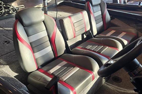 • Custom fitted marine upholstery- driver/passenger bucket seating w/ center fold down & two matching fishing seats
