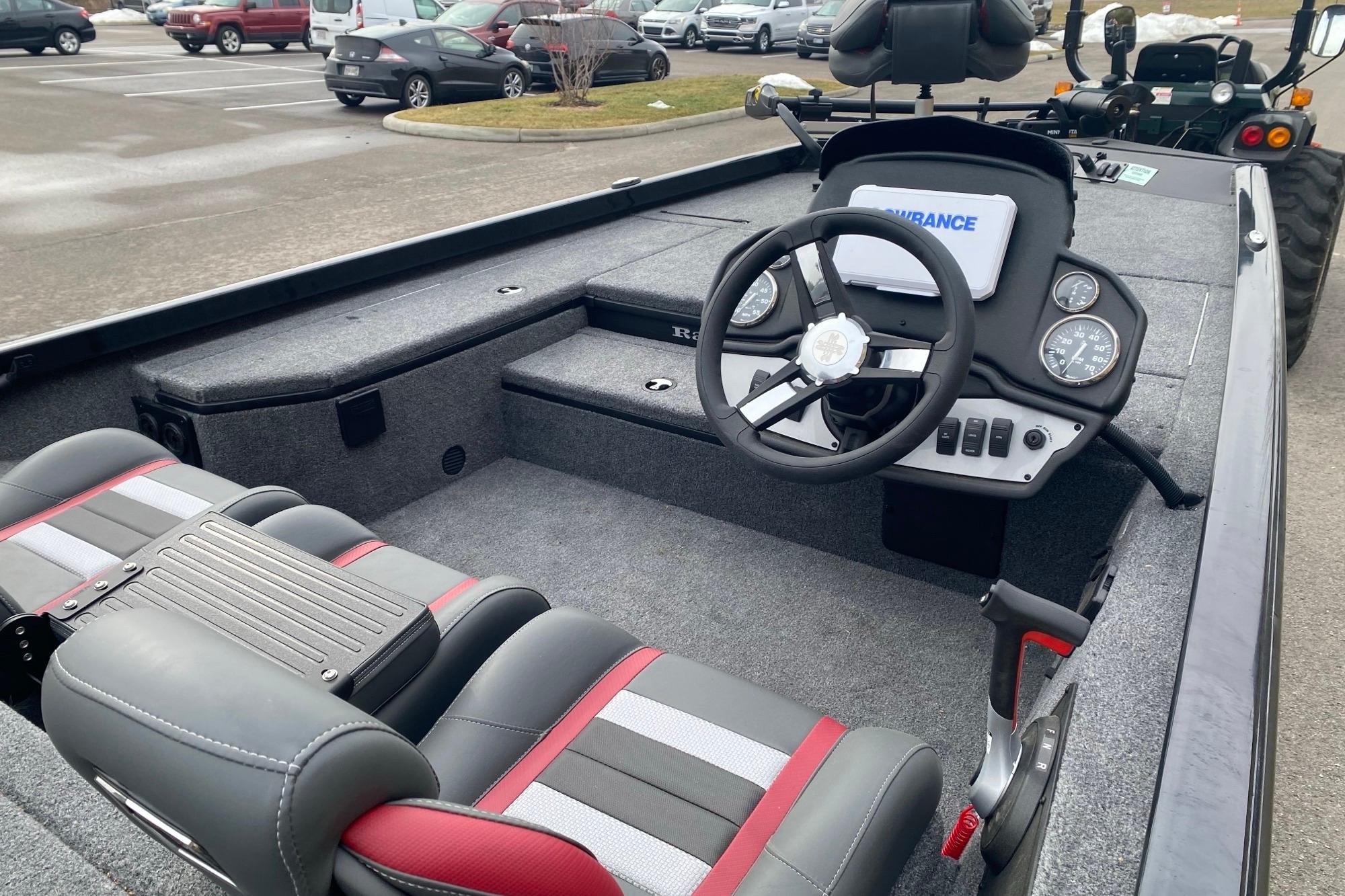 • Custom fitted marine upholstery- driver/passenger bucket seating w/ center fold down & two matching fishing seats