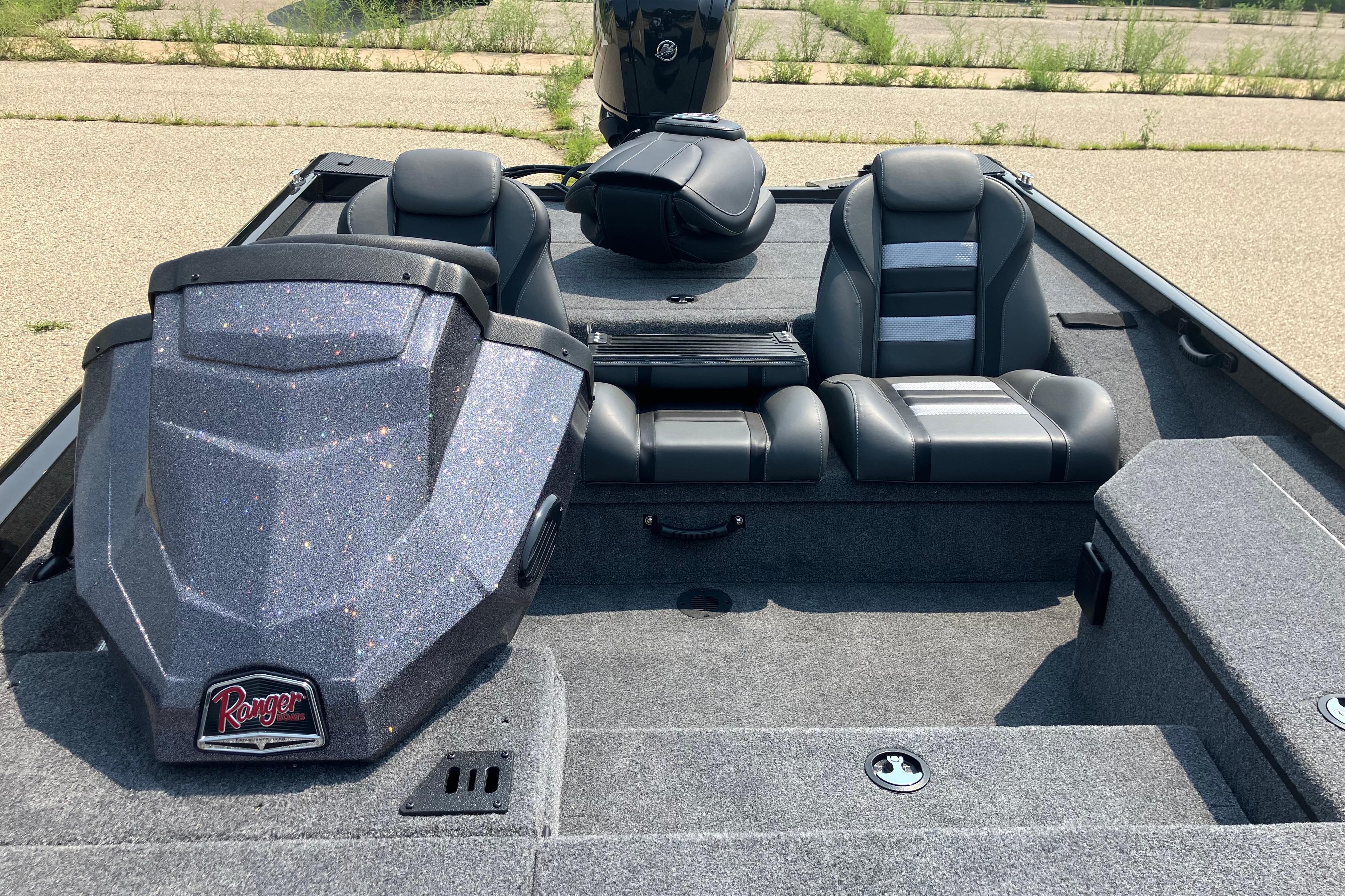 • Custom fitted marine upholstery- driver/passenger bucket seating w/ center fold down & two matching fishing seats