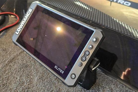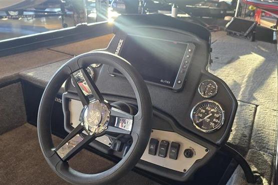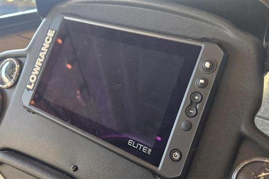 • Custom fiberglass console w/ flush-mounted depthfinder, tach, speed, fuel, trim gauge & easy touch switching