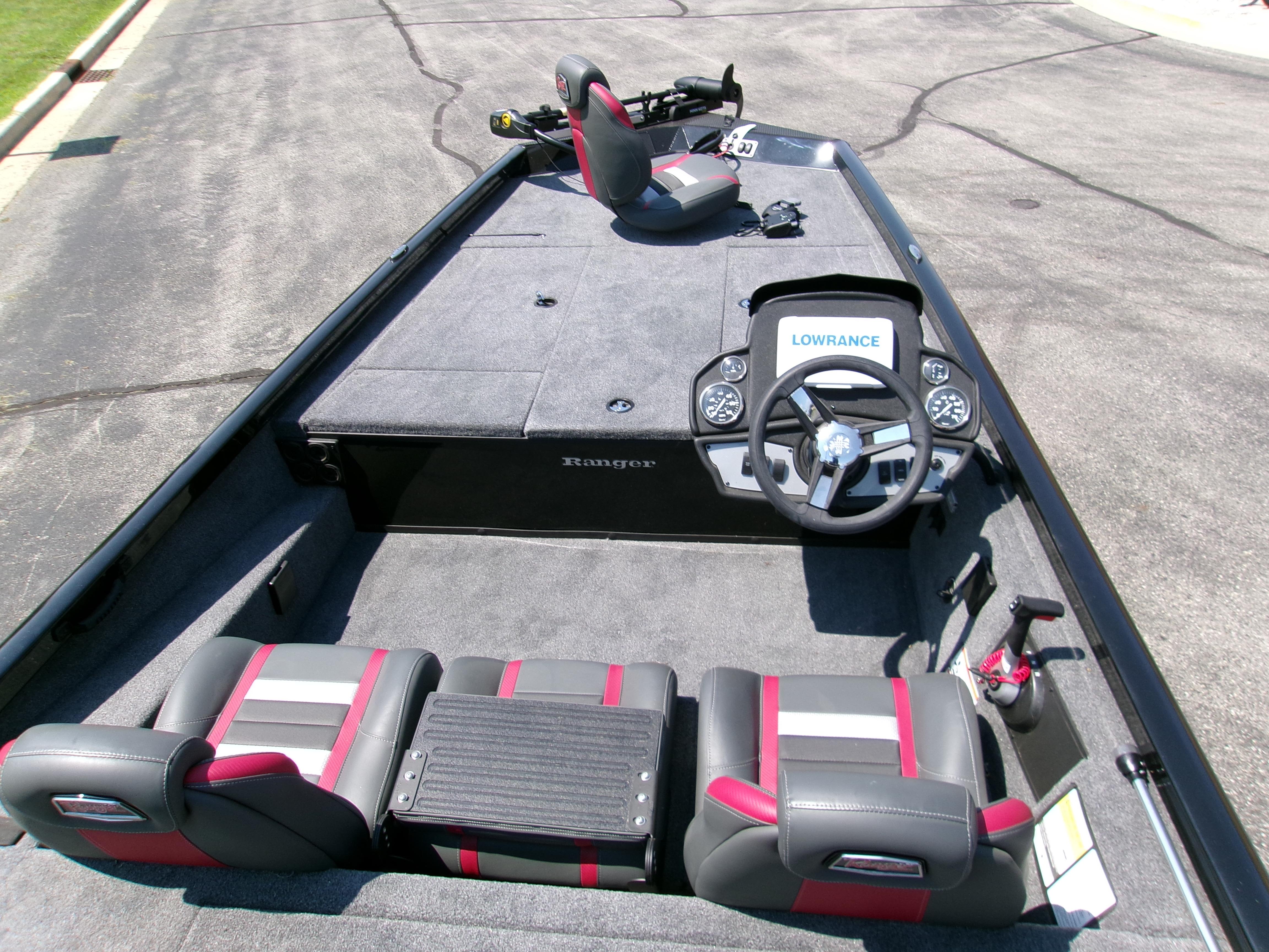 The RT188 is the workhorse of the Ranger aluminum lineup. It has the perfect size, performance, and feature set for derby day in a package that’s easy to own and easy to fish. Plus, it’s Ade even more capable with the addition of the optional Ranger Cup Equipped packages that add a pair of 9" fishfinders and an upgraded trolling motor. The all-welded design is bristling with strength thanks to the full dose of flotation foam packed from bow to stern. This foam serves to insulate the hull from wave shock and vibrations and also deadens sounds so yo ucla stealthily slide into the shallows. A larger-than-most front deck leads the pack in stability and fishability; you won't be stepping on your rods due to a cramped, narrow bow design. The smart layout continues with a recessed trolling motor foot pedal, an 8-foot, 6-inch center rod and tackle locker that’s flanked by two massive storages. A handmade fiberglass console houses electronics up to 12 inches as well as precision steering and rocker switches. When combined with a custom-matched Ranger Trail trailer, the RT188 offers Uncommon Performance At Every Level.
