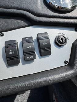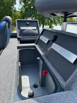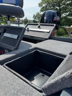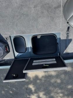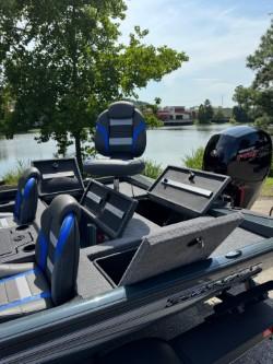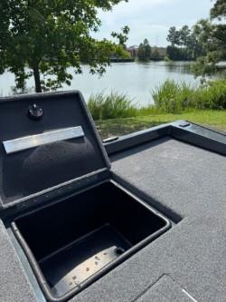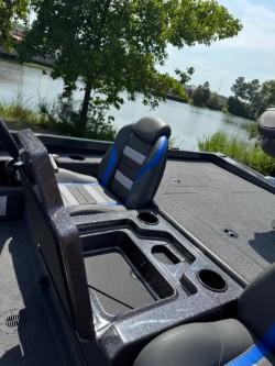 • Custom fitted marine upholstery- driver/passenger bucket seating w/ center fold down & two matching fishing seats