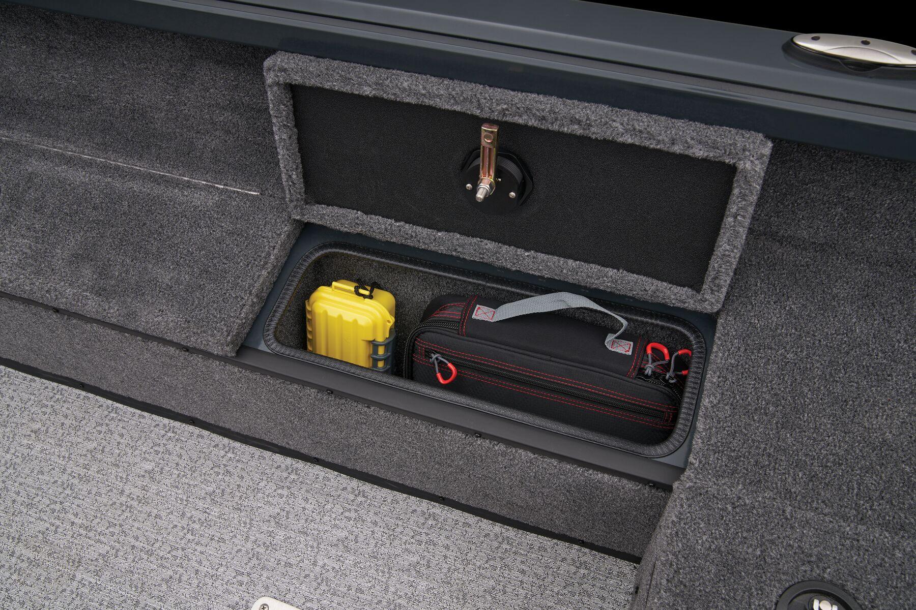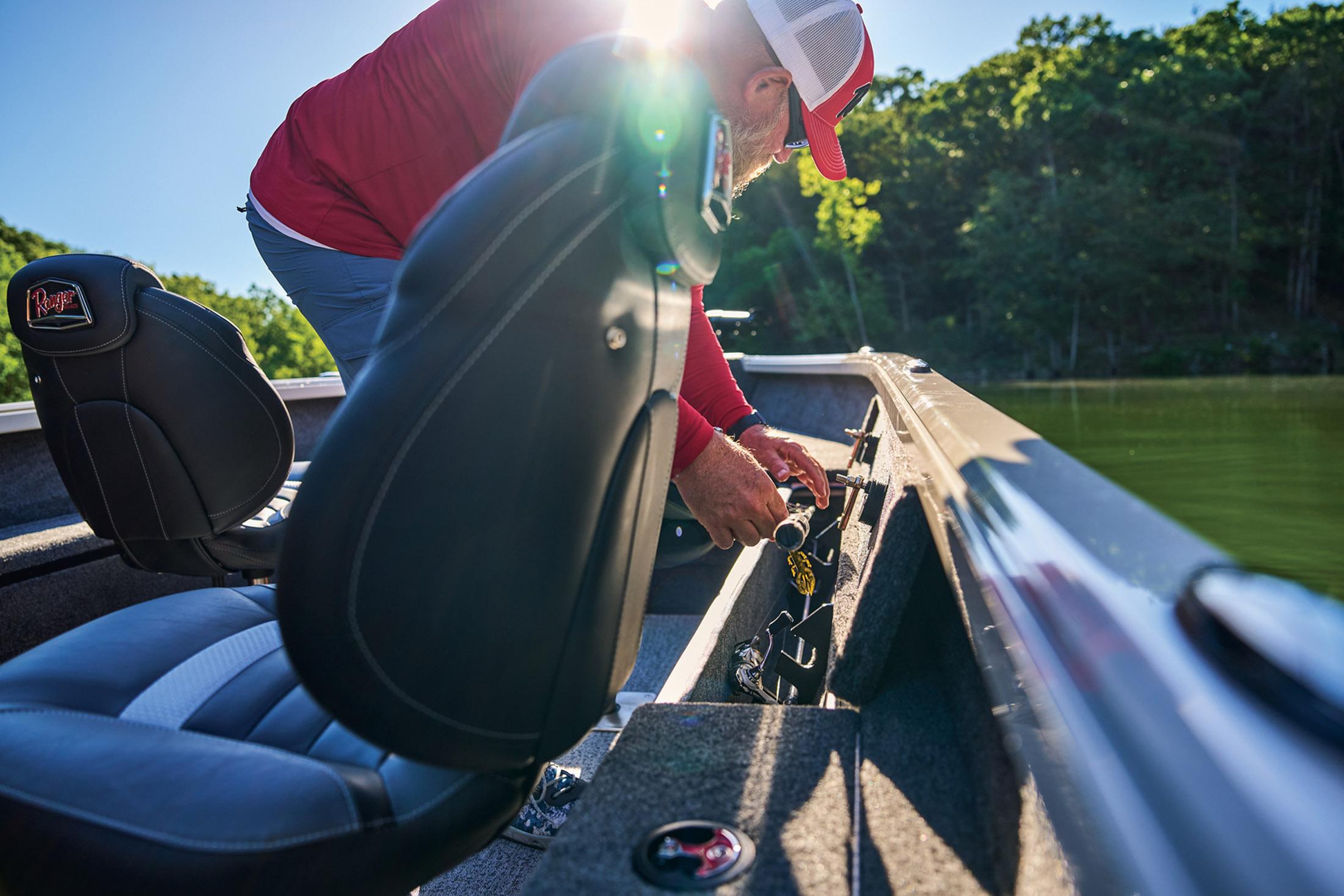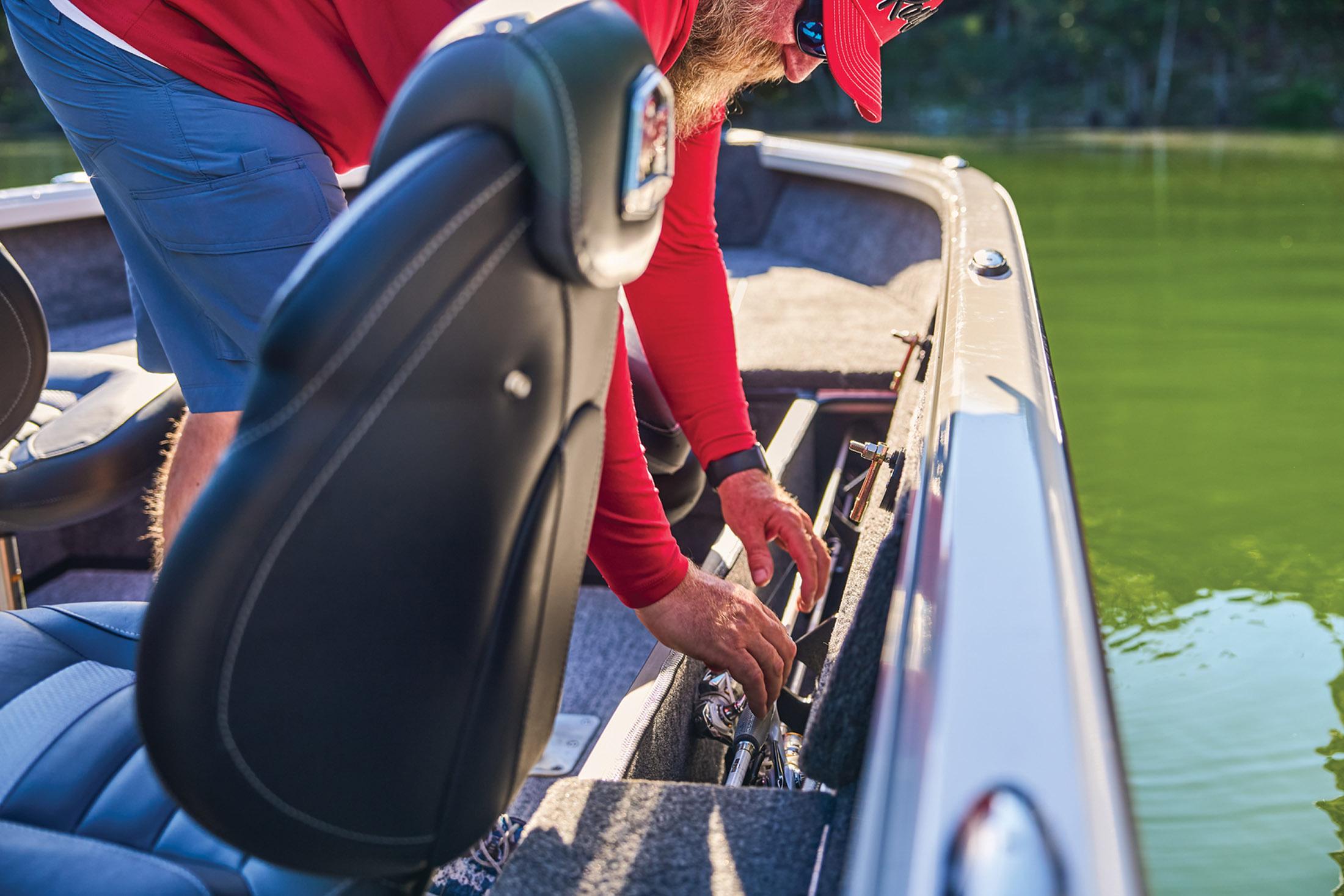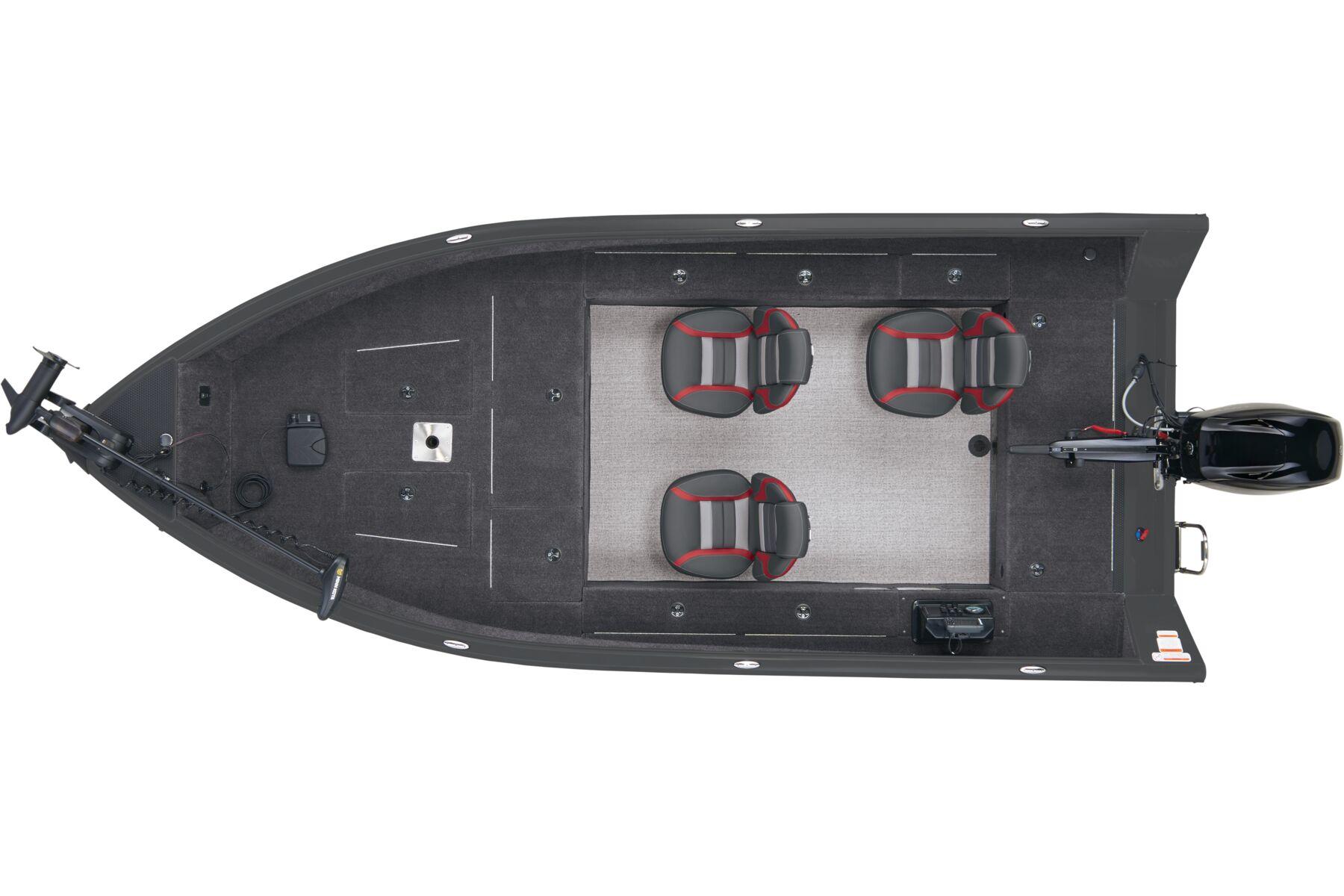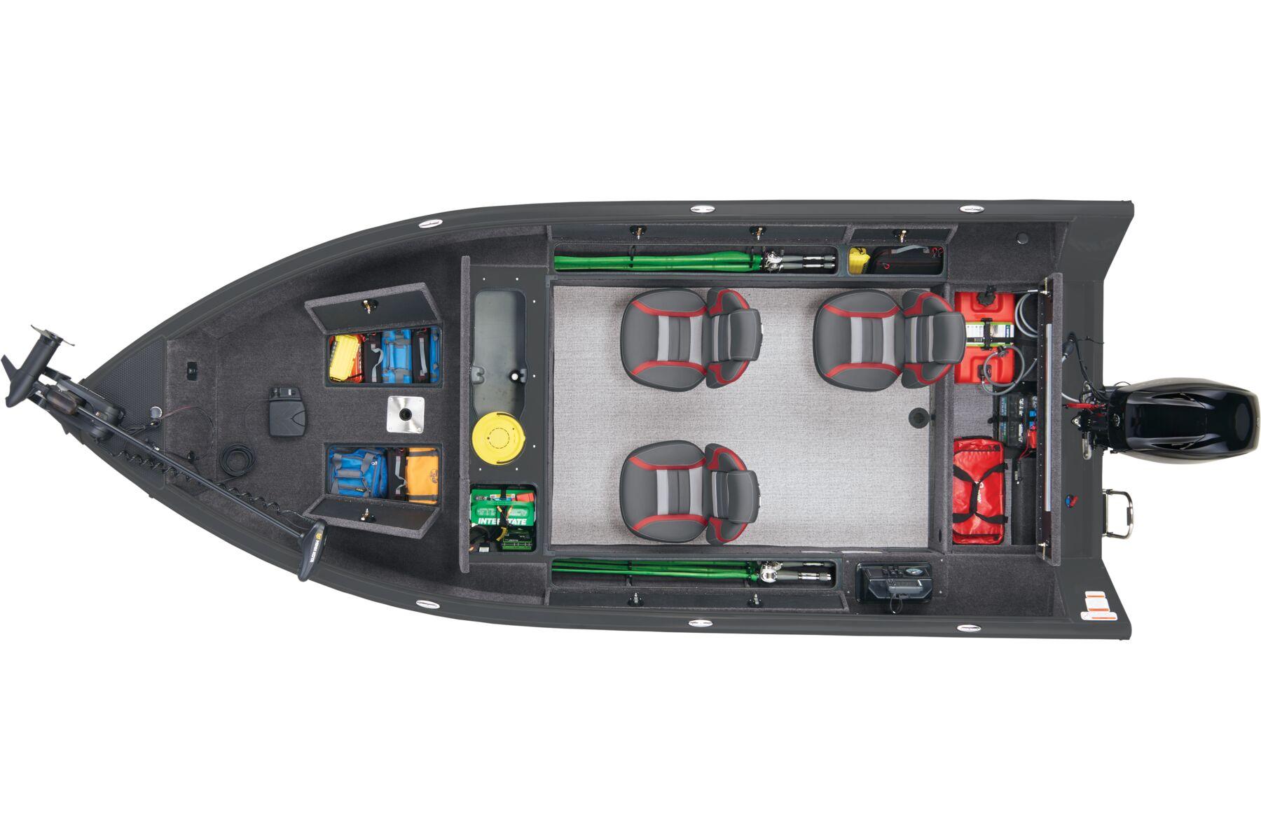 For fisheries with a multitude of species, you need maximum versatility and the new VS1665T delivers economical performance with ample amenities. Despite its 16' 3" size, the VS1665T offers an abundance of space, strength, and capability. For 2025, the 1665T gains even more strength thanks to an added dose of our proprietary pultruded fiberglass material. This specialty fiberglass boasts pound-per-pound strength greater than steel, with incredible screw retention, and zero chance of rotting. A wide-open cockpit with movable seating gives space for tending trolling lines while the front deck is ideal for casting. The timed and aerated livewell is at the rear of the deck adjacent trolling motor battery storage. Twin lockable 8' 6" rod boxes flank the cockpit, which is highlighted by a fiberglass gauge pod that houses a tach, twin USB ports and a 12V outlet, rocker switching and keyed ignition. Behind the driver's seat is a folding casting deck that hides up to two 6-gallon fuel tanks with the cranking battery. Every element of the VS1665 T combines to make One Thriller of a Tiller.