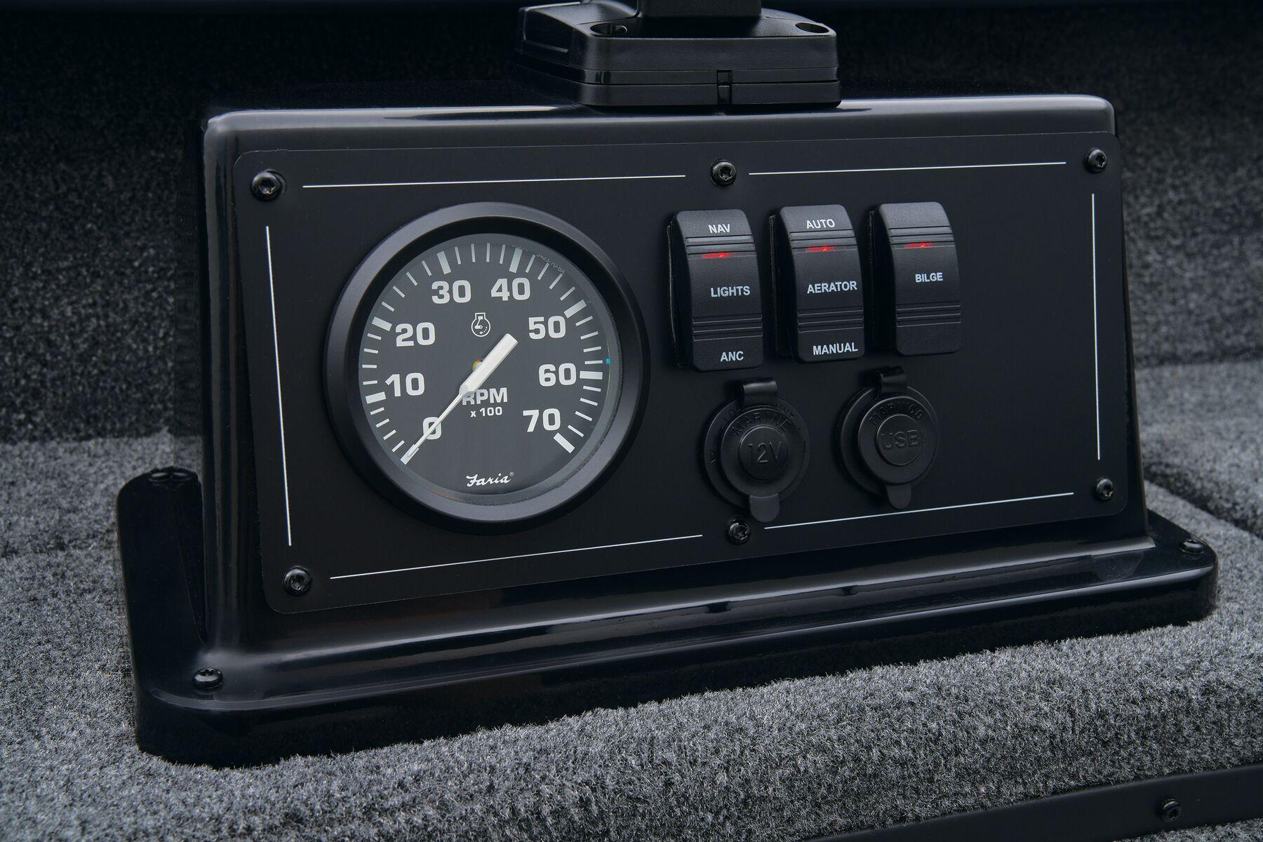 • Fiberglass gauge pod houses switching, ignition, electronics, tach