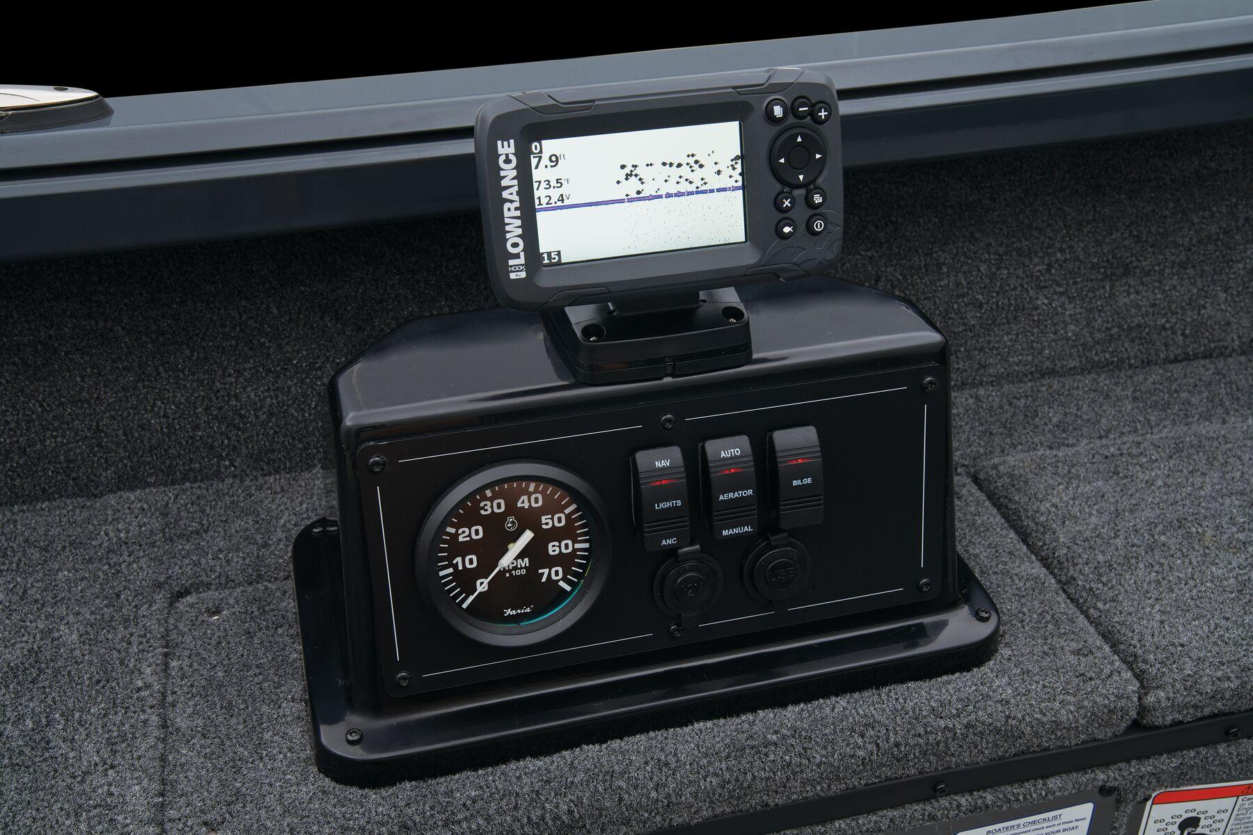 • Custom fiberglass console w/ tachometer and gimbal mounted depthfinder