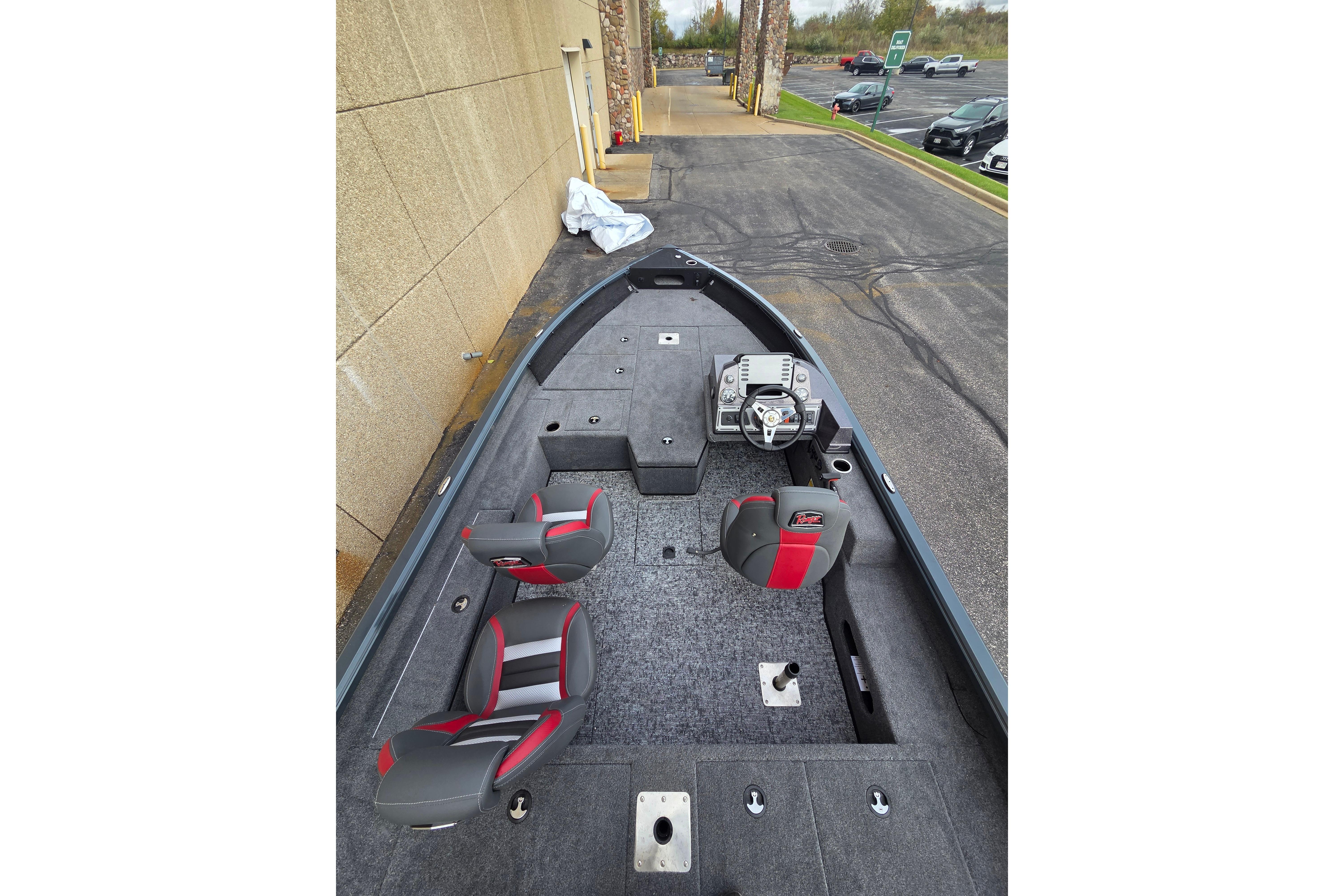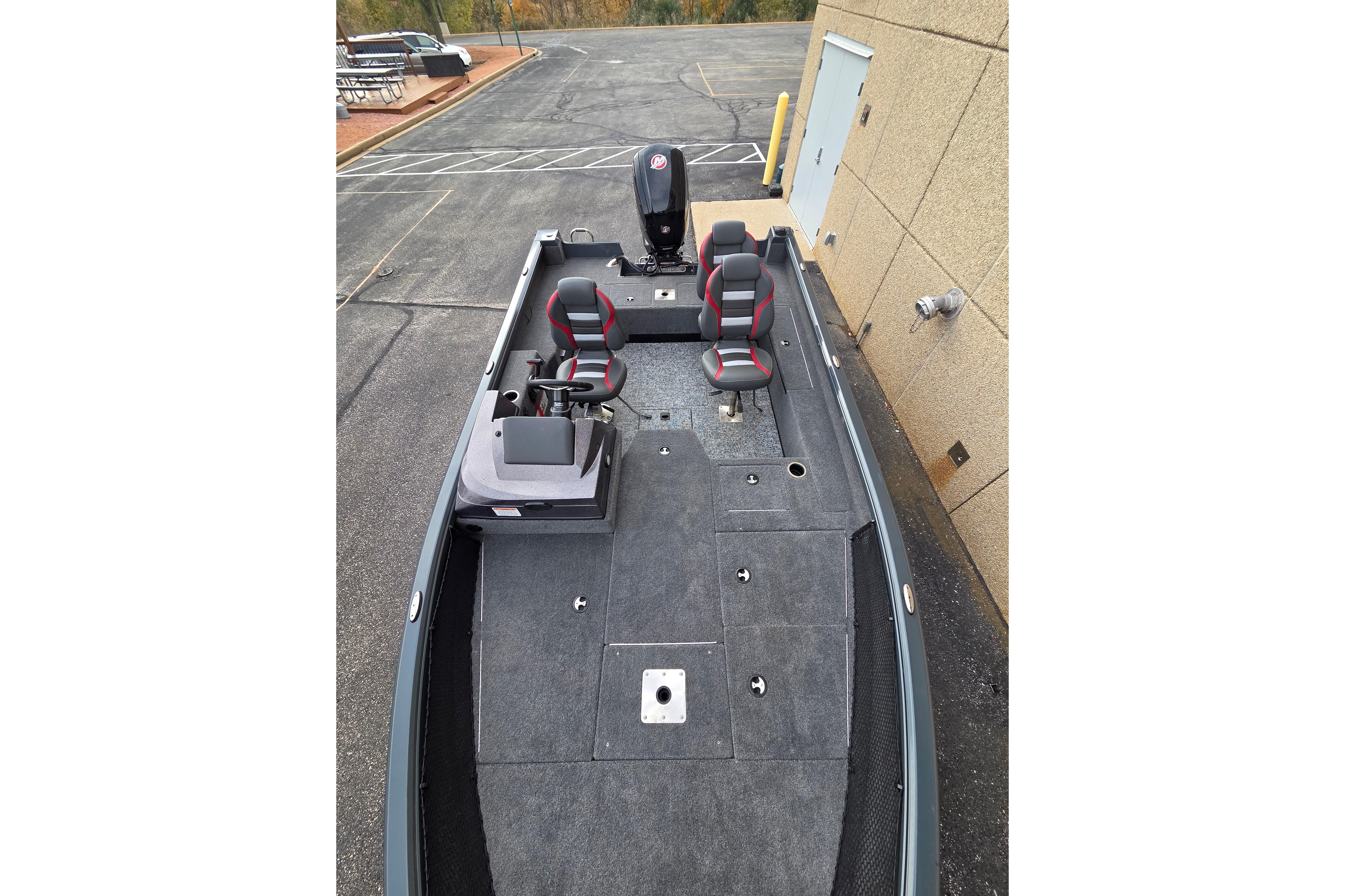 • Custom fitted marine upholstery- (3) matching fishing seats, driver seat slides