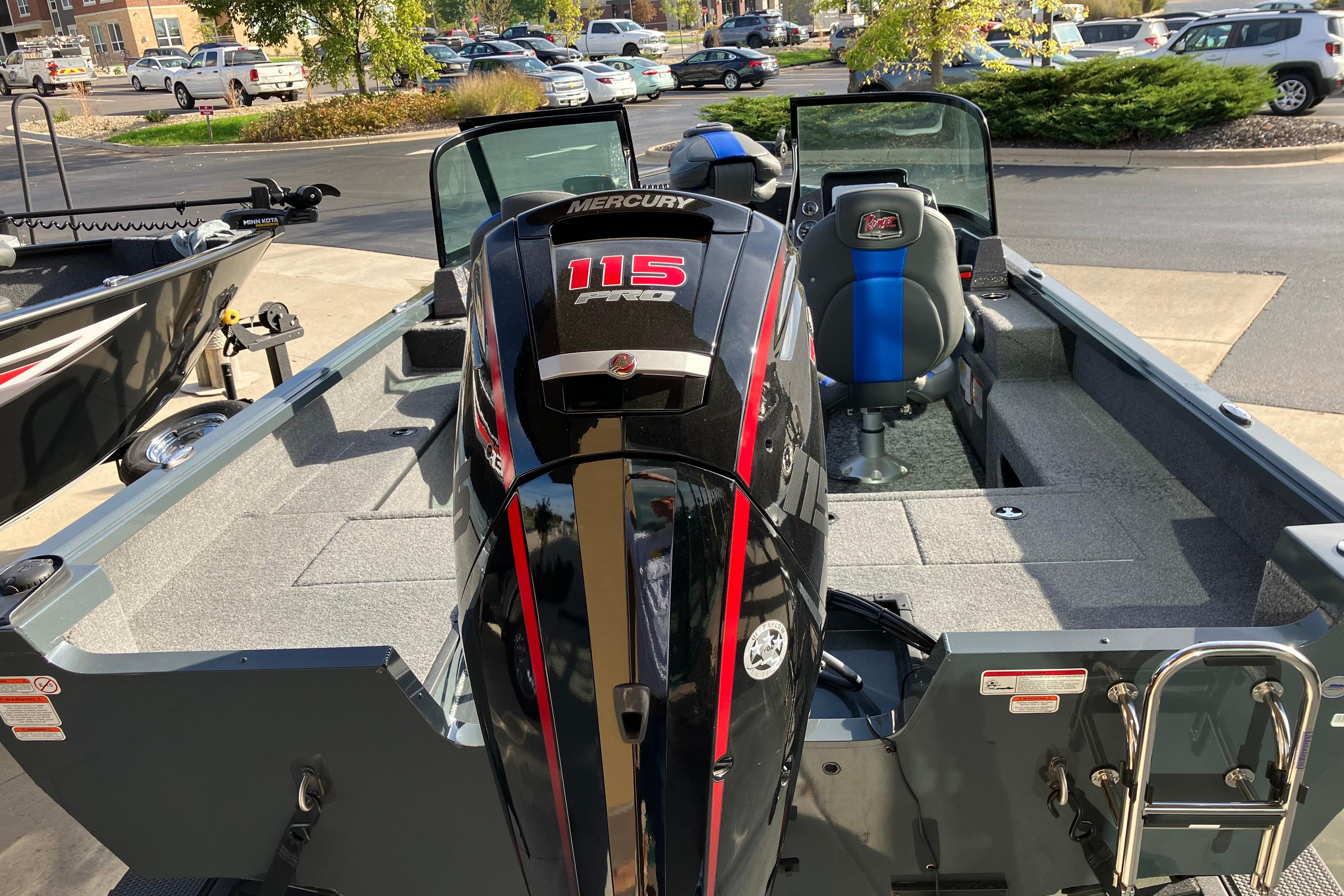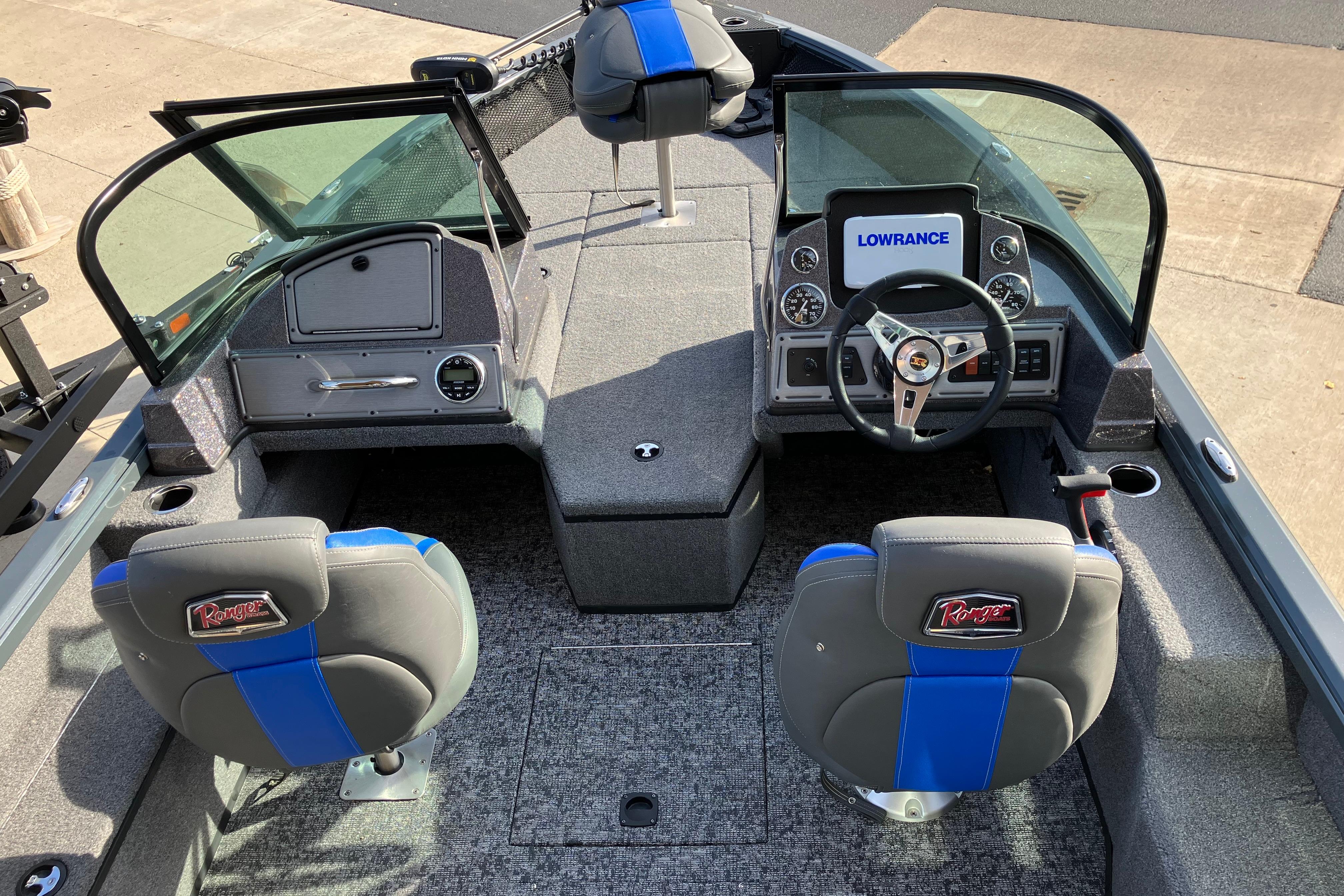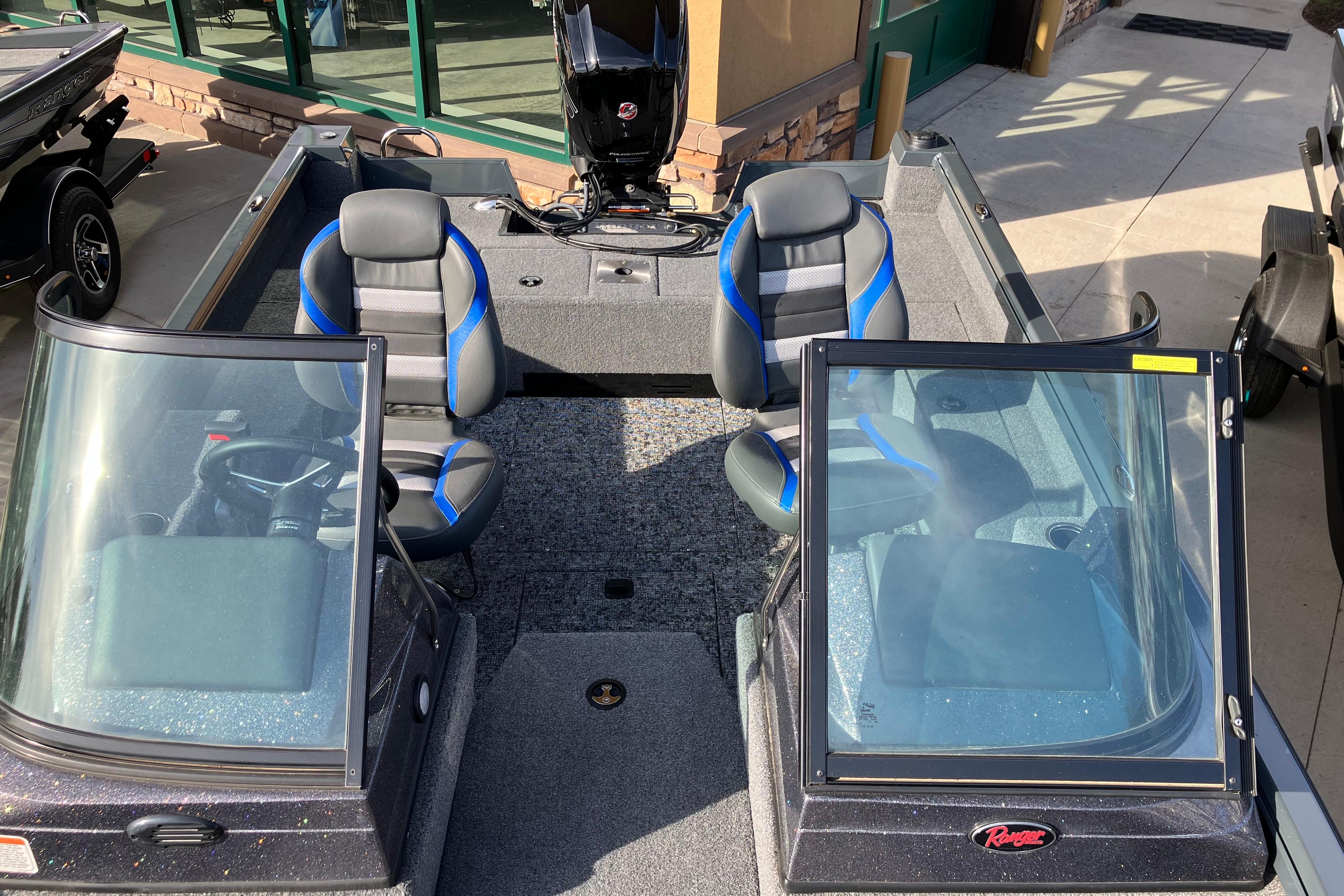 • Custom fitted marine upholstery- (3) matching fishing seats, driver seat slides