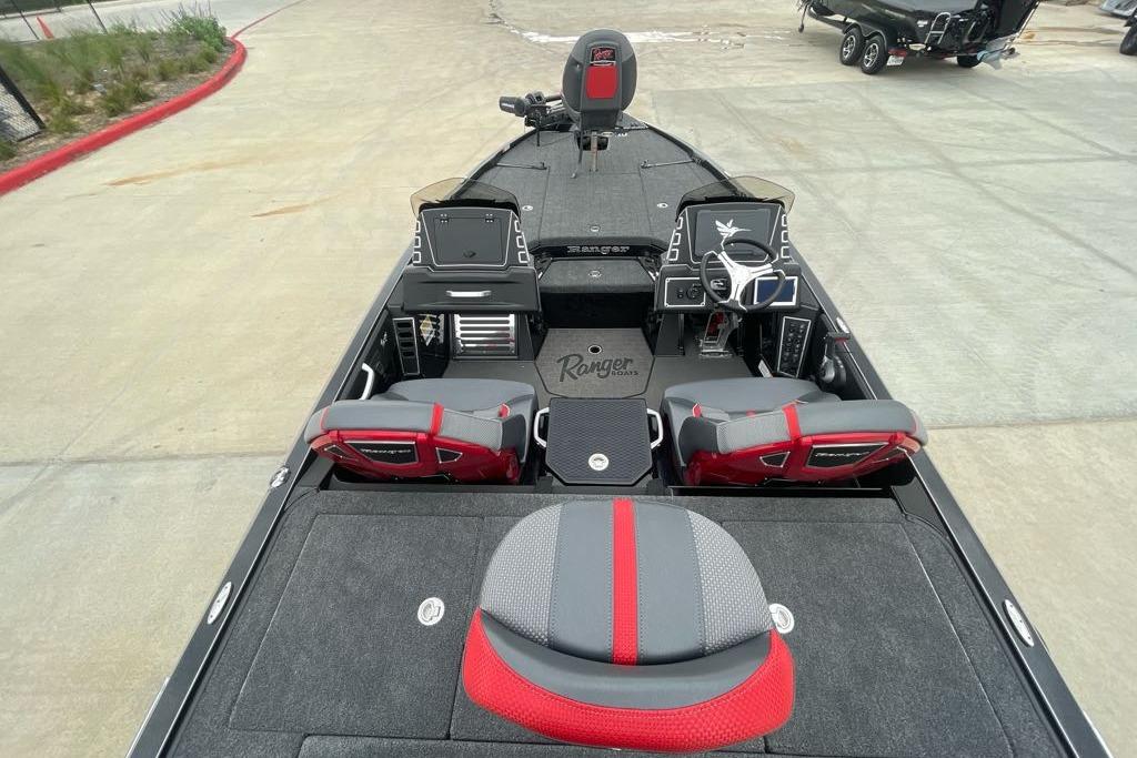All new for 2025 is the Ranger Z519R, the latest in Ranger’s premium R Series lineup. Brimming with top-tier features, the Z519R has the fishability and all-around performance you’ve come to expect from Ranger with added touches to set you off on the water and at the ramp. Our proprietary Echelon™ rod storage system keeps loads of sticks secure and handy, while reducing hassle when fetching one. A padded front deck is adorned with push-to-close latches that eliminate tripping hazards associated with twist-to-close latches, and color-matched cockpit liner and compartments liners add classy functionality. Analog switching makes for easy adjustments on the fly, and an insulated 40-quart center step cooler holds more than a day’s worth of drinks. The Ranger touchscreen multifunction System Monitor puts engine parameters at your fingertips, while smooth, responsive steering gives effortless control of 225 horses in the Mercury® FourStroke V8. A refined running surface delivers on-rails handling at speed as well as unbeatable edge-to-edge stability on the trolling motor. A vast front deck gives ample space for two, and a world of storage underfoot. The Z519R is the latest in a long line of premium bassin’ rigs that stem from our unwavering Passion for Perfection™.