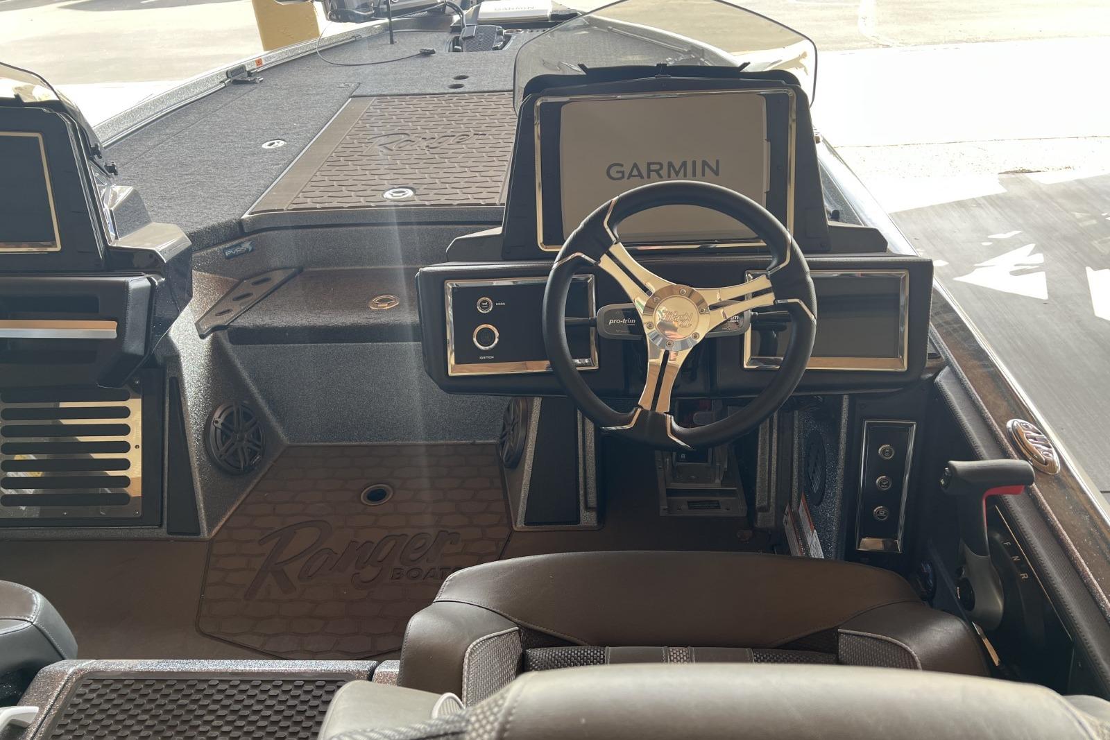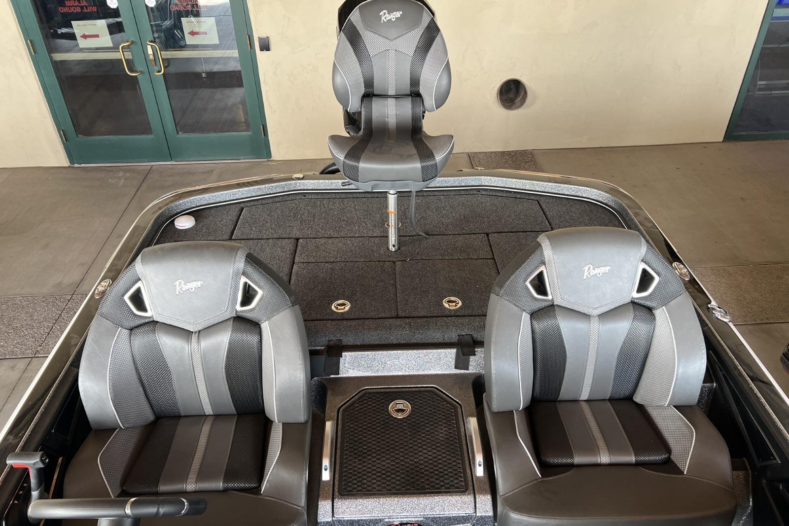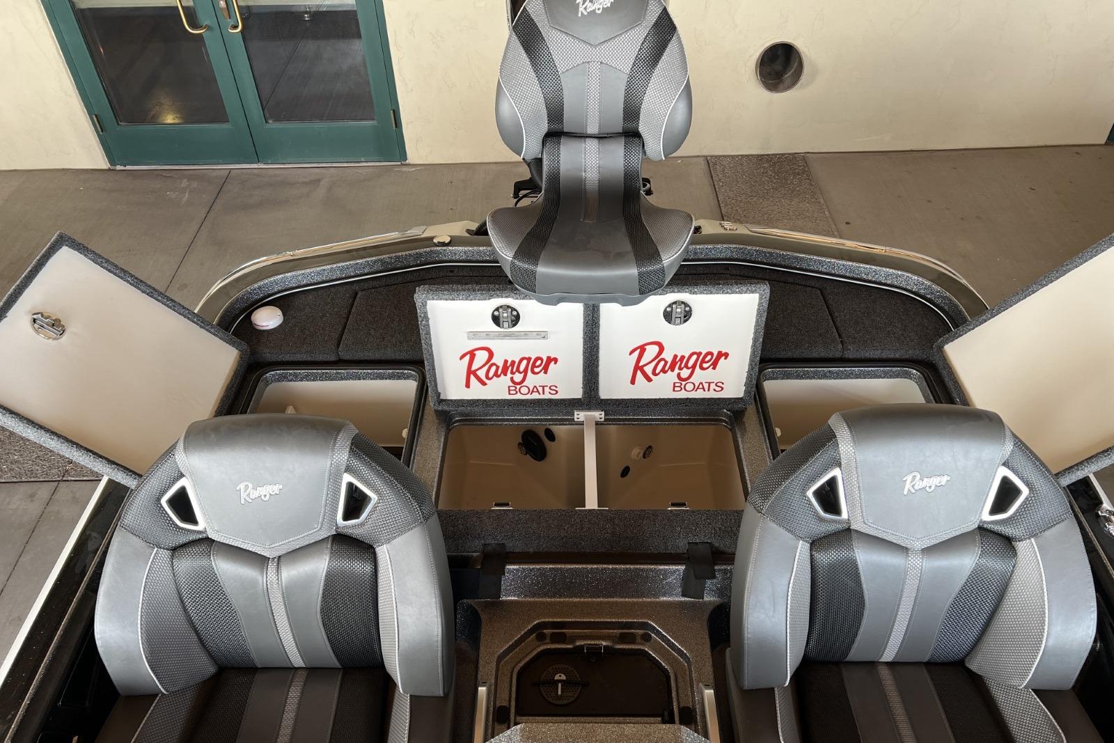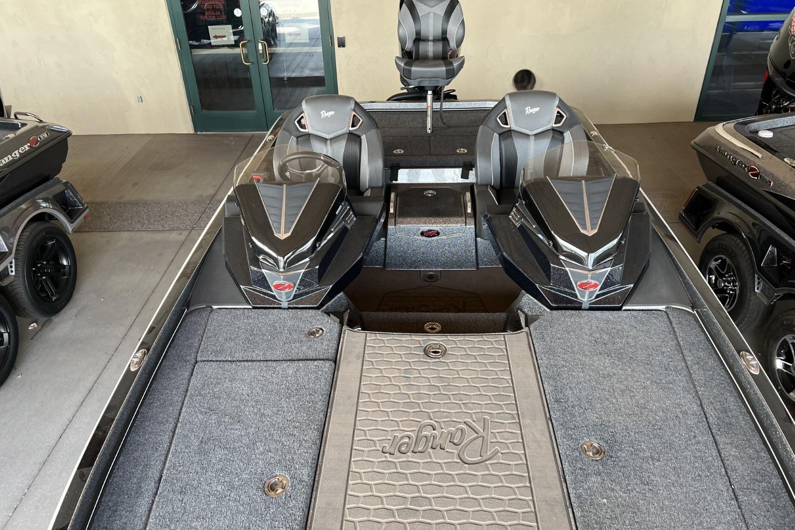 The Ranger Z520R is the next chapter in bass boat evolution and a quantum leap in design, functionality and dominating performance and the Ranger Cup Equipped package adds in top-tier features at a significant cost savings. For 2025 we’ve upped the ante even more by adding a host of top-tier touches to set apart this premium rig even more. New heated Cloud 9™ air ride SRS driver seating carries you in comfort, while a new non-skid traction pad graces the front deck for stylish functionality. Protecting your investment is a newly redesigned boat cover for even greater fit and security. Fishability gets an upgrade with a Minn Kota® Quest 115-pound thrust trolling motor and an optional dual BBT electronics mount keeps your graphs secure and easy to read in all conditions. Finally, a color-matched cockpit floor, push-to close latches, and compartment liner mats complement the peerless style of the Z520R Ranger Cup Equipped. We took the legendary Z Comanche “C” hull and digitally scanned and perfected it, resulting in an instant hole shot and stronger top-end. Every appreciable element of the cockpit, decks, and storage boxes has been revamped to complement the enhanced performance of the R Series. We’ve also gone to great lengths to incorporate more standard technology into the R Series, to not only raise the bar for the industry, but to give you greater comfort, convenience, and peace of mind. An all-new console carries dual graphs or a single 16” unit and the touchscreen Ranger R.I.D.E. system integrates total control over every boat and engine function. The all-new seats rest on easy-to-adjust slides and the color-matched fiberglass shellbacks take the aesthetic to a new level. A key fob and integrated push-to-start ignition let you start-up quicker and deliver greater security when you’re on the road. Inside the coin box is a wireless phone charger, and in the battery box are standard lithium batteries. Storage boxes are demonstrably larger, thanks to a redesigned stringer system that builds on our One-Piece Feel Interloc™ Construction. The rod boxes feature our Echelon Rod Storage System with a tri-level storage shelf system that simplifies rod management and offers more room for sticks up to 9’. Inside and out, the Z520R ushers in the next generation of domination. The Z520R. It’s a whole new era of Ranger.