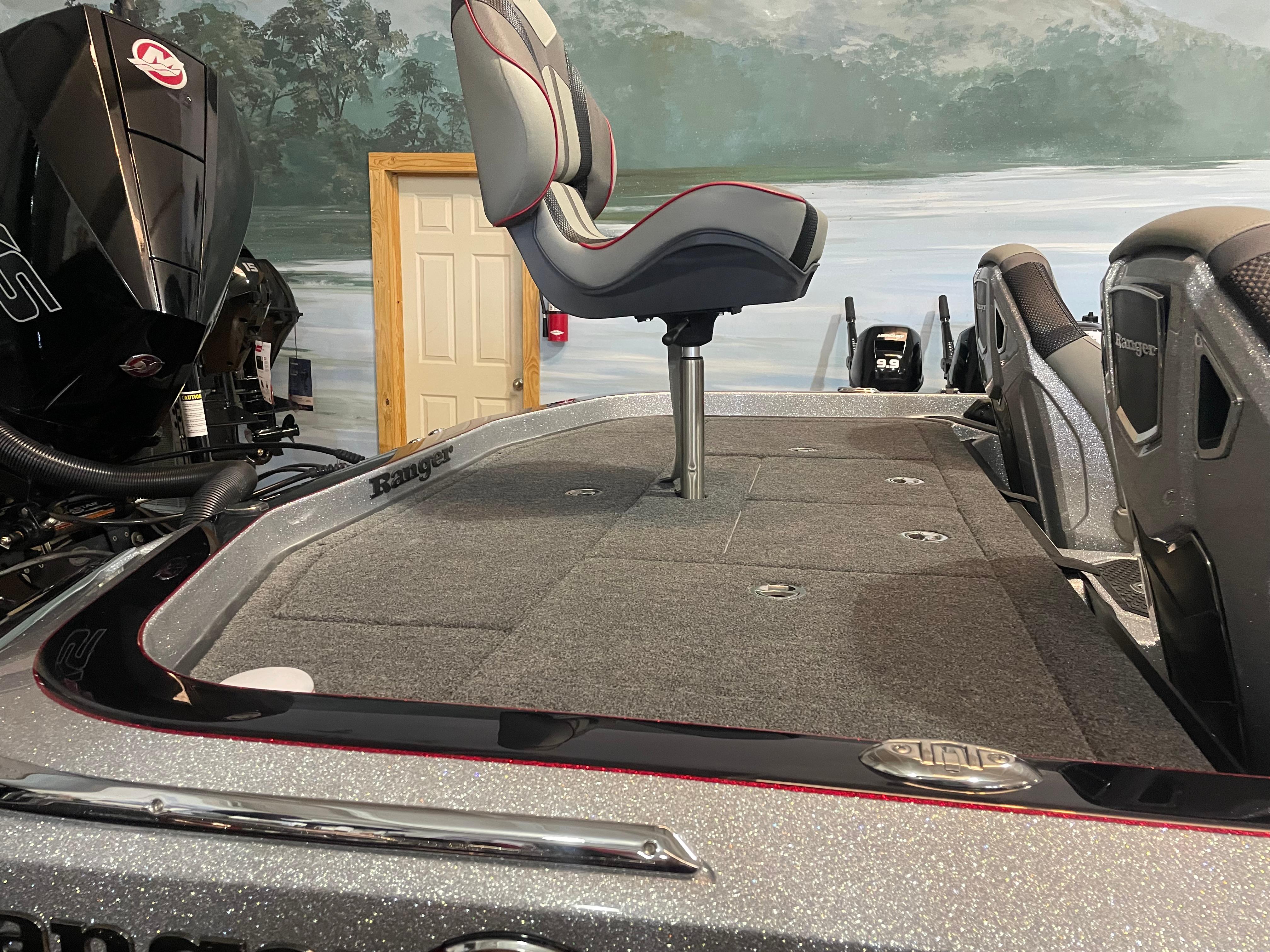 The Ranger Cup-Equipped package adds pro-selected options that let you hit the most daunting tournament trails with even more competitive advantage. Standard with factory-installed 12" graphs from Lowrance® or GARMIN®, the latest in forward-facing sonar technology, and a host of our most popular equipment from the Z521R options list, the Z521R Cup-Equipped package packs-on incredible value to the most hardcore tournament-ready machine on the water. For 2025 we’ve upped the ante even more by adding a host of top-tier touches to set apart this premium rig even more. New heated Cloud 9™ air ride SRS driver seating carries you in comfort, while a new non-skid traction pad graces the front deck for stylish functionality. Protecting your investment is a newly redesigned boat cover for even greater fit and security. Fishability gets an upgrade with a Minn Kota® Quest 115-pound thrust trolling motor and an optional dual BBT electronics mount keeps your graphs secure and easy to read in all conditions. Finally, a color-matched cockpit floor, push-to close latches, and compartment liner mats complement the peerless style of the Z521R Ranger Cup-Equipped. From bow to stern, hull to top cap, the Z521R has been tweaked, massaged, enhanced, and perfected across every inch with a passion for perfection. No element of the boat’s design, performance, quality, safety, or fishability was untouched as we crafted this next-generation legend. The culmination of this work has yielded an all-new boat with revamped and elevated all-around performance that melds with aggressive modern styling that sets this rig apart as the apex of bass boats. Real-world improvements include a perfected hull that delivers rapid lift onto plane and a stronger top end. We’ve also elevated the technology that comes standard on the Z521R. The Ranger R.I.D.E. system lets you monitor and control every critical function while a key fob permits quicker start up and enhanced security when you’re not nearby. The Z521R also features an industry-first push-to-start system that gets you to the next spot fast. Deep within the Z521R is a reimagined core and stringer system that not only bolsters our One-Piece Feel Interloc™ construction but permits larger storage boxes for even more space. The rod boxes feature an all-new Echelon tiered shelf system for unmatched customization, flexibility, and capacity and the ability to hole sticks up to 9’. Every box features an automatic light sensor that cuts on LEDs when a lid is lifted. A larger day box and massive 40qt. cooler feature the same construction as today’s premium coolers for all-day-long ice. The Z521R carries more advancements in performance, technology, fishability, and style that not only set it apart from the crowd, but leads it.