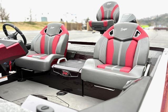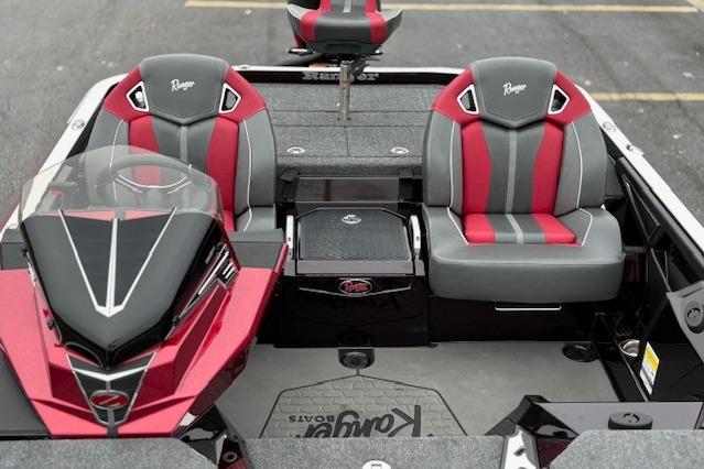 The Ranger Cup-Equipped package adds pro-selected options that let you hit the most daunting tournament trails with even more competitive advantage. Standard with factory-installed 12" graphs from Lowrance® or GARMIN®, the latest in forward-facing sonar technology, and a host of our most popular equipment from the Z521R options list, the Z521R Cup-Equipped package packs-on incredible value to the most hardcore tournament-ready machine on the water. For 2025 we’ve upped the ante even more by adding a host of top-tier touches to set apart this premium rig even more. New heated Cloud 9™ air ride SRS driver seating carries you in comfort, while a new non-skid traction pad graces the front deck for stylish functionality. Protecting your investment is a newly redesigned boat cover for even greater fit and security. Fishability gets an upgrade with a Minn Kota® Quest 115-pound thrust trolling motor and an optional dual BBT electronics mount keeps your graphs secure and easy to read in all conditions. Finally, a color-matched cockpit floor, push-to close latches, and compartment liner mats complement the peerless style of the Z521R Ranger Cup-Equipped. From bow to stern, hull to top cap, the Z521R has been tweaked, massaged, enhanced, and perfected across every inch with a passion for perfection. No element of the boat’s design, performance, quality, safety, or fishability was untouched as we crafted this next-generation legend. The culmination of this work has yielded an all-new boat with revamped and elevated all-around performance that melds with aggressive modern styling that sets this rig apart as the apex of bass boats. Real-world improvements include a perfected hull that delivers rapid lift onto plane and a stronger top end. We’ve also elevated the technology that comes standard on the Z521R. The Ranger R.I.D.E. system lets you monitor and control every critical function while a key fob permits quicker start up and enhanced security when you’re not nearby. The Z521R also features an industry-first push-to-start system that gets you to the next spot fast. Deep within the Z521R is a reimagined core and stringer system that not only bolsters our One-Piece Feel Interloc™ construction but permits larger storage boxes for even more space. The rod boxes feature an all-new Echelon tiered shelf system for unmatched customization, flexibility, and capacity and the ability to hole sticks up to 9’. Every box features an automatic light sensor that cuts on LEDs when a lid is lifted. A larger day box and massive 40qt. cooler feature the same construction as today’s premium coolers for all-day-long ice. The Z521R carries more advancements in performance, technology, fishability, and style that not only set it apart from the crowd, but leads it.