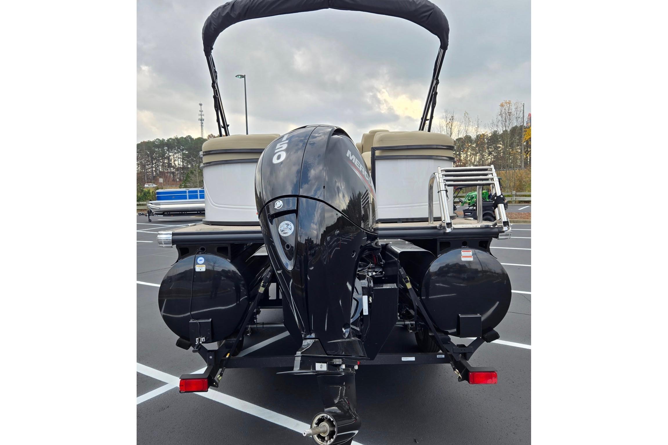 Enjoy the bow-to-stern soft-touch woven flooring that remains cool and slip-resistant throughout the summer. And when it’s time to ramp up the fun, unleash up to 250 horsepower with a jab of the throttle. The FourStroke Mercury® engine harmonizes flawlessly with the tritoon's impeccable handling, courtesy of the trio of 26-foot powder-coated logs equipped with LED accent lighting for a striking appearance after dark.