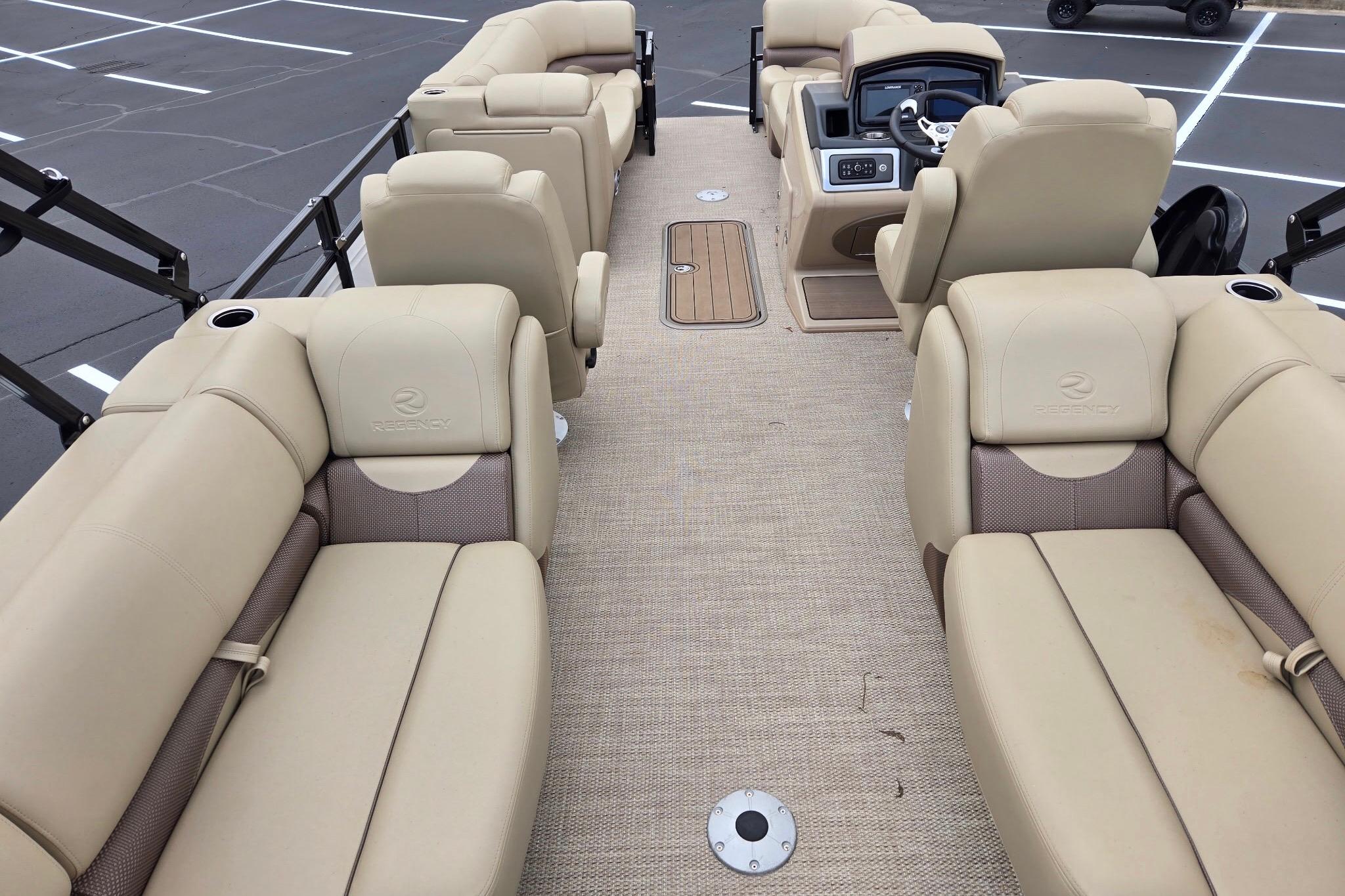 Inside, the 230 DL3 boasts a lavishly appointed interior, perfect for leisurely cruises or relaxing days on the water. Sink into the plush, handcrafted seating that cleverly conceals ample storage space, providing a seamless blend of elegance and functionality. The forward and aft lounges invite socializing and soaking in the surroundings, while the swiveling helm and passenger seats pamper you with self-leveling armrests, superior support, and commanding views of the water.