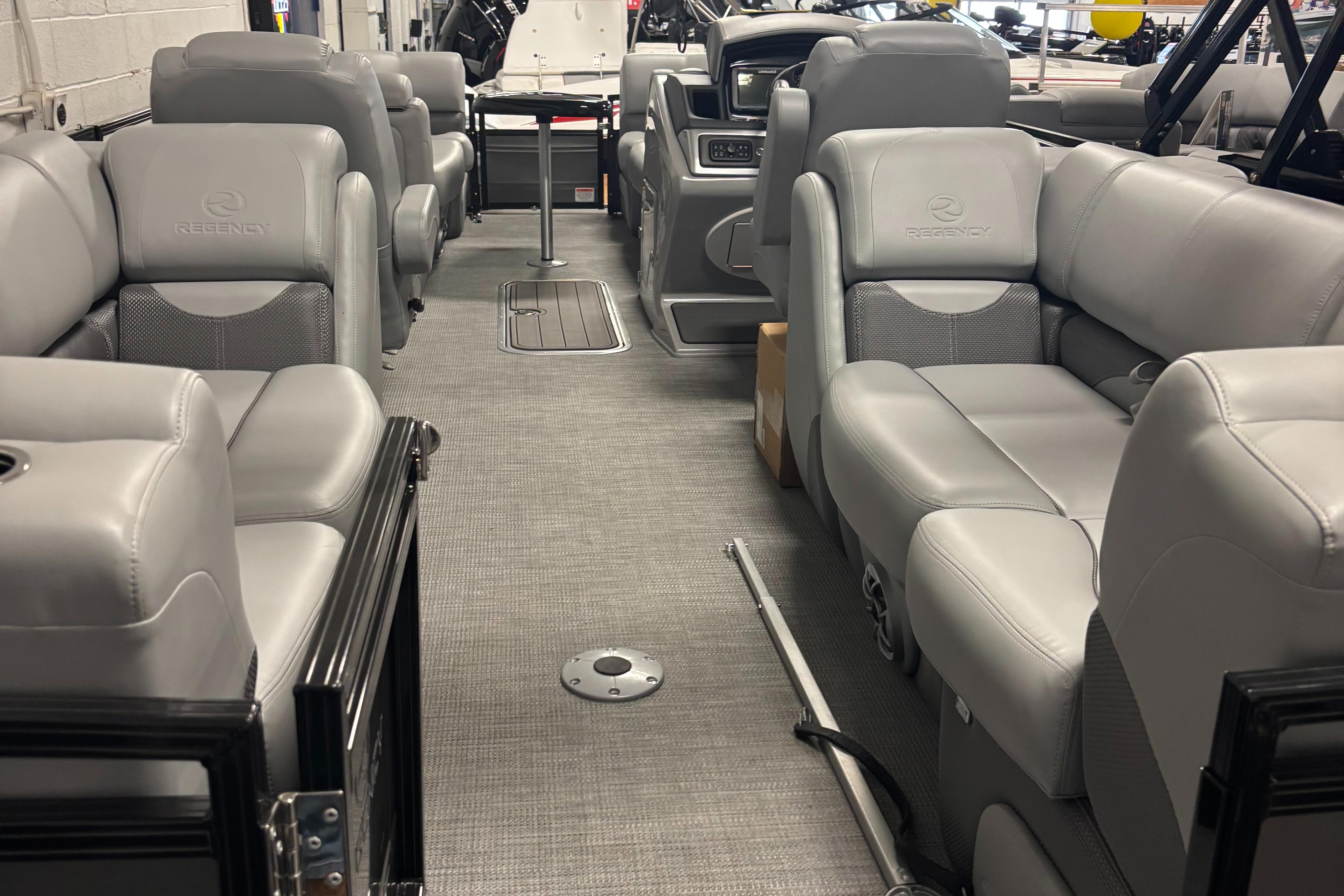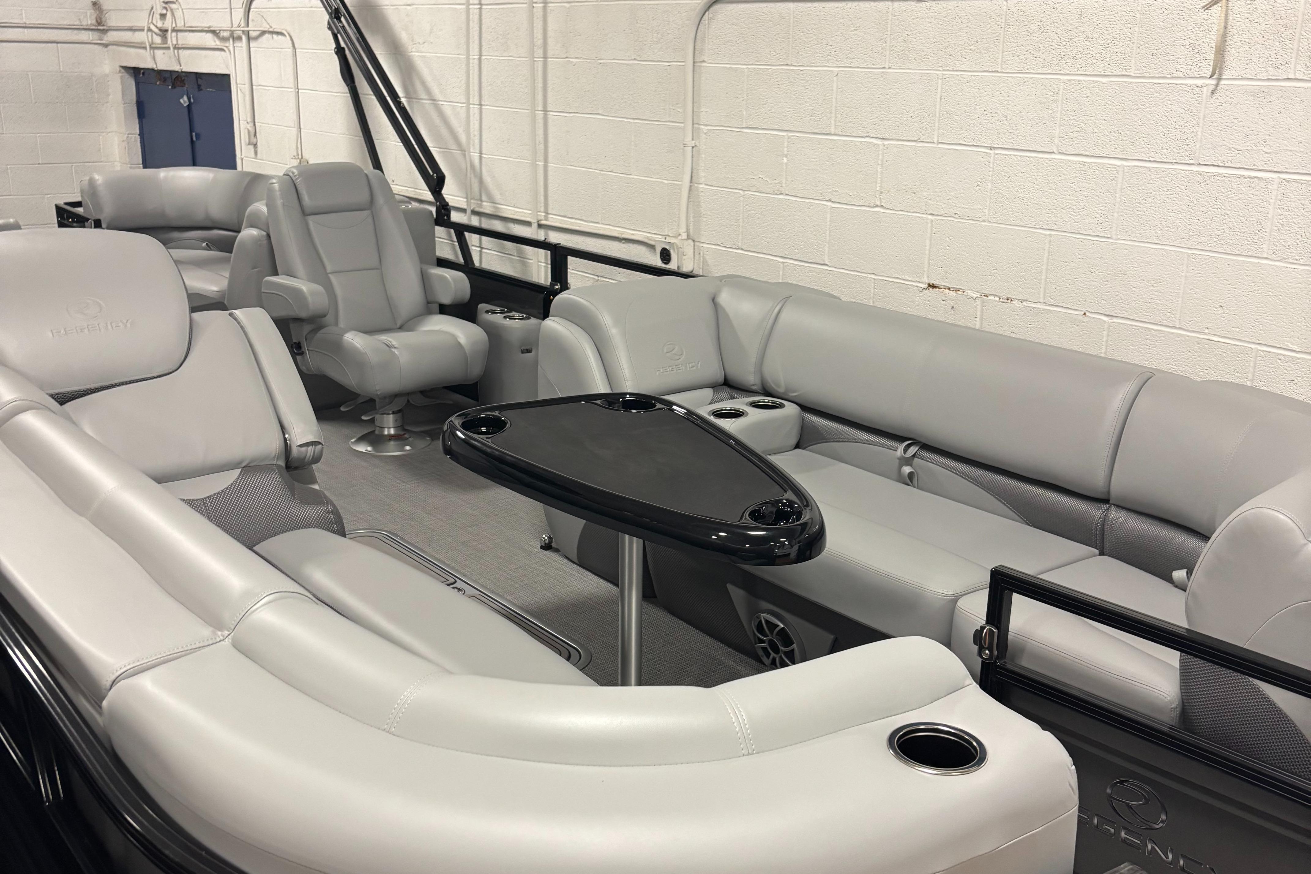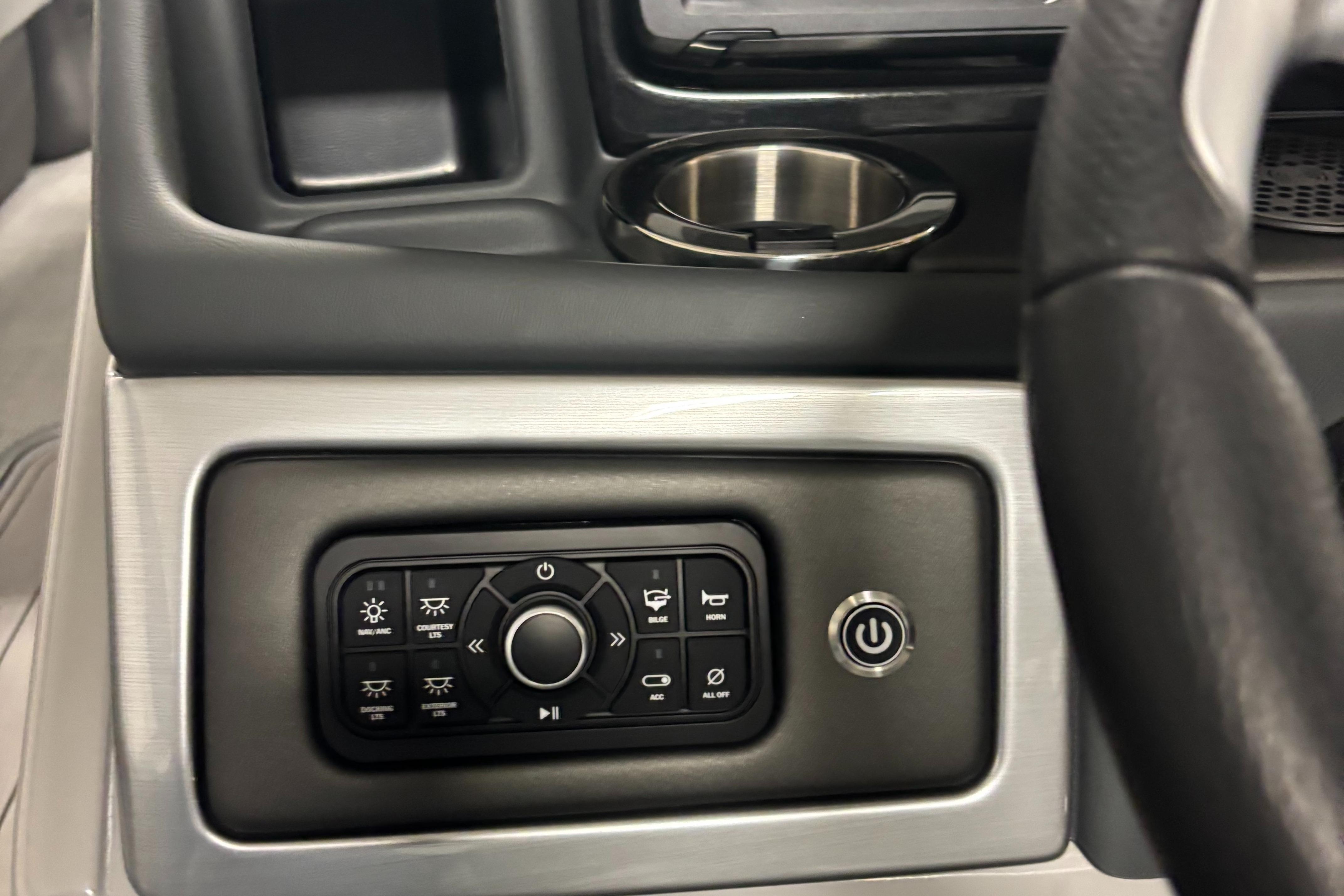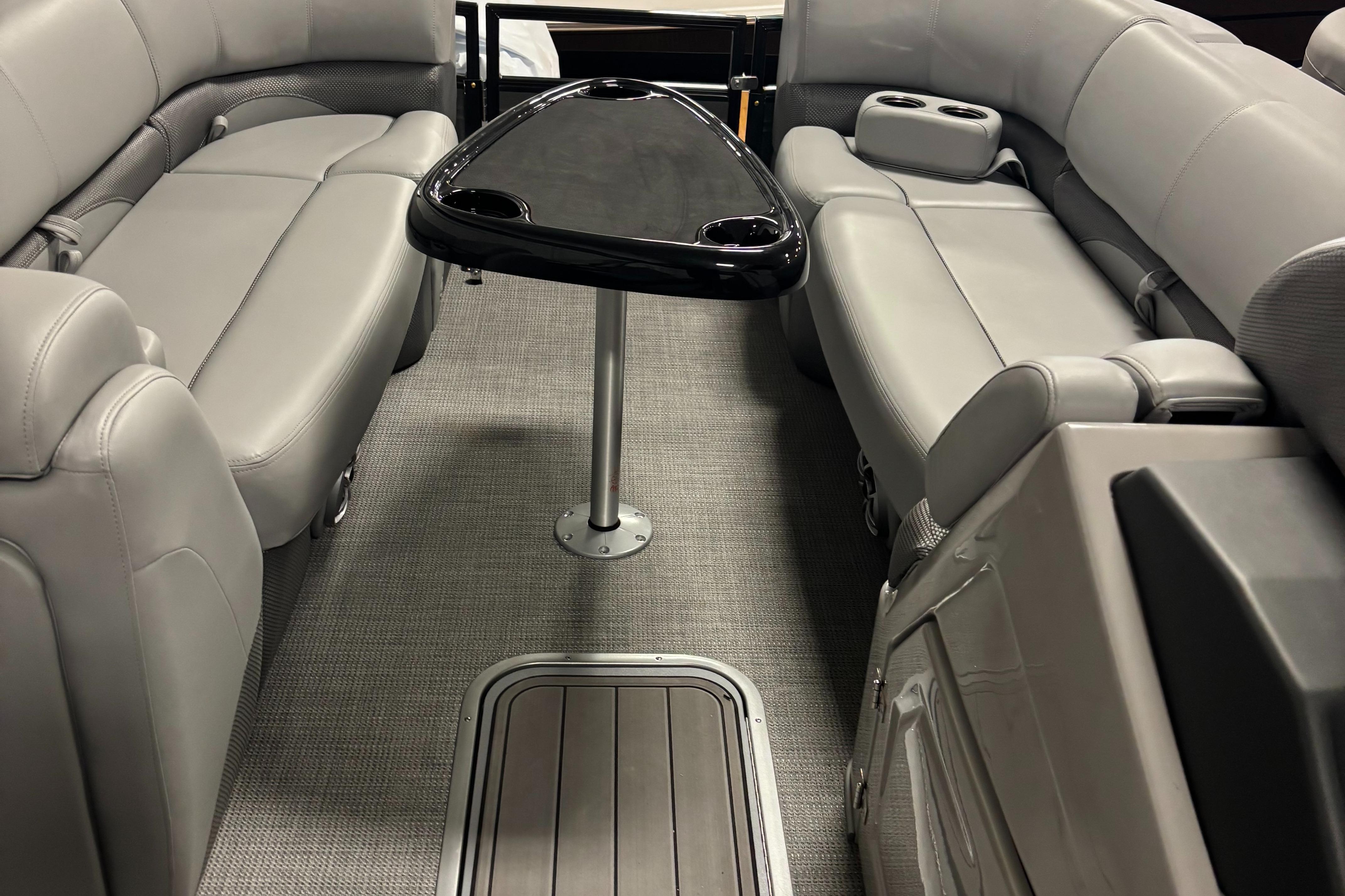 Enjoy the bow-to-stern soft-touch woven flooring that remains cool and slip-resistant throughout the summer. And when it’s time to ramp up the fun, unleash up to 250 horsepower with a jab of the throttle. The FourStroke Mercury® engine harmonizes flawlessly with the tritoon's impeccable handling, courtesy of the trio of 26-foot powder-coated logs equipped with LED accent lighting for a striking appearance after dark.