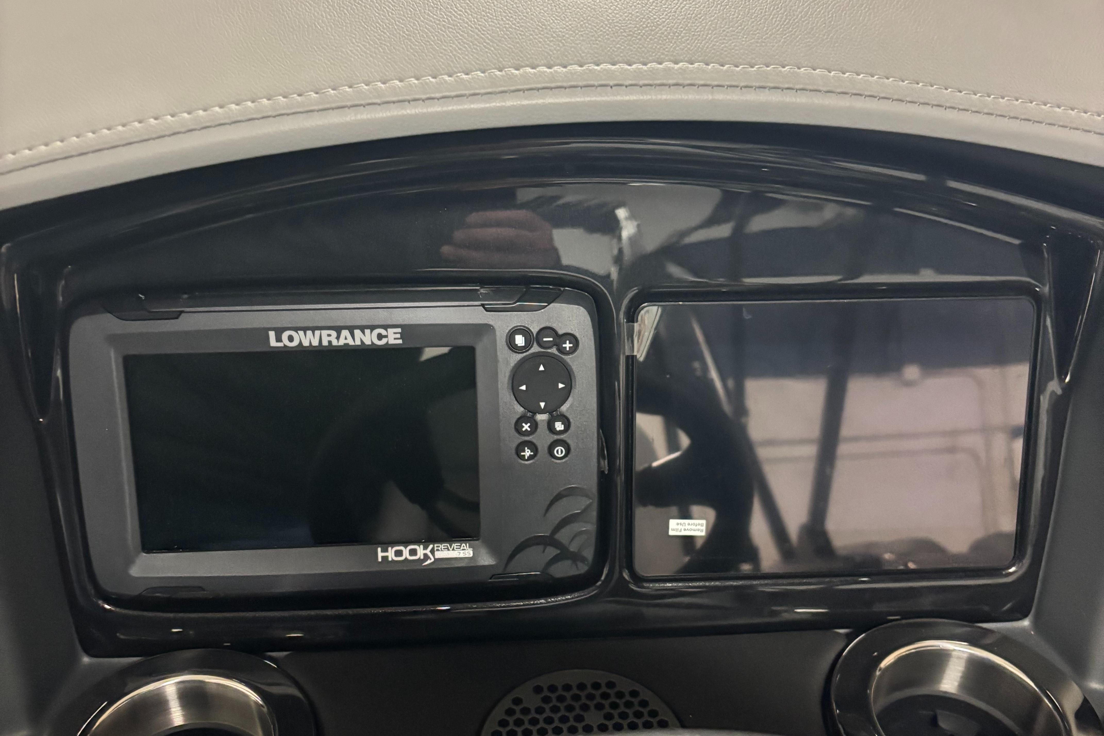 • Lowrance® HOOK Reveal 7" (17.78 cm) GPS depthfinder mounted in dash, rigged w/Lowrance® SplitShot™ transducer