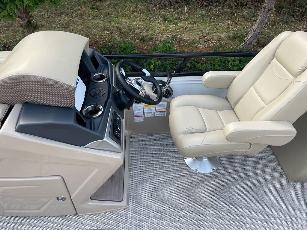 • Plush, adjustable-height, reclining & swiveling captain & co-captain chairs w/lift-assists, self-leveling arms & mesh back storage pouches