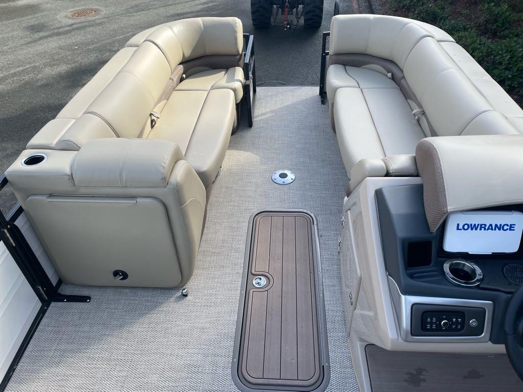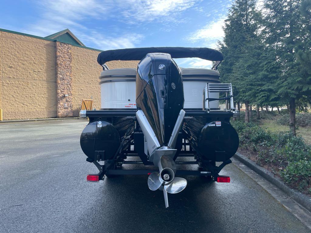 Enjoy the bow-to-stern soft-touch woven flooring that remains cool and slip-resistant throughout the summer. And when it’s time to ramp up the fun, unleash up to 250 horsepower with a jab of the throttle. The FourStroke Mercury® engine harmonizes flawlessly with the tritoon's impeccable handling, courtesy of the trio of 26-foot powder-coated logs equipped with LED accent lighting for a striking appearance after dark.