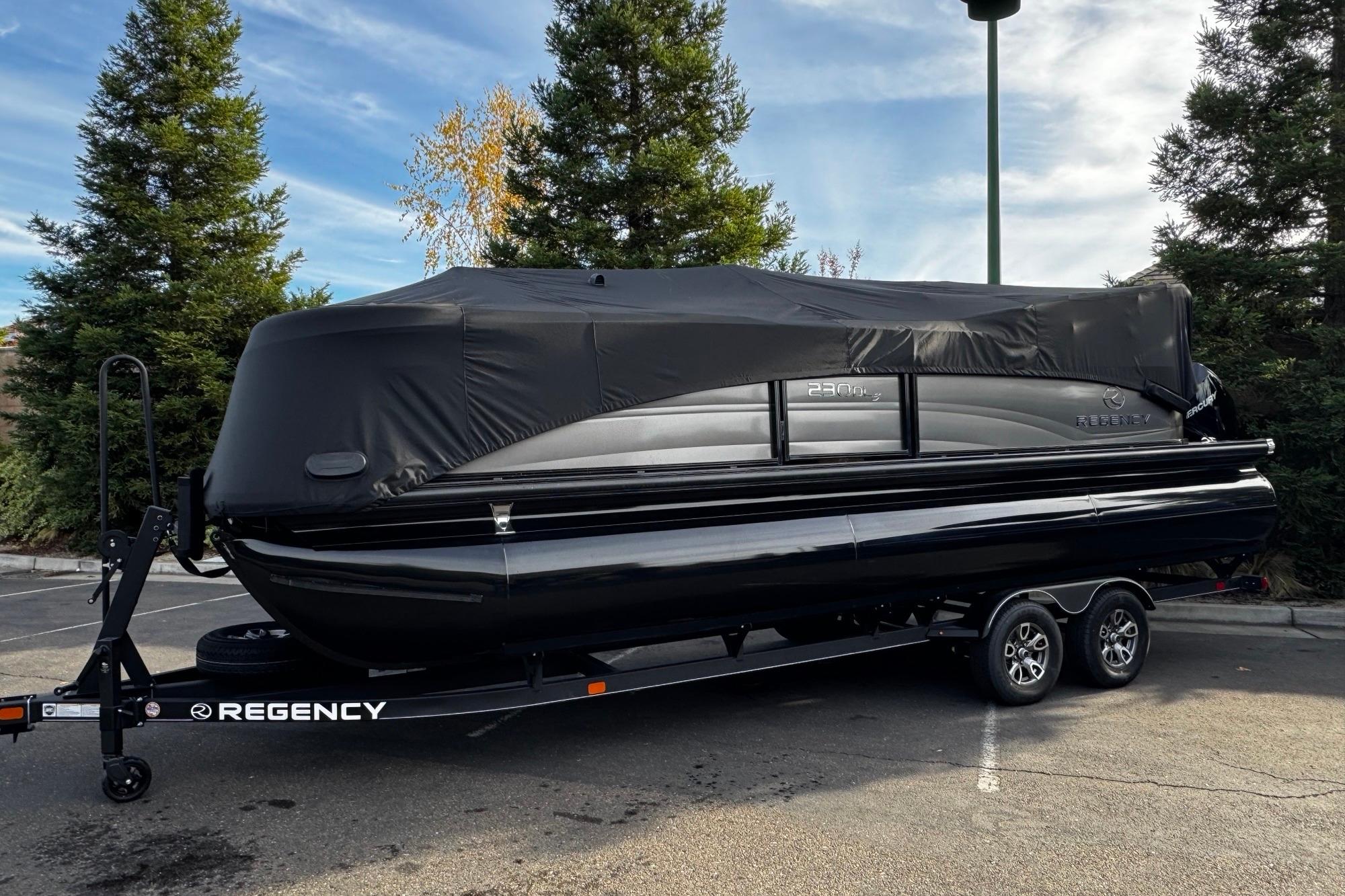 • 10' (3.05 m) REGENCY® QuickLift™ Bimini top w/LED courtesy lights, storage pockets & protective boot