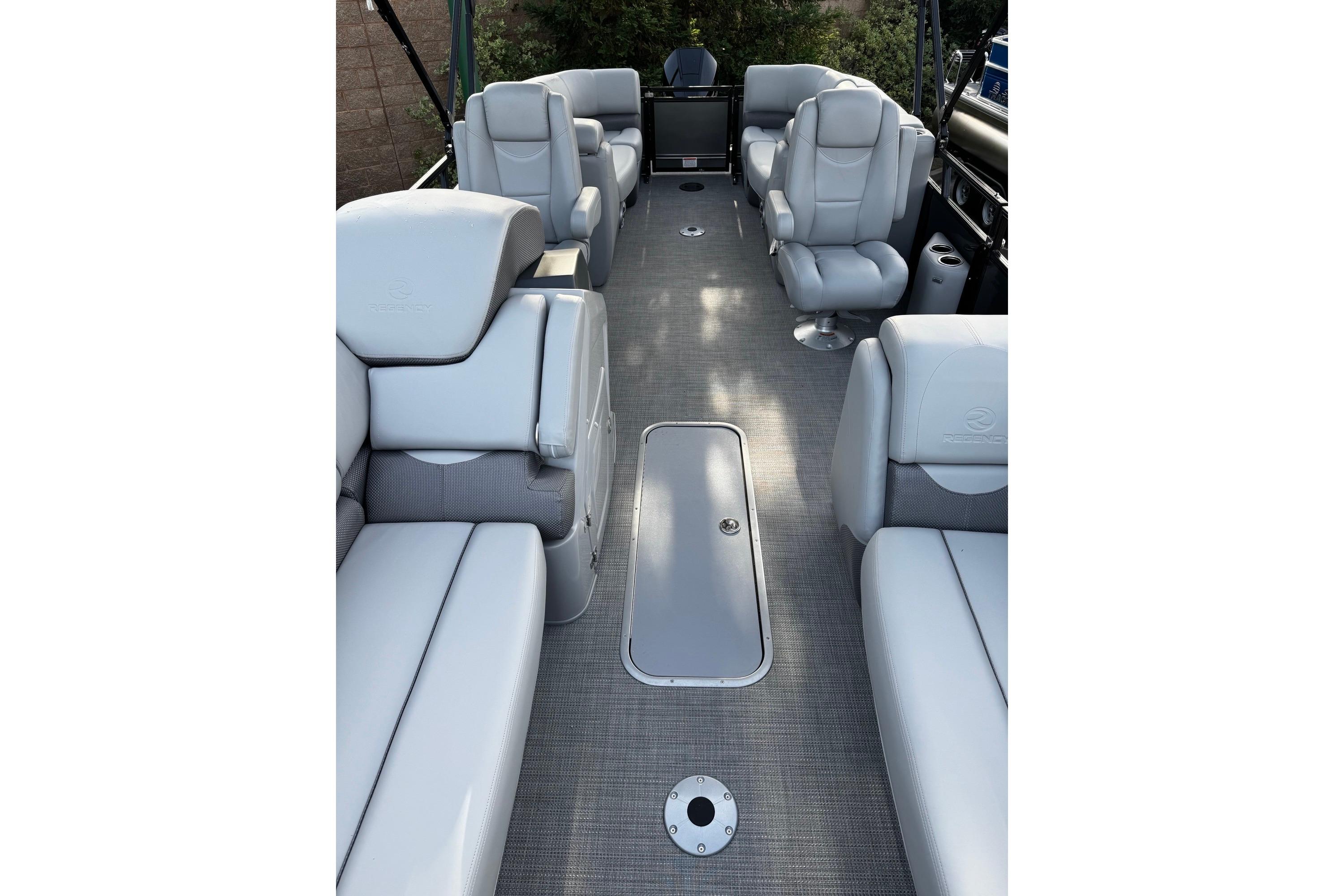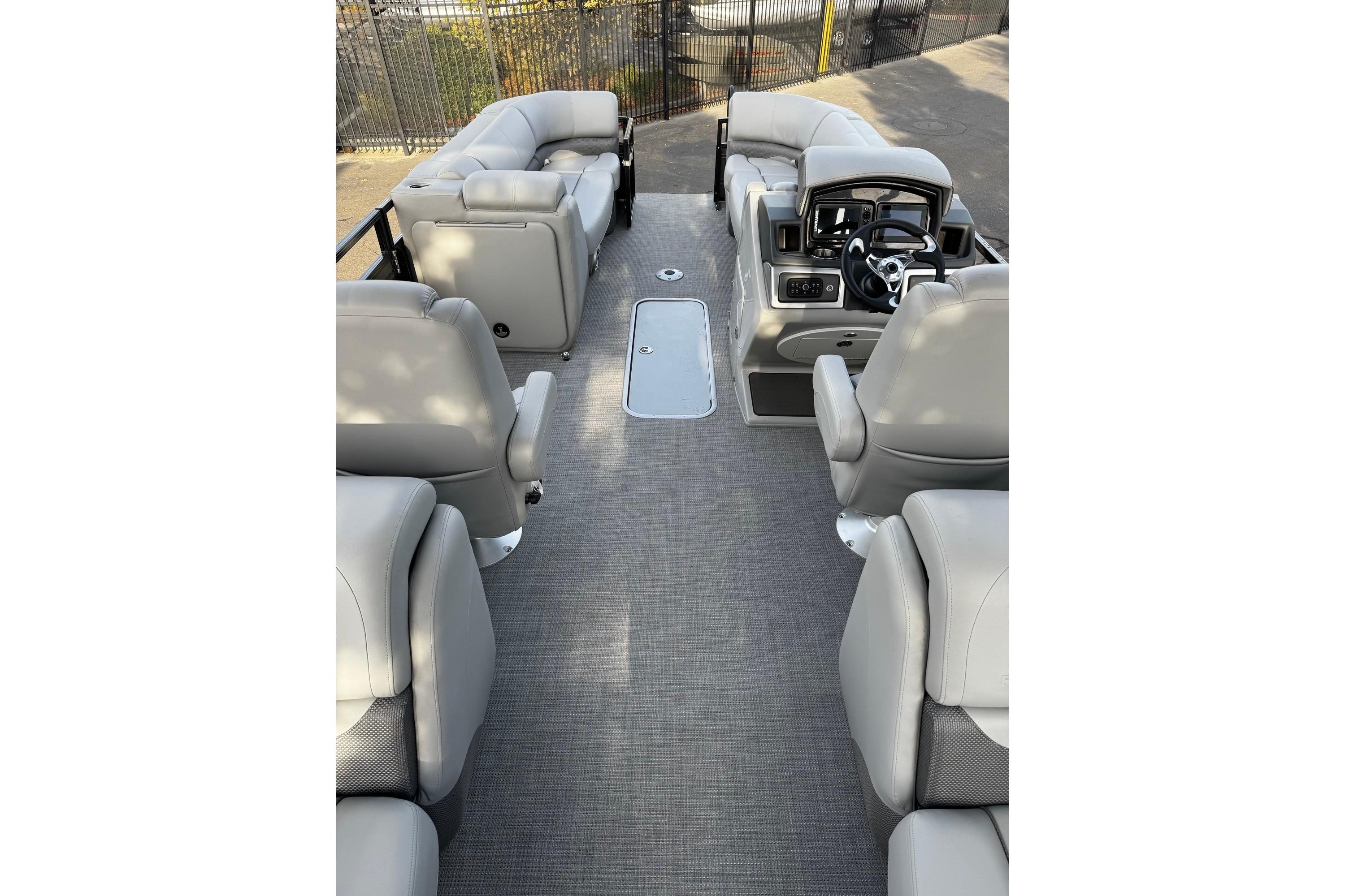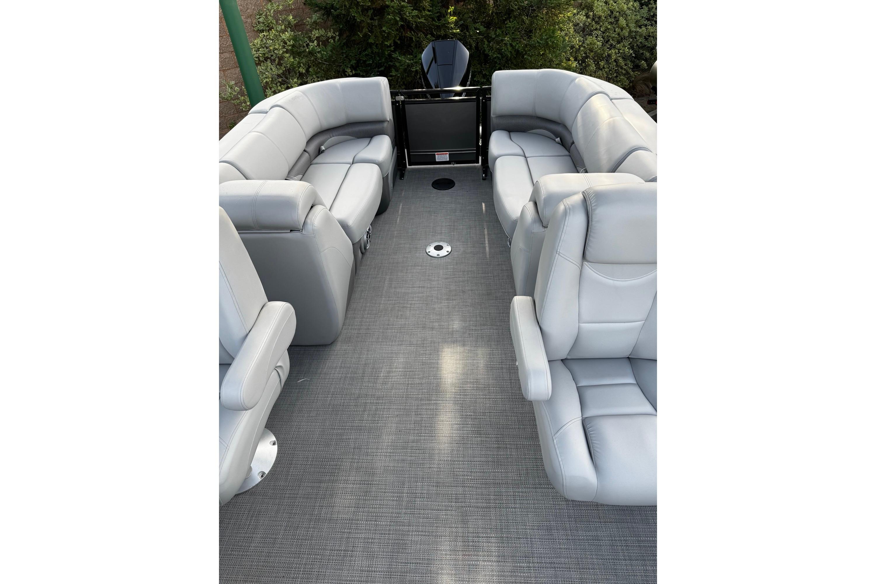 Enjoy the bow-to-stern soft-touch woven flooring that remains cool and slip-resistant throughout the summer. And when it’s time to ramp up the fun, unleash up to 250 horsepower with a jab of the throttle. The FourStroke Mercury® engine harmonizes flawlessly with the tritoon's impeccable handling, courtesy of the trio of 26-foot powder-coated logs equipped with LED accent lighting for a striking appearance after dark.