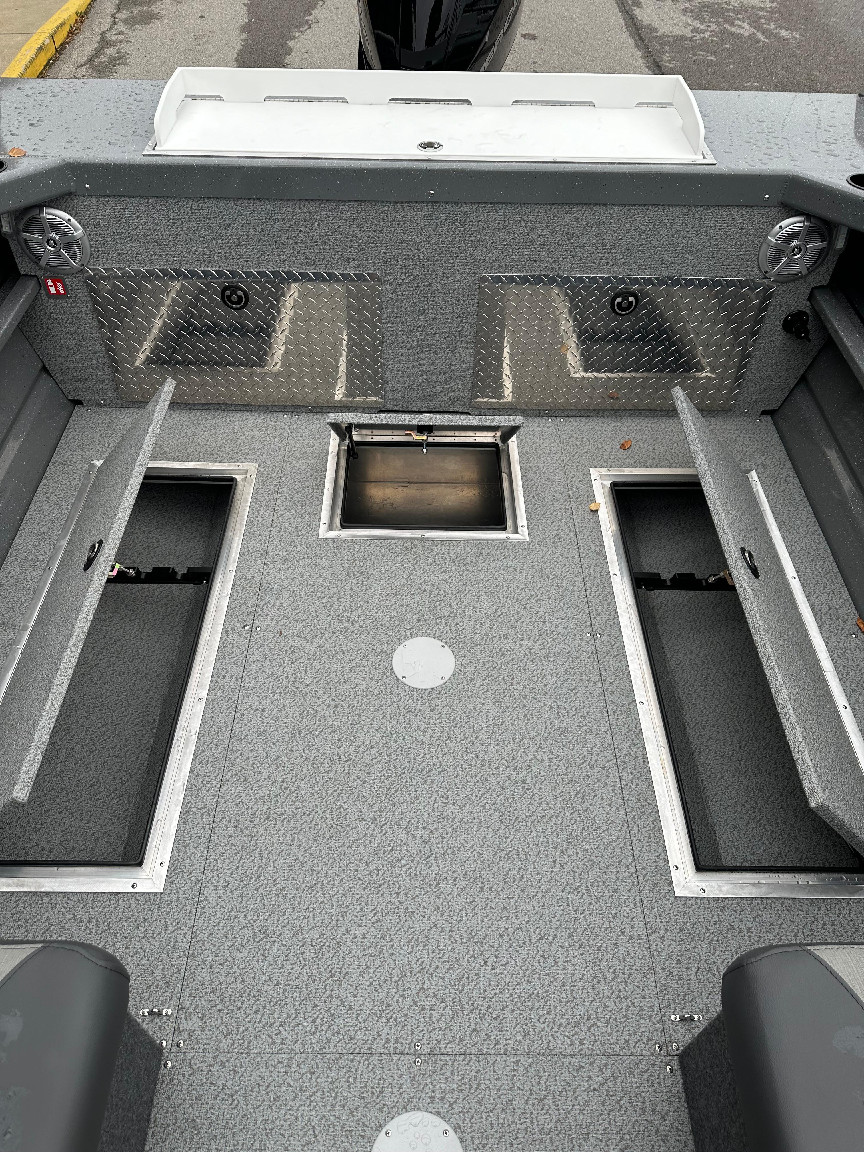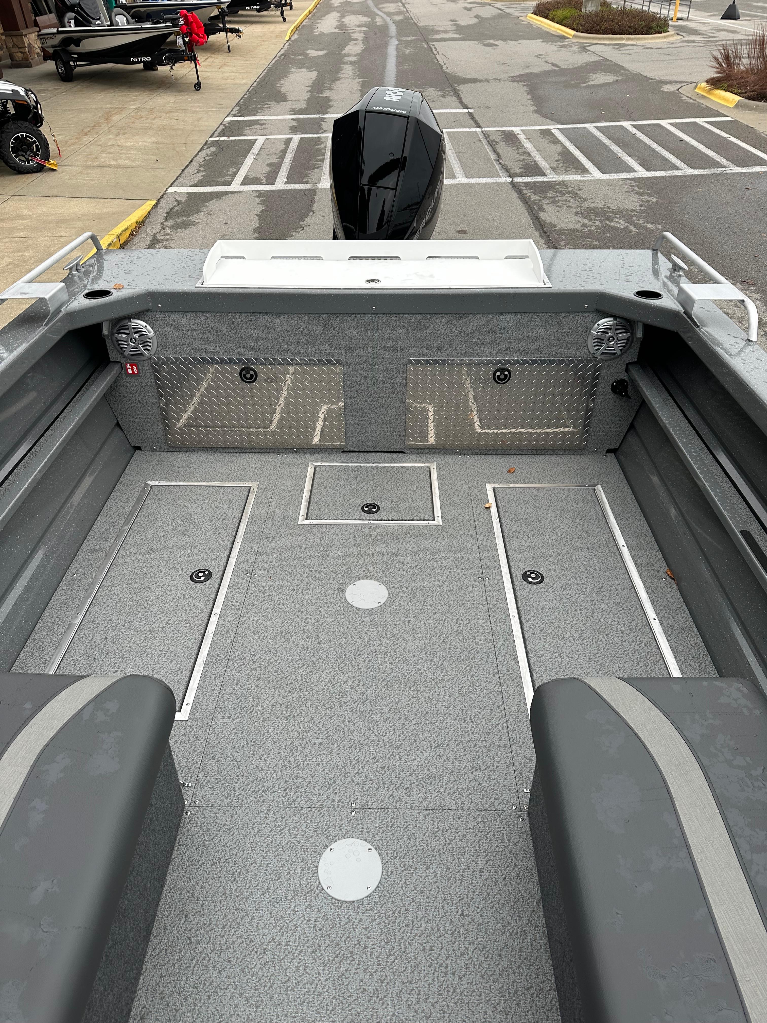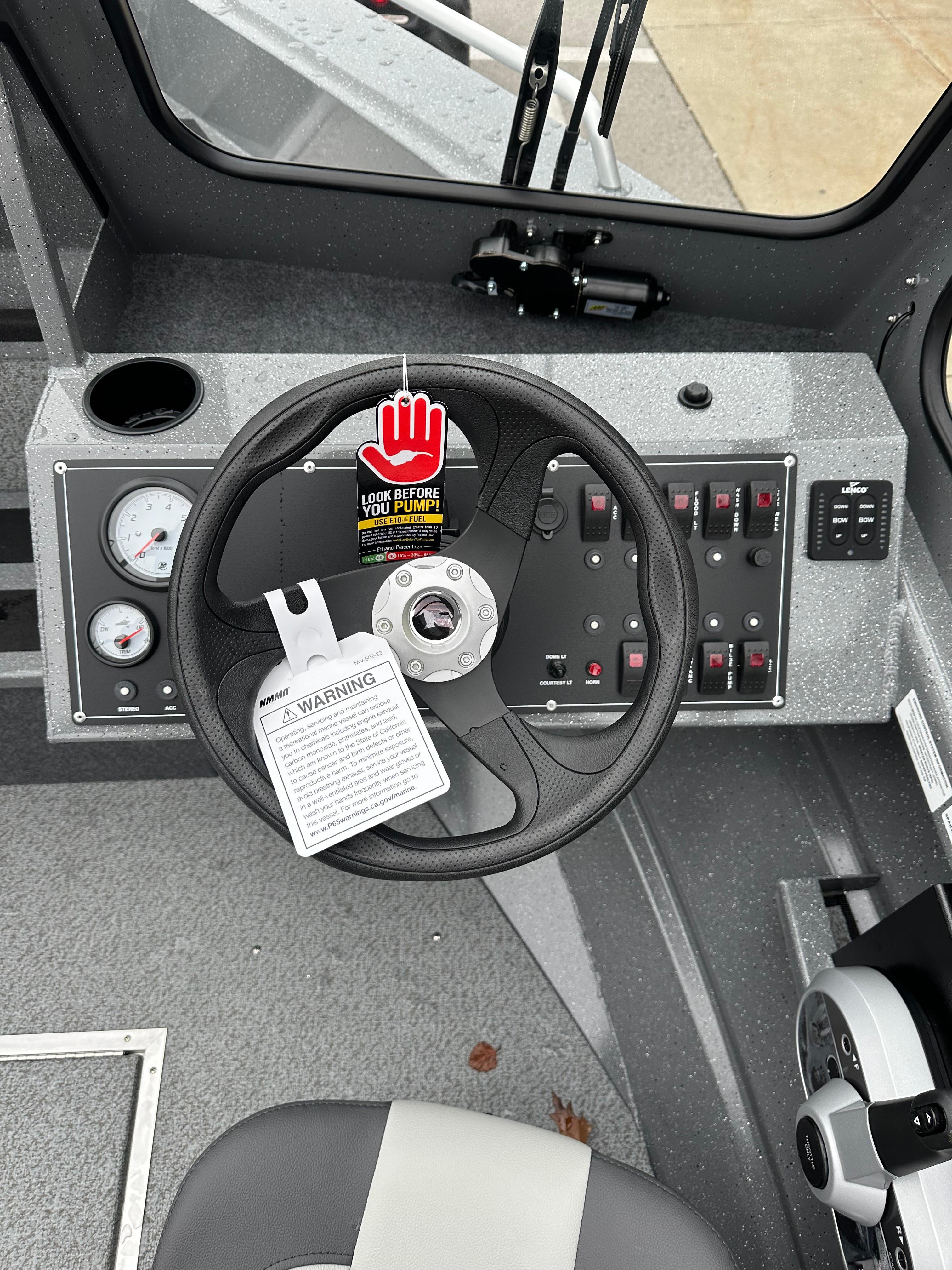 Options include full hull side paint, 9.9 EFI Kicker installed , Hydraulic steer W/ Tilt helm, insulated fish box, Port / STBD net holder, Port / STBD smooth moves, Washdown, Dual battery, Dual bilge, Trim Tabs, AND MORE !