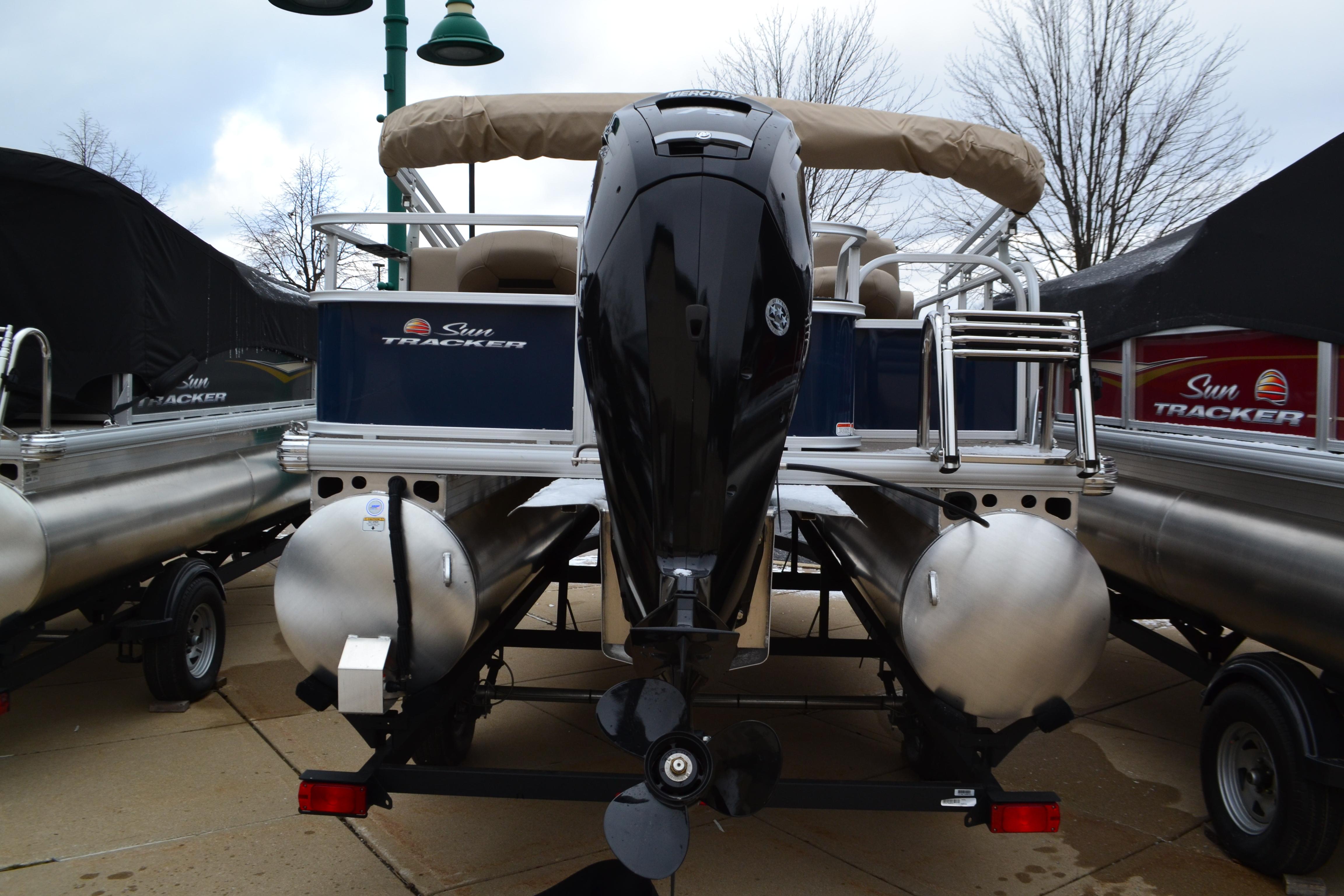 • 9' (2.74 m) SUN TRACKER® QuickLift™ Bimini top w/LED courtesy lights, storage pockets & protective boot (color-coordinated Sand w/Copper Red or Indigo Blue fencing)