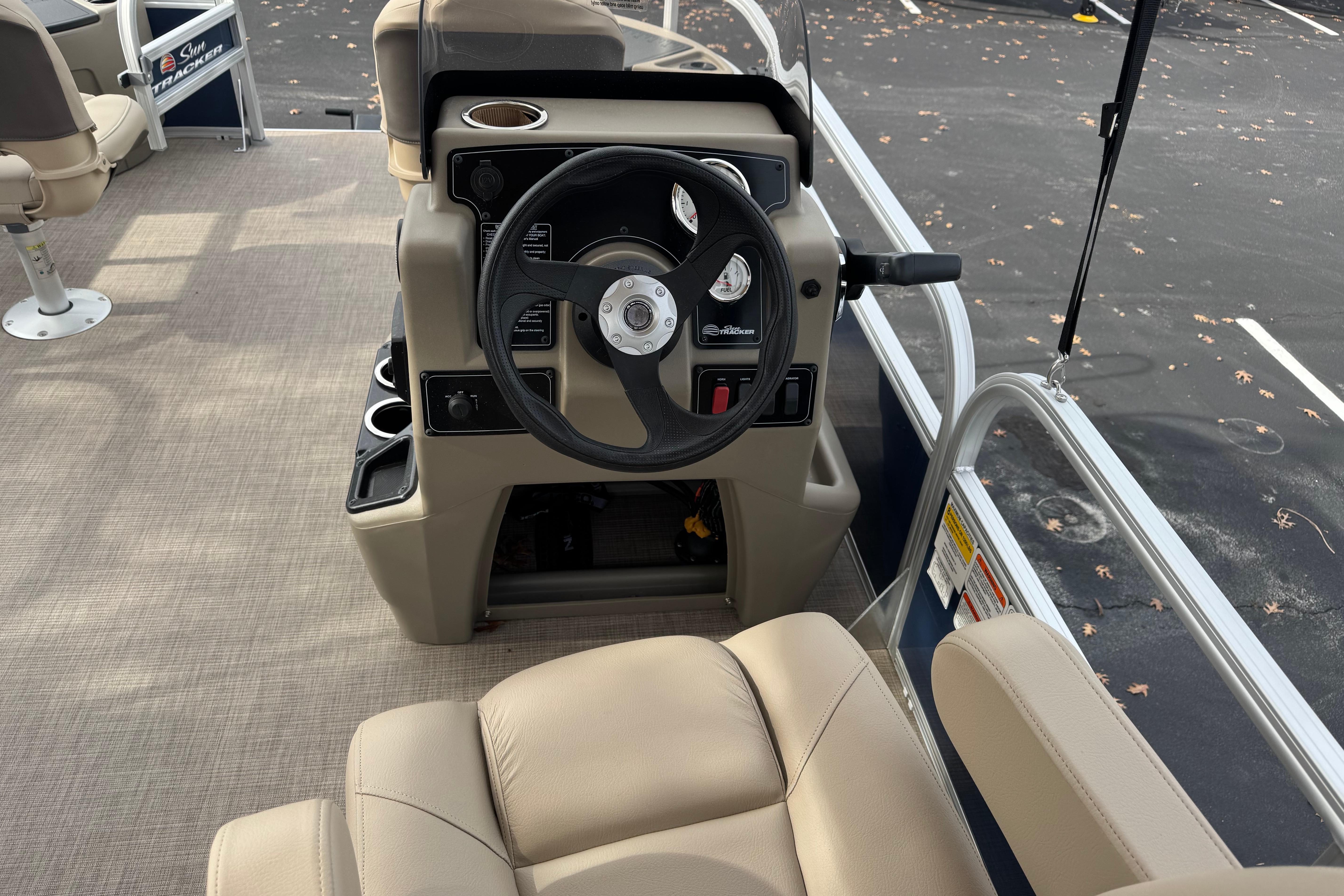 • Driver console w/vertical rod holder, integrated storage, drink holders & side-mounted controls