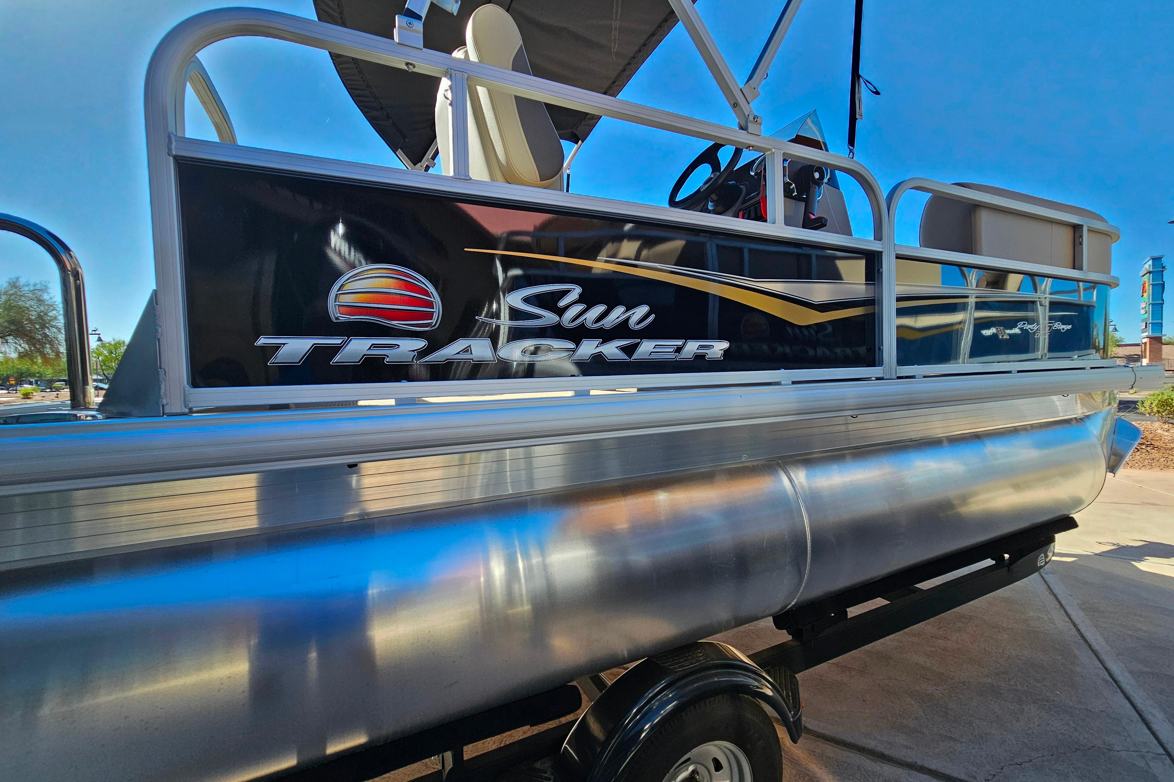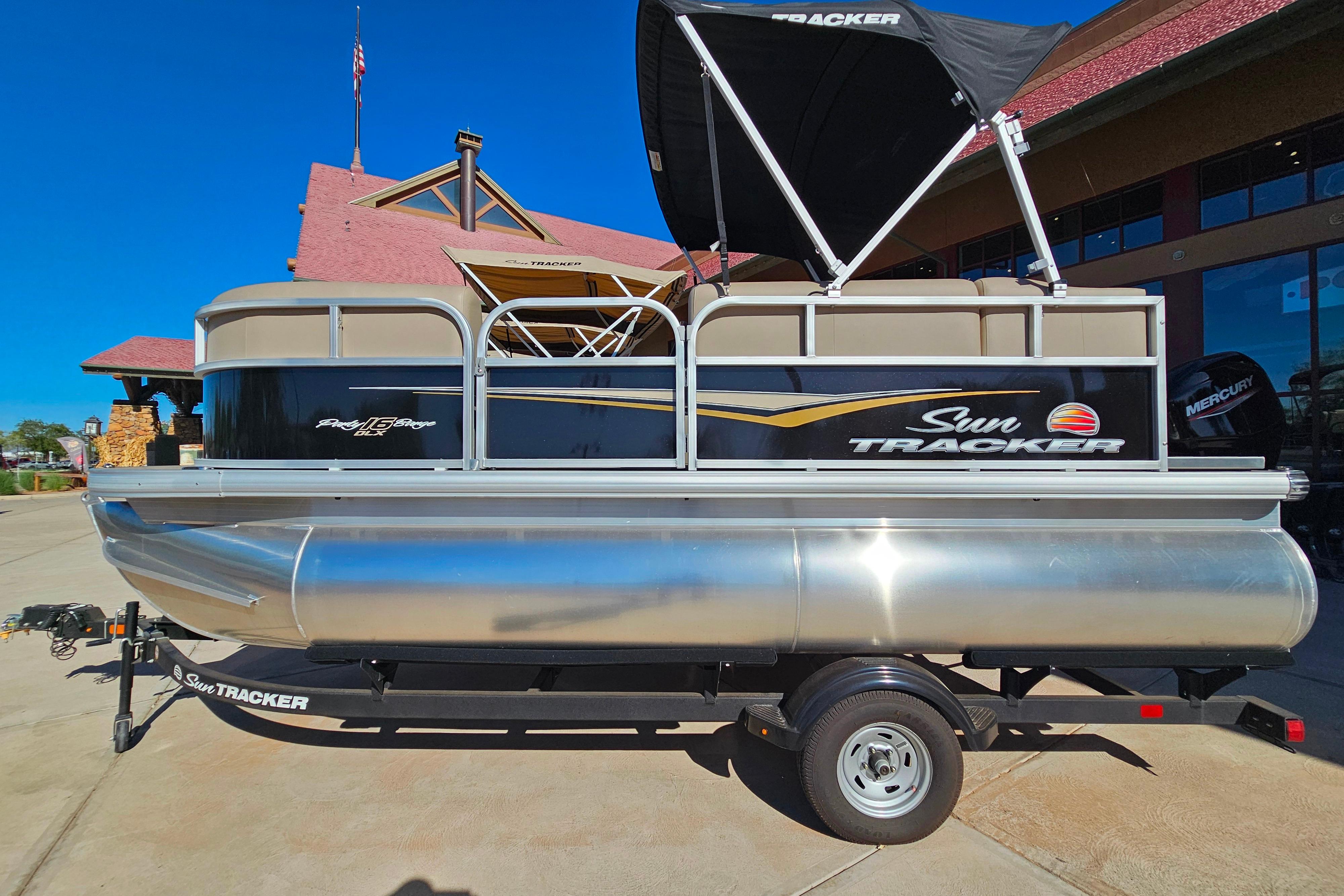 Cruise into the lake life with the 2025 SUN TRACKER® PARTY BARGE® 16 DLX. The most compact pontoon boat in the SUN TRACKER® family makes towing a breeze. Its deck has plenty of room for a crew of 7 friends and family. Let them kick back on the 3 luxurious corner lounges while the pilot sits at the helm in the swiveling captain’s chair. Each seat is wrapped in luxurious and durable vinyl. The wraparound fence sports a port wheelchair-accessible gate. You’ll also find gates at the fore and rear boarding platforms.