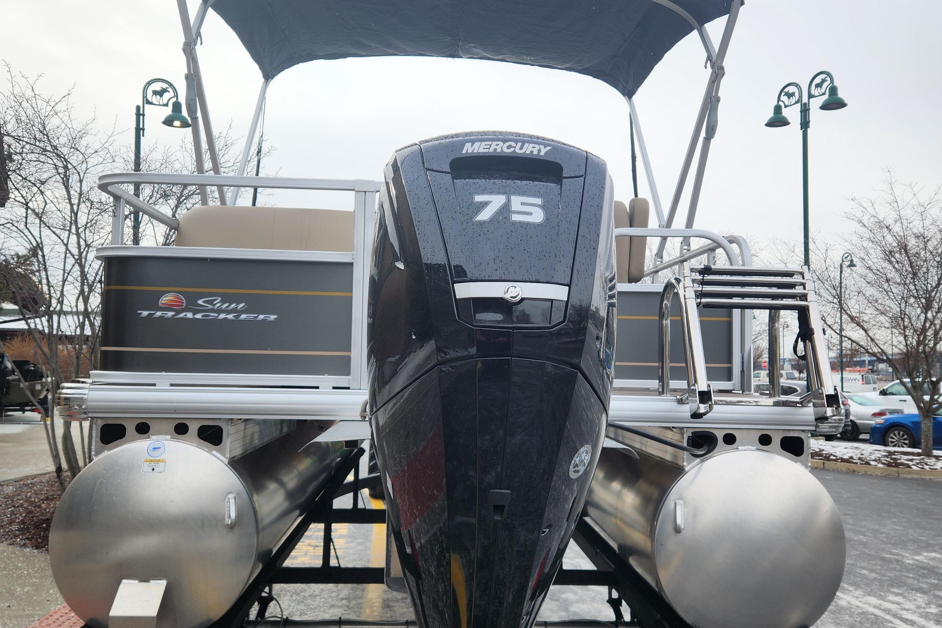 The PARTY BARGE® 18 DLX comes standard with a 40hp Mercury® ELPT FourStroke outboard motor and has a recommended maximum 75hp rating.