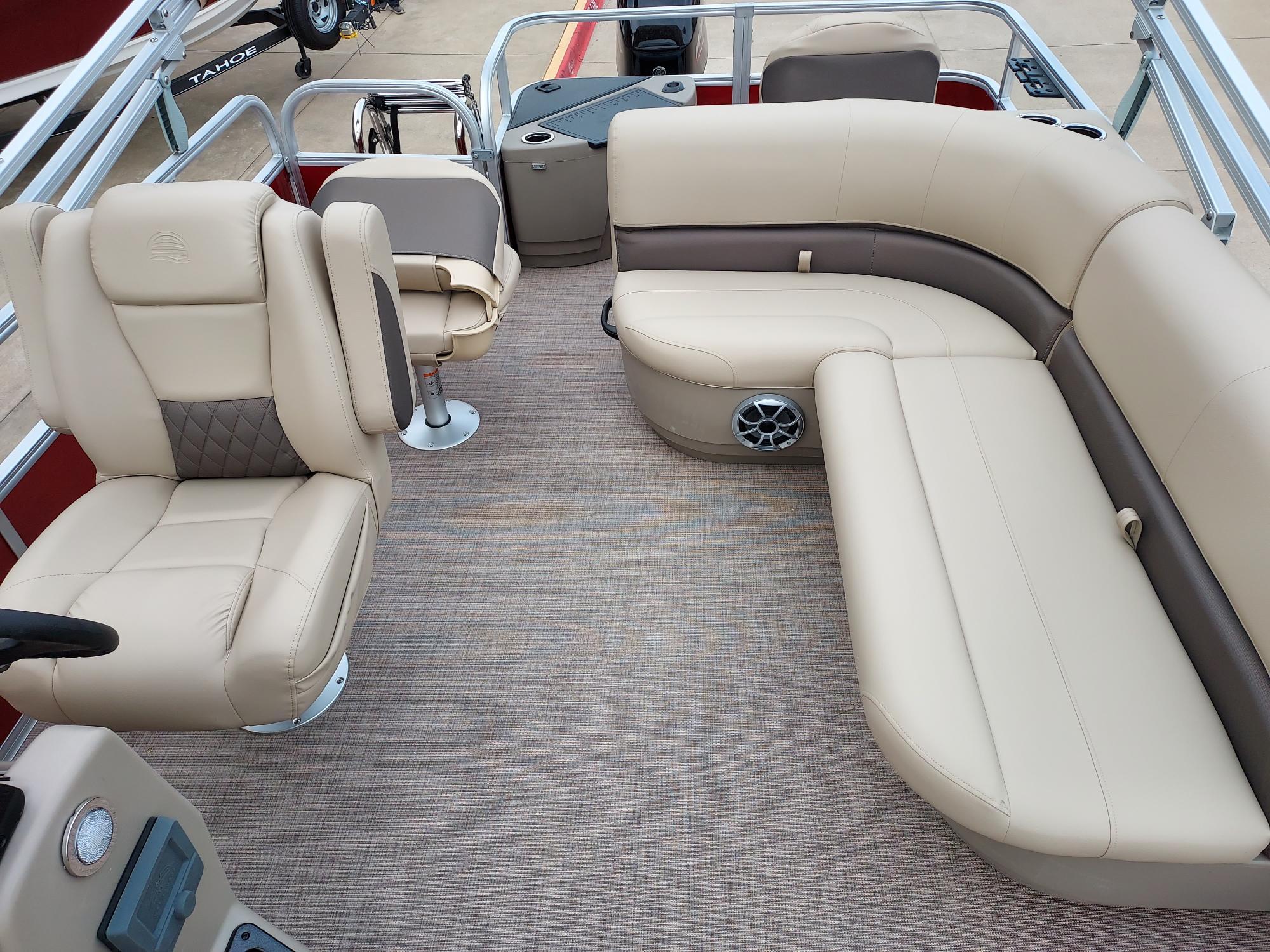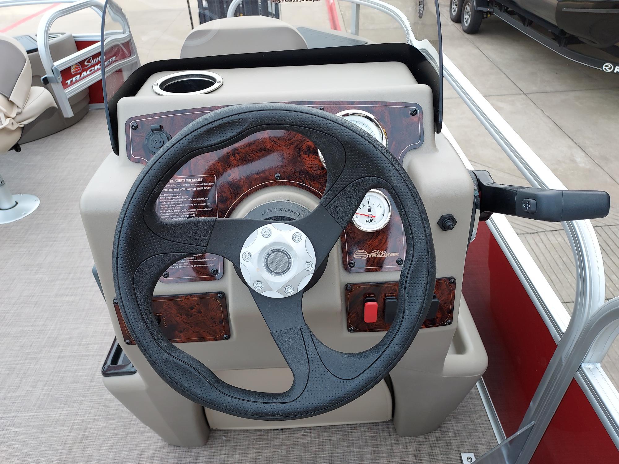 When the sun is high, raise the 9' bimini top for some shade. Create the ideal soundtrack for your adventure with the standard Wet Sounds® stereo and 2 upholstery speakers. The SUN TRACKER FLARE touch-screen gauge display and 12-button switch panel give you ultimate control over your boating experience.