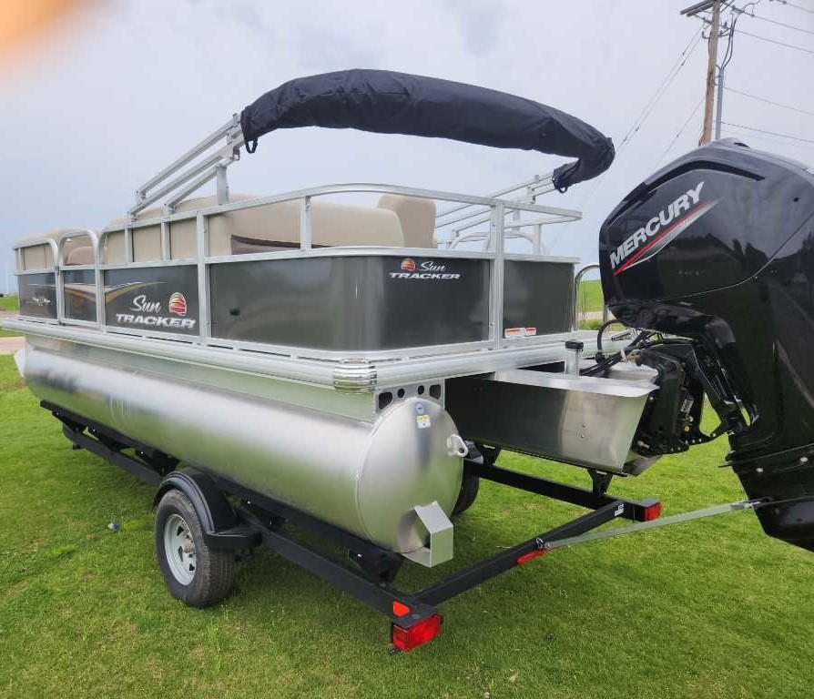 When the sun is high, raise the 9' bimini top for some shade. Create the ideal soundtrack for your adventure with the standard Wet Sounds® stereo and 2 upholstery speakers. The SUN TRACKER FLARE touch-screen gauge display and 12-button switch panel give you ultimate control over your boating experience.