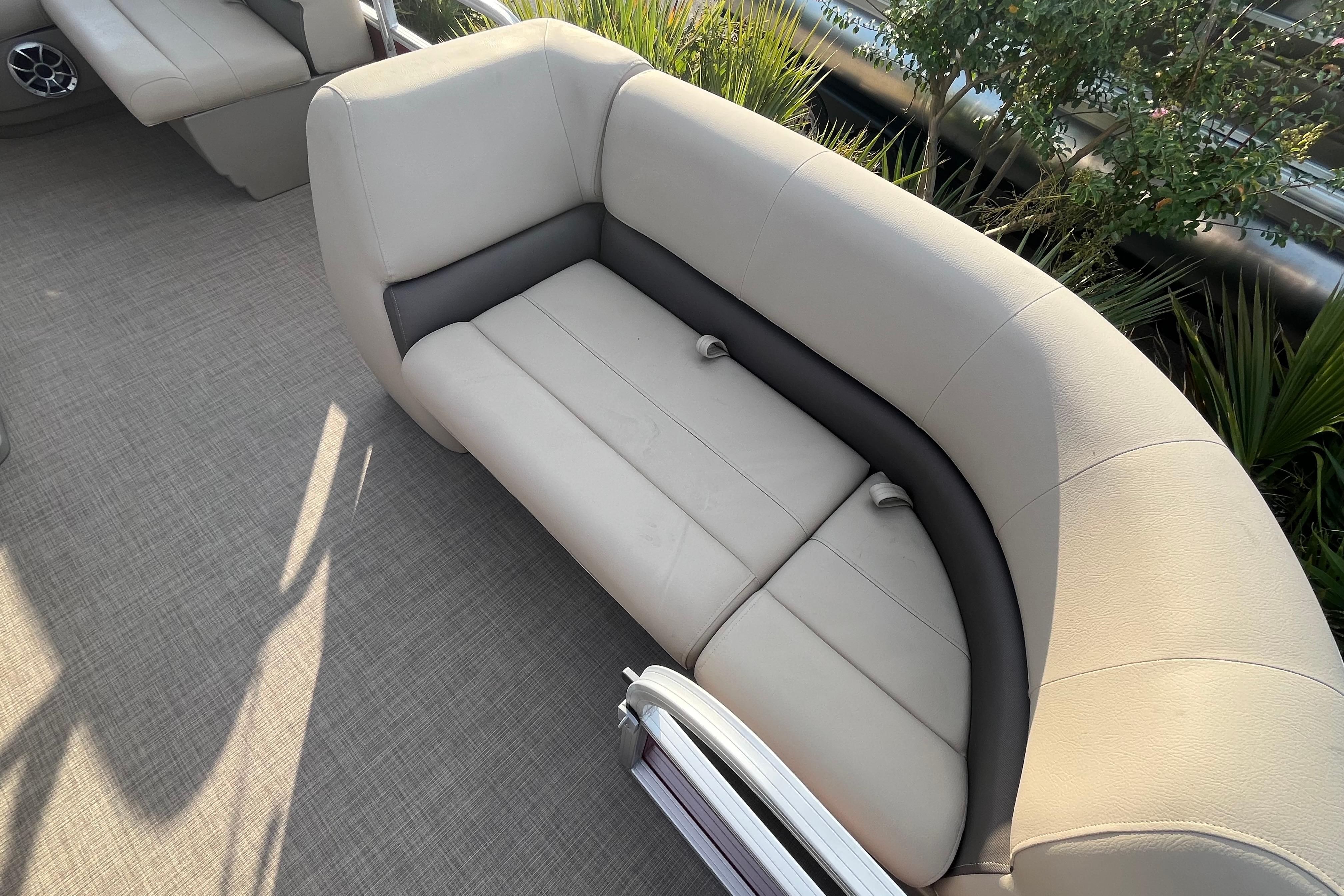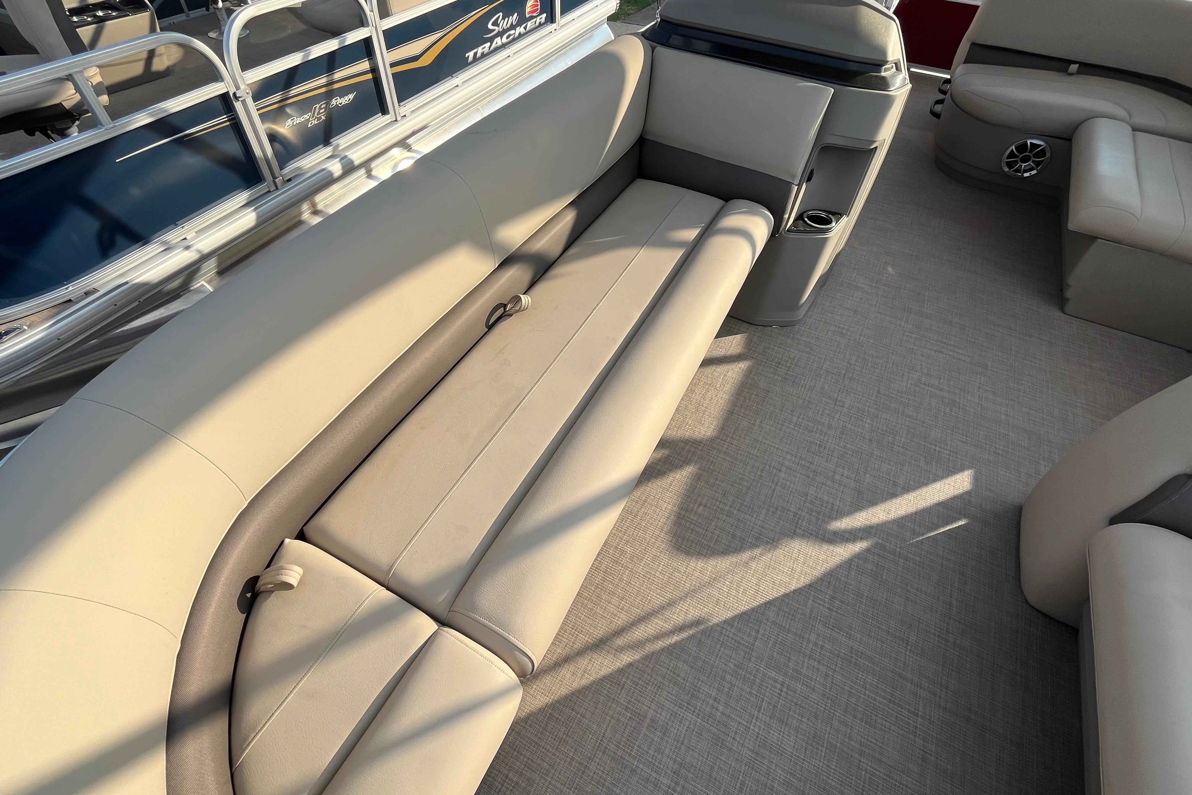 When the sun is high, raise the 9' bimini top for some shade. Create the ideal soundtrack for your adventure with the standard Wet Sounds® stereo and 2 upholstery speakers. The SUN TRACKER FLARE touch-screen gauge display and 12-button switch panel give you ultimate control over your boating experience.