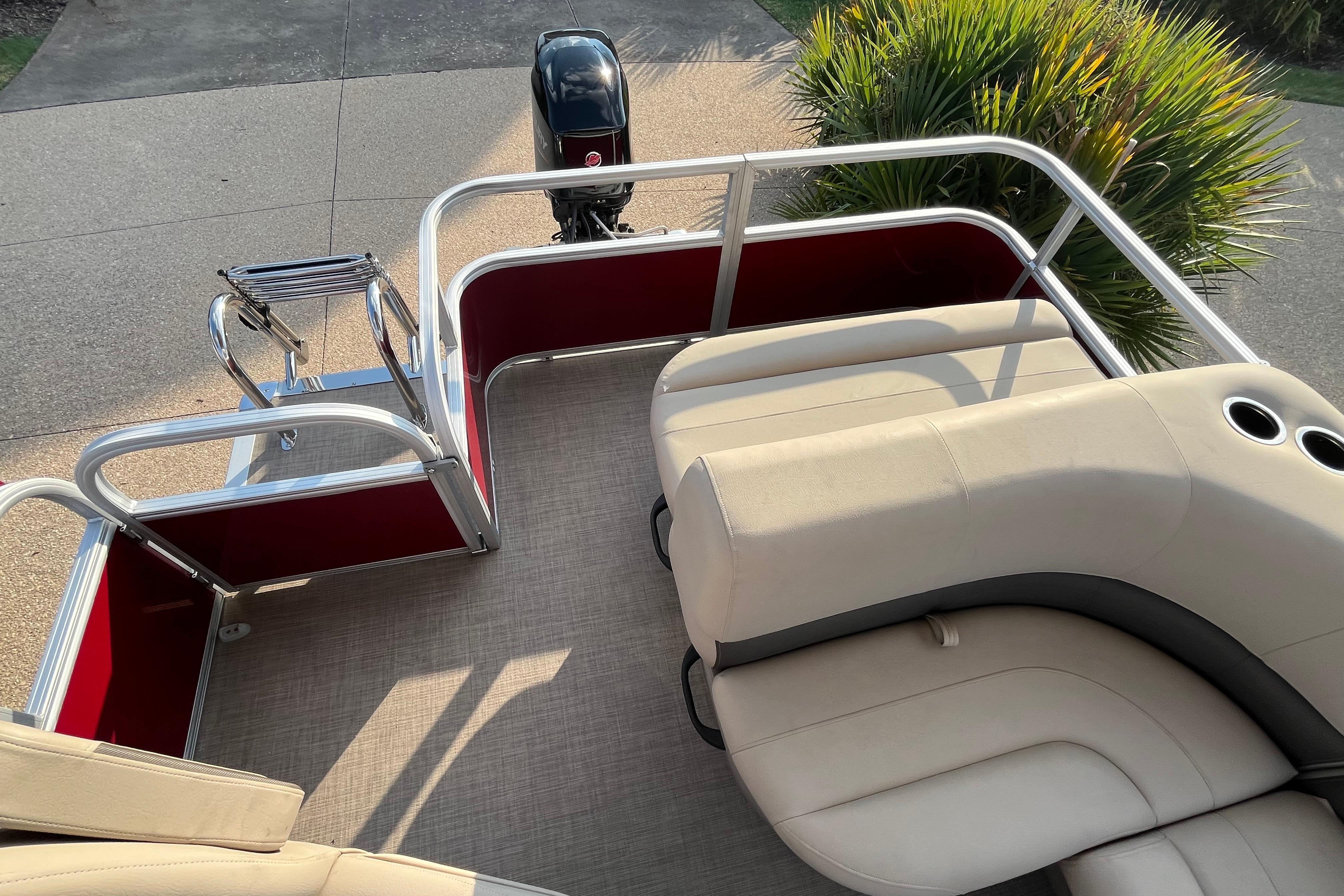 Upgrade your explorations with the 2025 PARTY BARGE® 18 DLX! Fit up to 9 passengers in this quality pontoon boat. They can relax on one of the 3 lounge couches while the pilot stays comfortable in the swiveling, telescoping captain's chair. Those lounges feature under-seat storage with plenty of space to hold all you need for today's aquatic adventure. The console also features a hidden storage space perfect for stowing away a cooler.