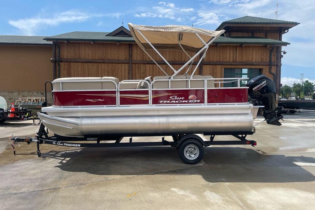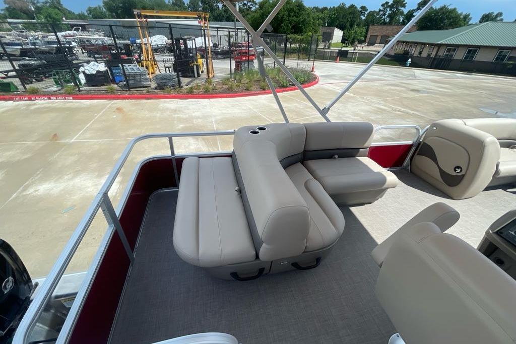 Upgrade your explorations with the 2025 PARTY BARGE® 18 DLX! Fit up to 9 passengers in this quality pontoon boat. They can relax on one of the 3 lounge couches while the pilot stays comfortable in the swiveling, telescoping captain's chair. Those lounges feature under-seat storage with plenty of space to hold all you need for today's aquatic adventure. The console also features a hidden storage space perfect for stowing away a cooler.
