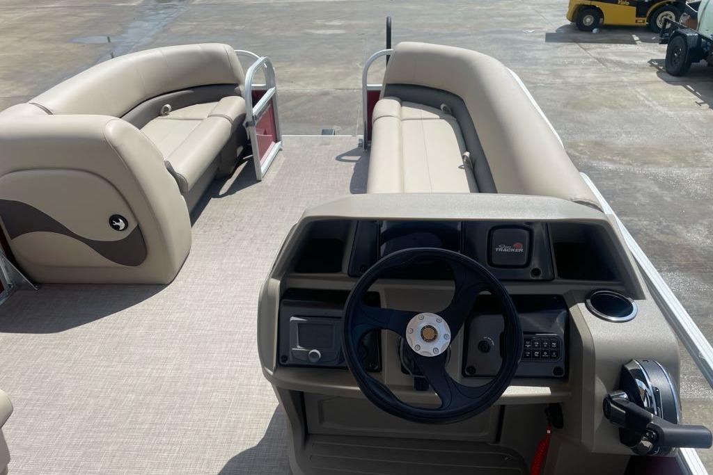 When the sun is high, raise the 9' bimini top for some shade. Create the ideal soundtrack for your adventure with the standard Wet Sounds® stereo and 2 upholstery speakers. The SUN TRACKER FLARE touch-screen gauge display and 12-button switch panel give you ultimate control over your boating experience.