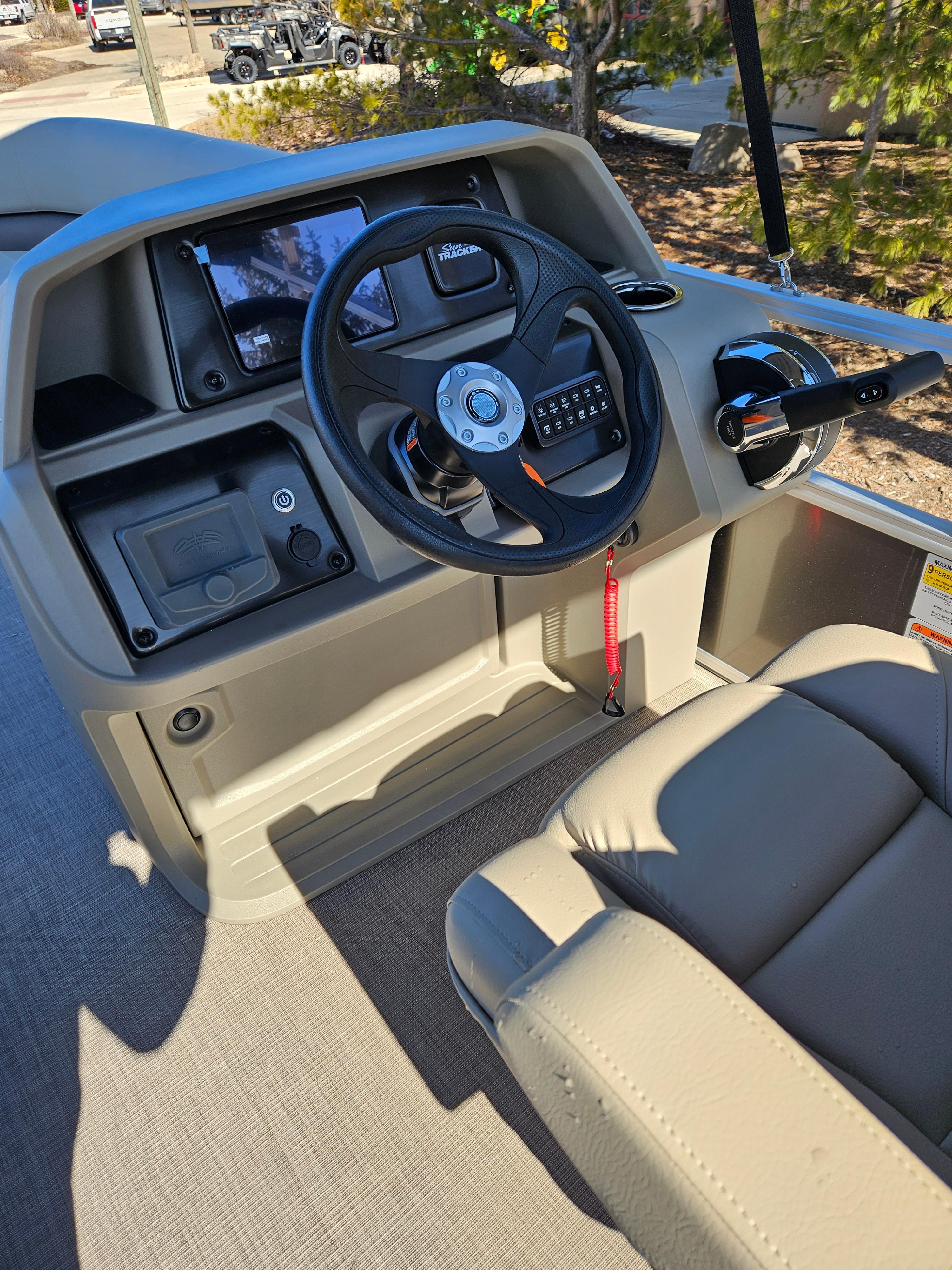 When the sun is high, raise the 9' bimini top for some shade. Create the ideal soundtrack for your adventure with the standard Wet Sounds® stereo and 2 upholstery speakers. The SUN TRACKER FLARE touch-screen gauge display and 12-button switch panel give you ultimate control over your boating experience.