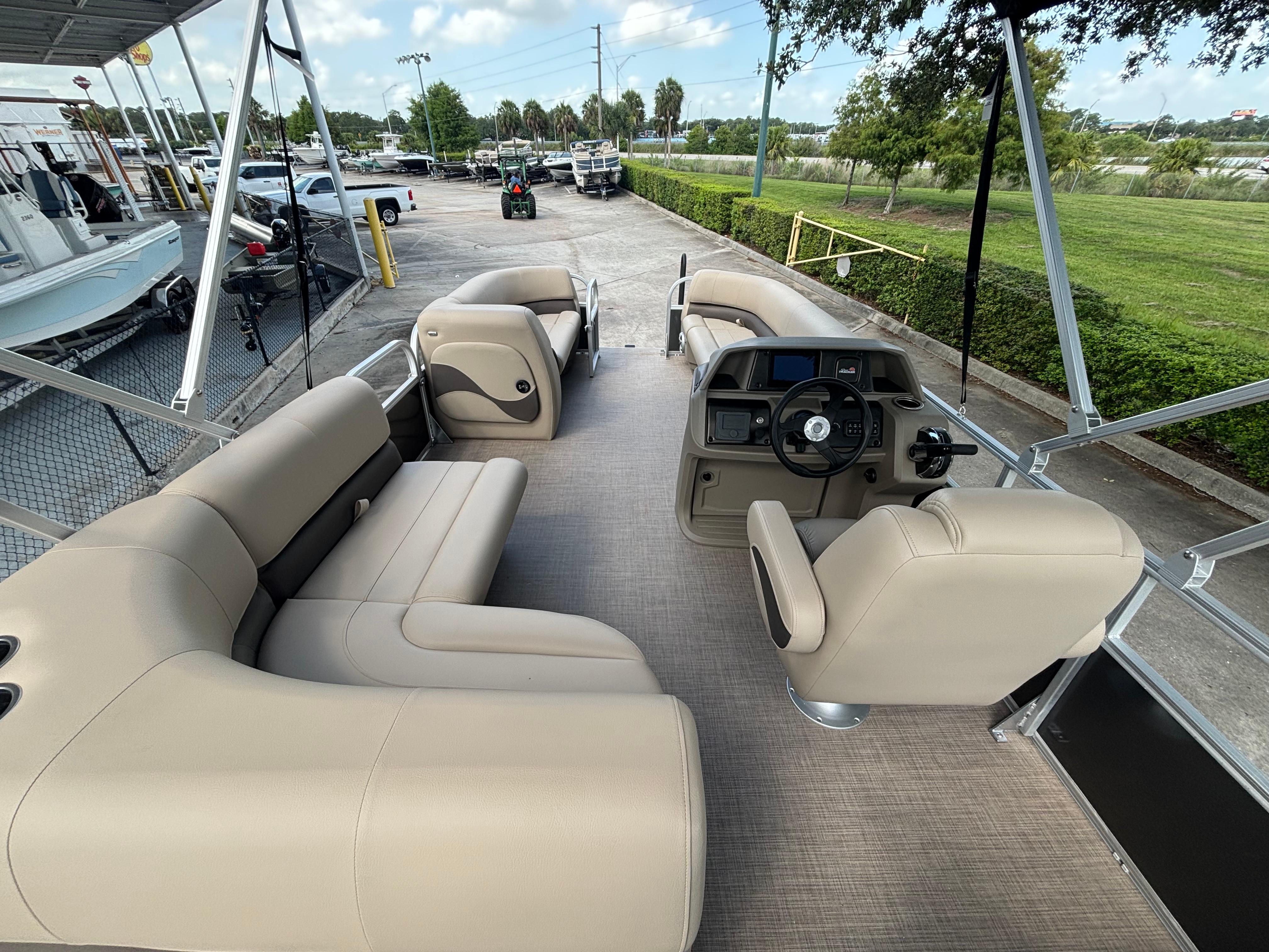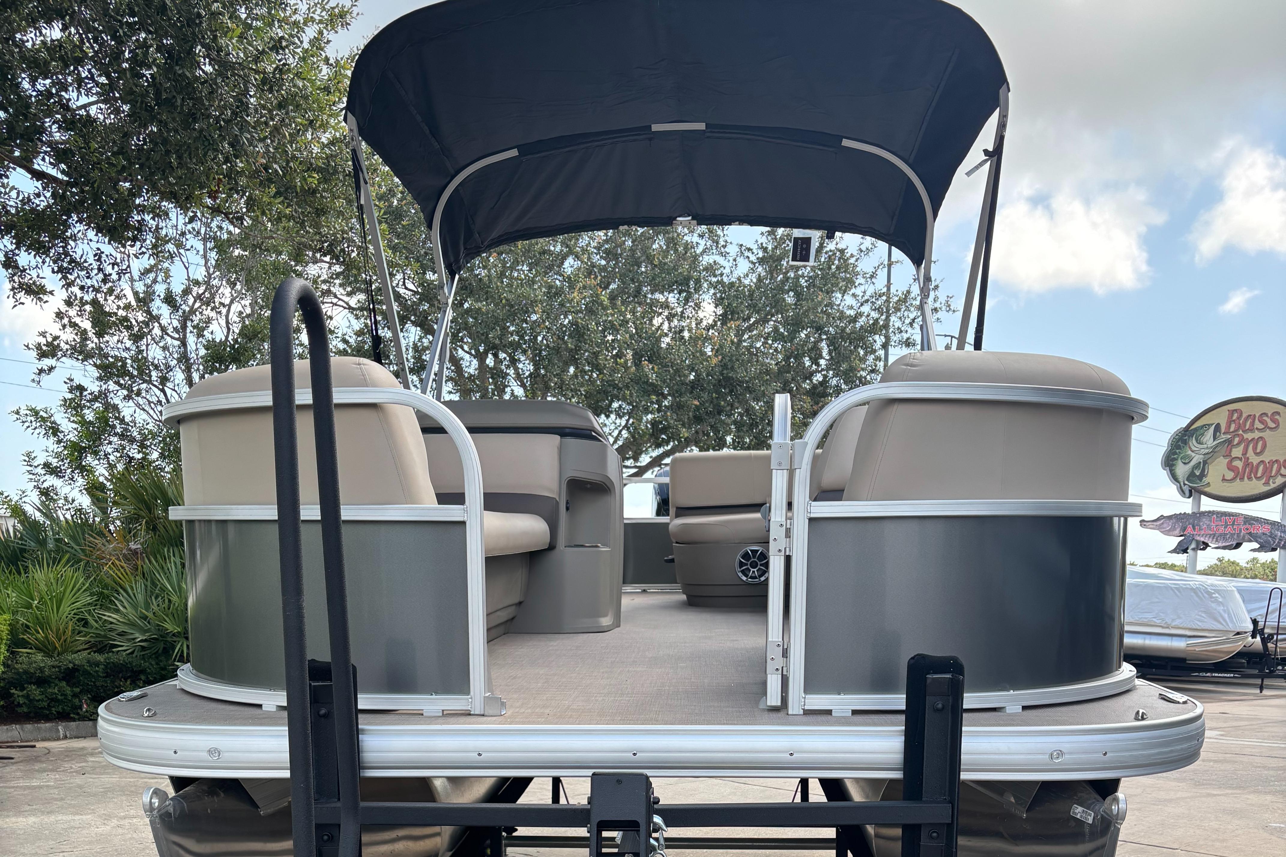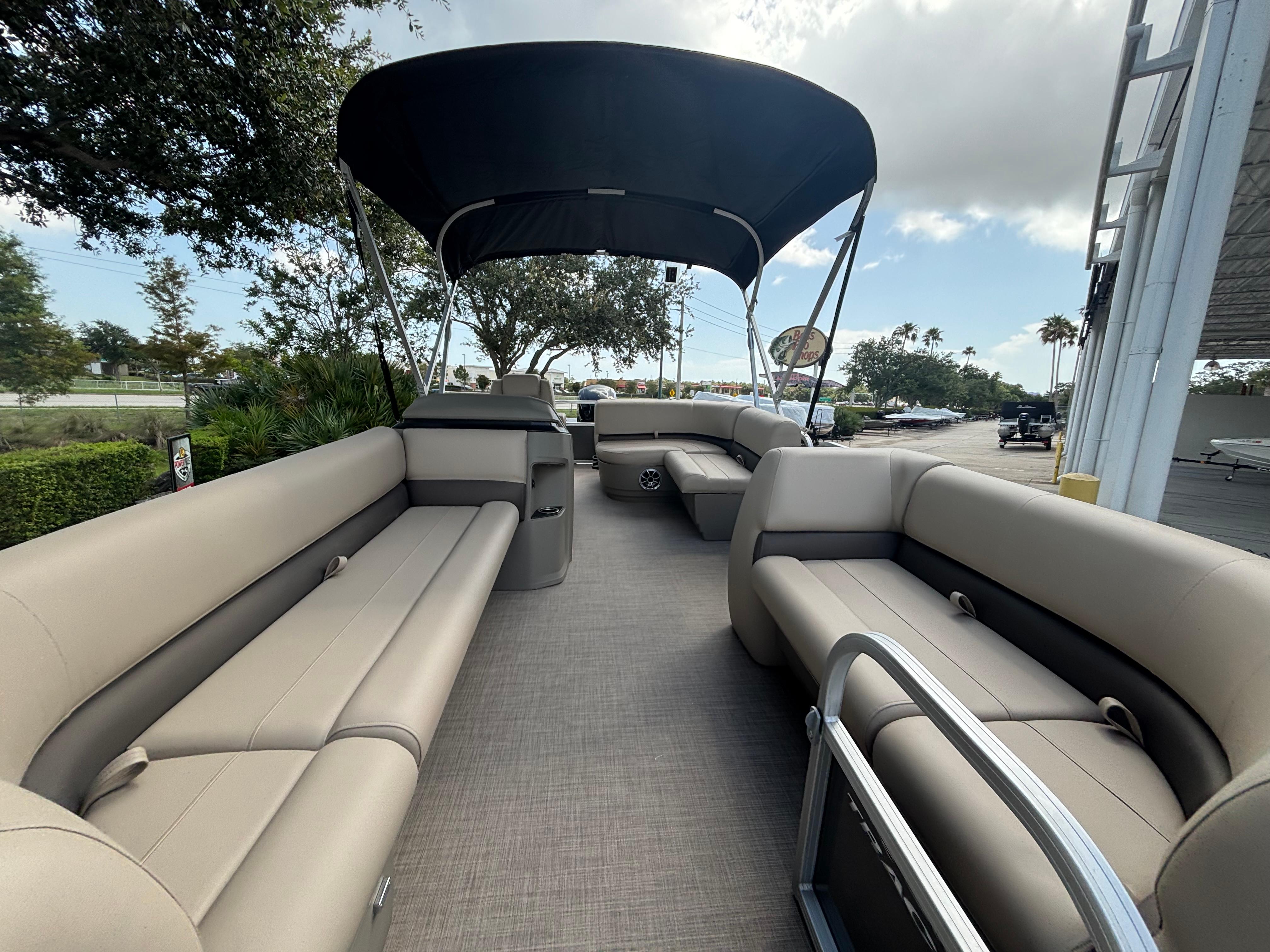 When the sun is high, raise the 9' bimini top for some shade. Create the ideal soundtrack for your adventure with the standard Wet Sounds® stereo and 2 upholstery speakers. The SUN TRACKER FLARE touch-screen gauge display and 12-button switch panel give you ultimate control over your boating experience.
