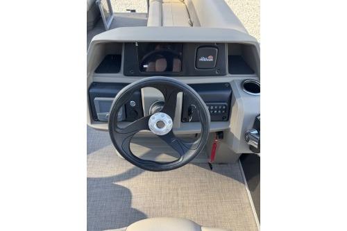 When the sun is high, raise the 9' bimini top for some shade. Create the ideal soundtrack for your adventure with the standard Wet Sounds® stereo and 2 upholstery speakers. The SUN TRACKER FLARE touch-screen gauge display and 12-button switch panel give you ultimate control over your boating experience.