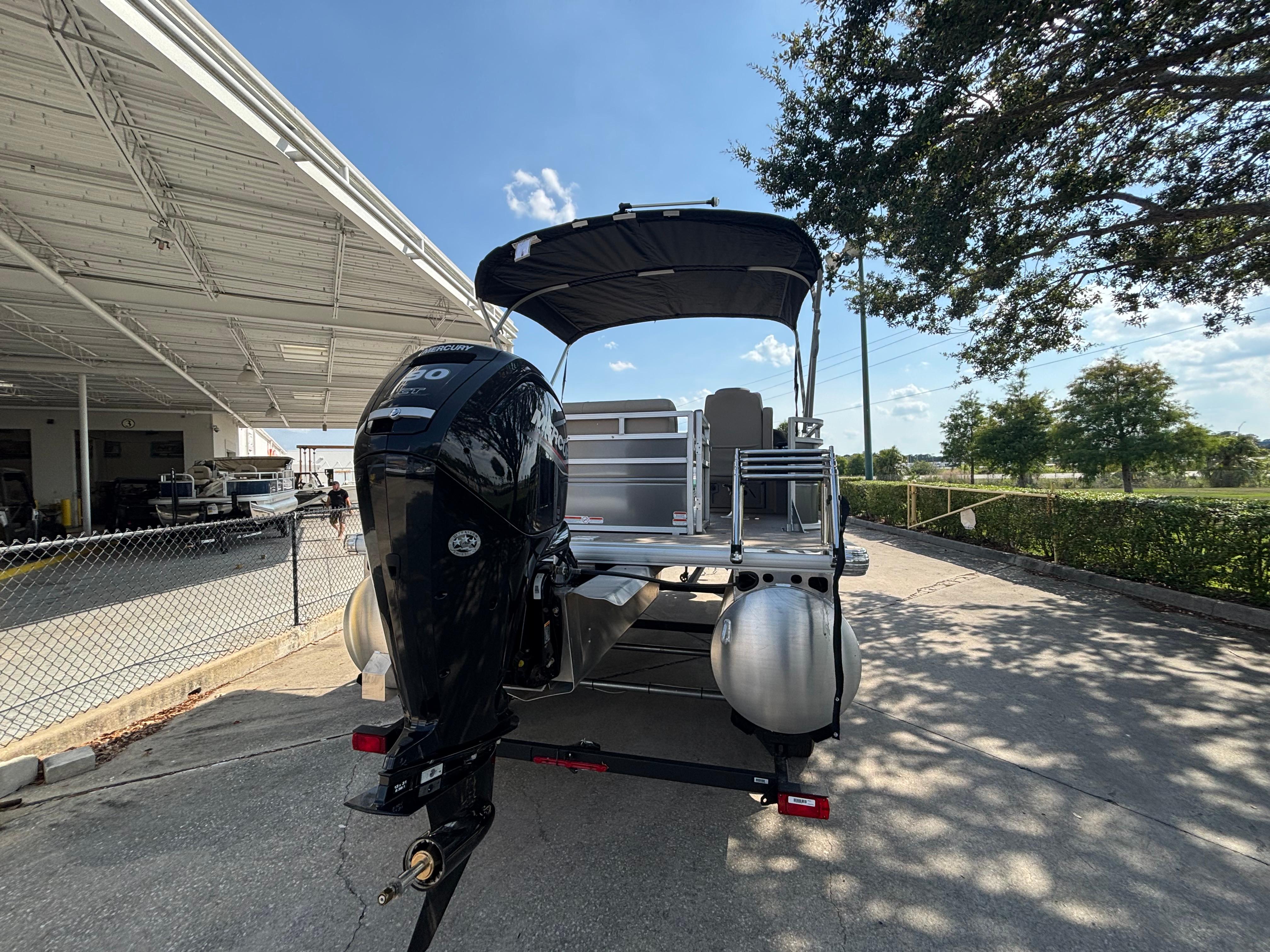 • 9' (2.74 m) SUN TRACKER® QuickLift™ Bimini top w/LED courtesy lights, storage pockets & protective boot (color-coordinated Black w/Charcoal fencing or Sand w/Copper Red fencing)