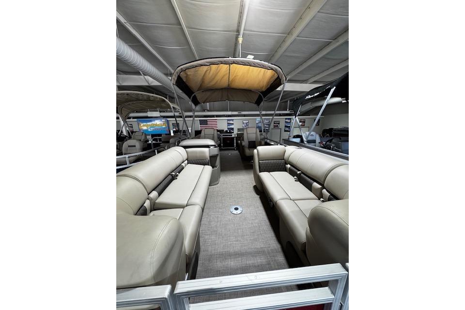 4 lounges. 2 captain's chairs. More drink holders than there are passengers. Maximized good times! The 2025 PARTY BARGE® 22 DLX is a floating house party loaded with exciting features and enough space for 11 passengers to enjoy them.