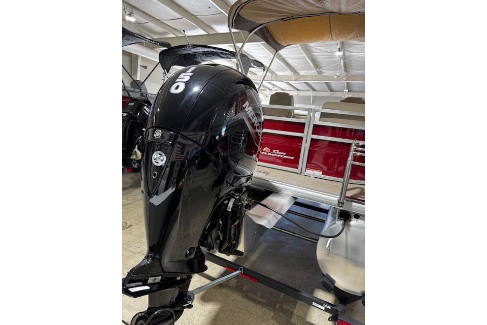 The PARTY BARGE® 22 DLX comes standard with a 90hp Mercury® ELPT FourStroke outboard motor and has a recommended maximum 150hp rating.