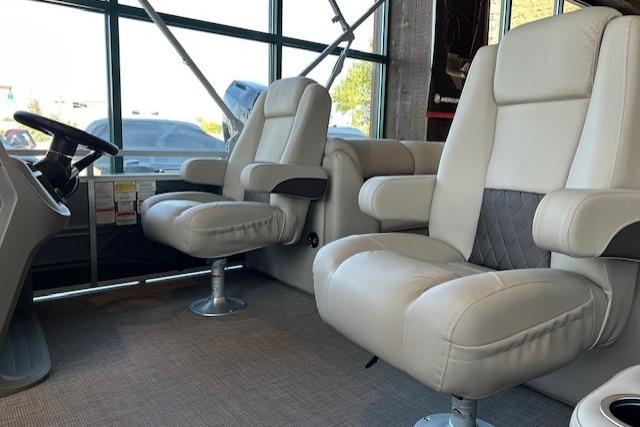• Reclining, high-back swiveling port & helm bucket seats w/self-leveling armrests
