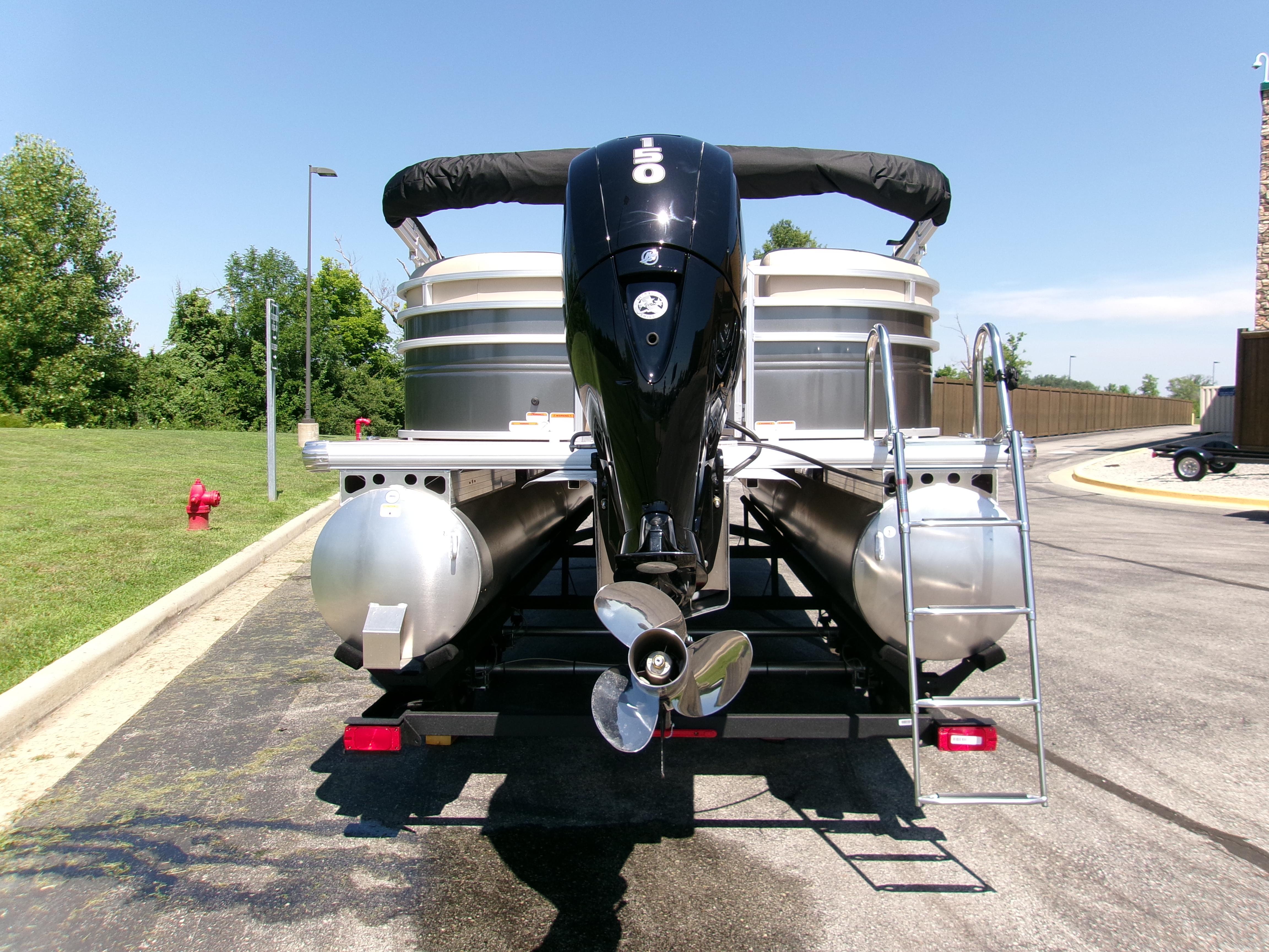 This deluxe pontoon boat provides you with an amazing amount of storage under each lounge's seat, behind their seat backs, and under the console. A removable table with 4 molded-in drink holders can be placed at 1 of 2 anchor points. Pump up the jams with the standard Wet Sounds® stereo system with 4 speakers embedded in the upholstery.
