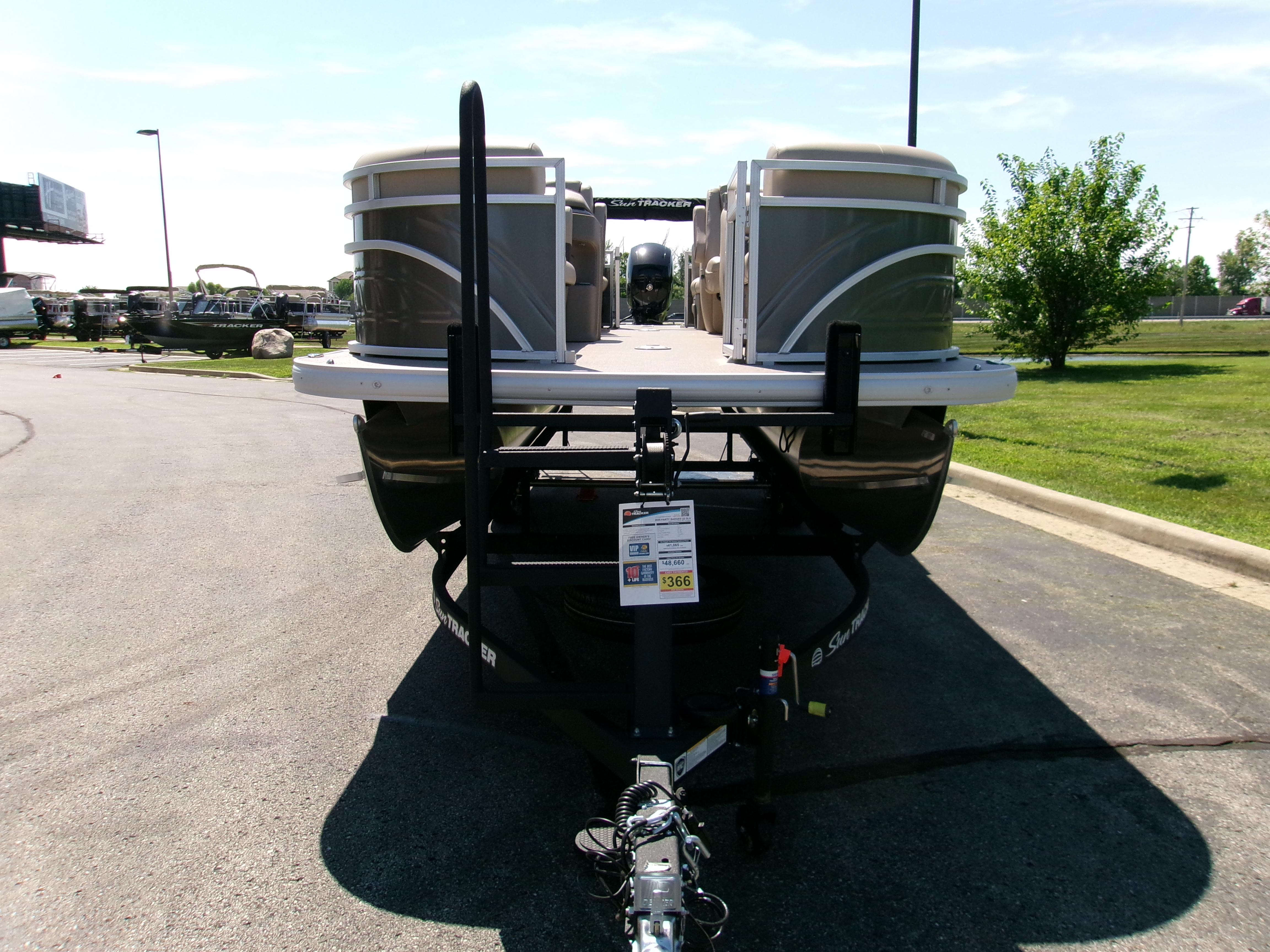 • 10' (3.05 m) SUN TRACKER® QuickLift™ Bimini top w/LED courtesy lights, storage pockets & protective boot (color-coordinated Black w/Charcoal fencing or Sand w/Copper Red fencing)
