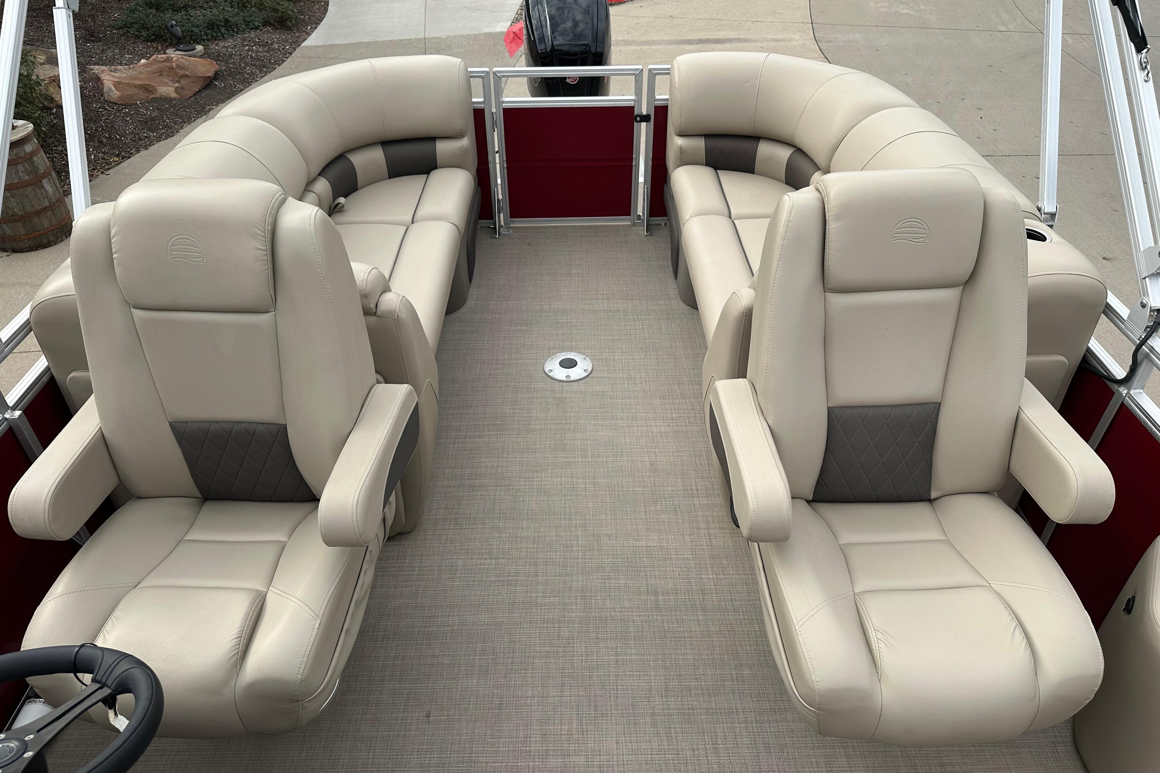 4 lounges. 2 captain's chairs. More drink holders than there are passengers. Maximized good times! The 2025 PARTY BARGE® 22 DLX is a floating house party loaded with exciting features and enough space for 11 passengers to enjoy them.