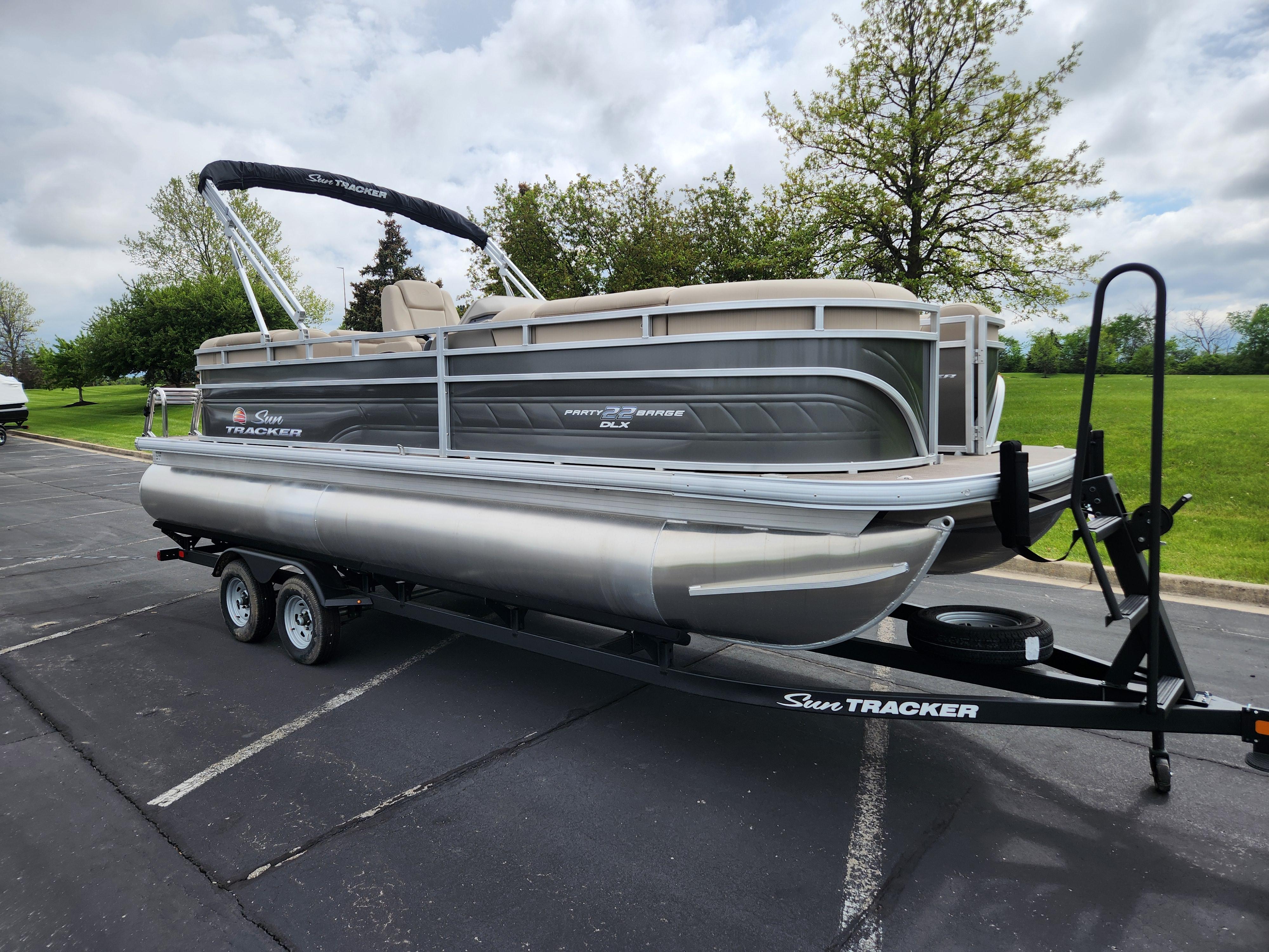 The PARTY BARGE® 22 RF DLX comes standard with a 115hp Mercury® ELPT FourStroke outboard motor and has a recommended maximum 150hp rating.