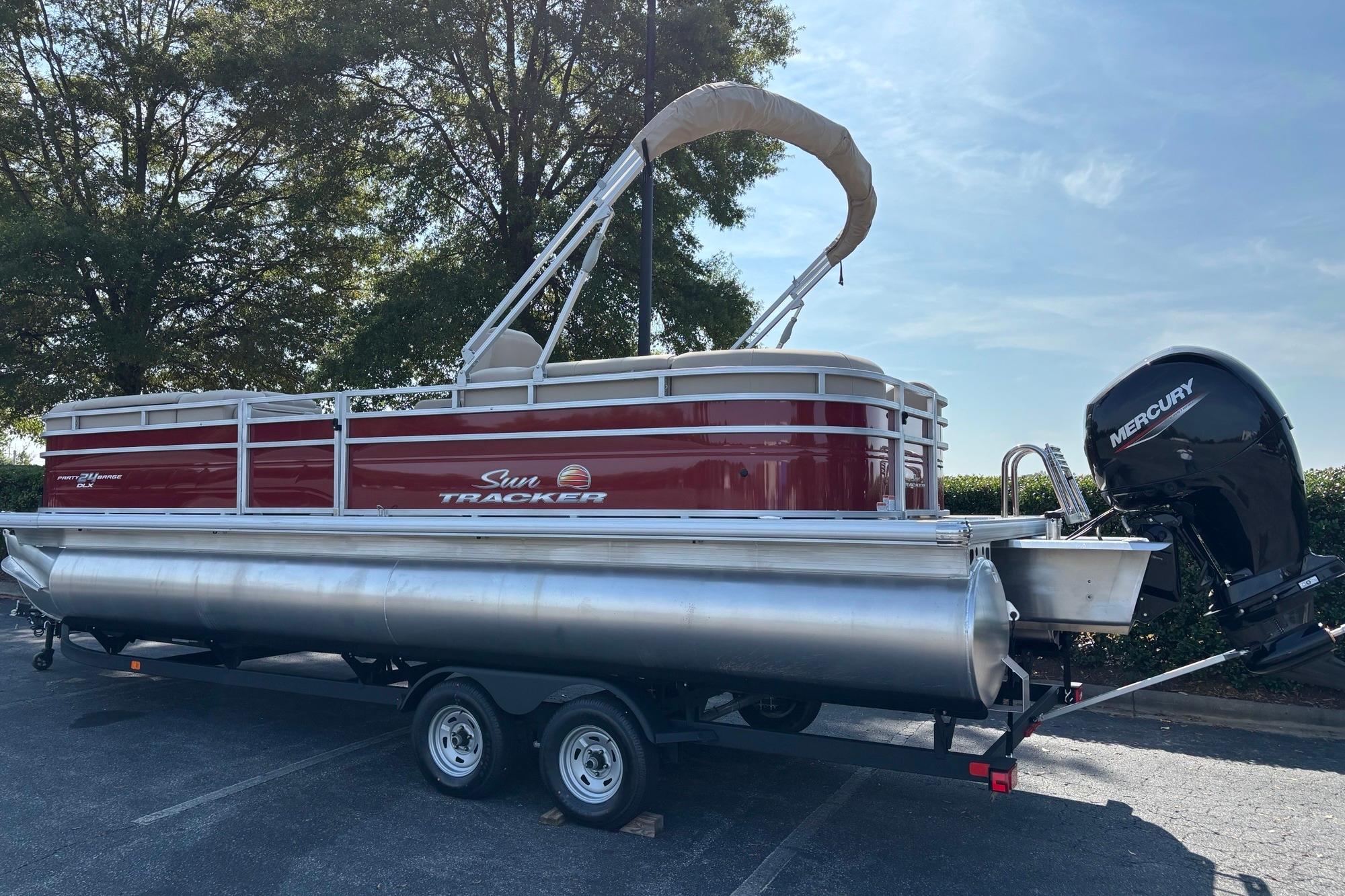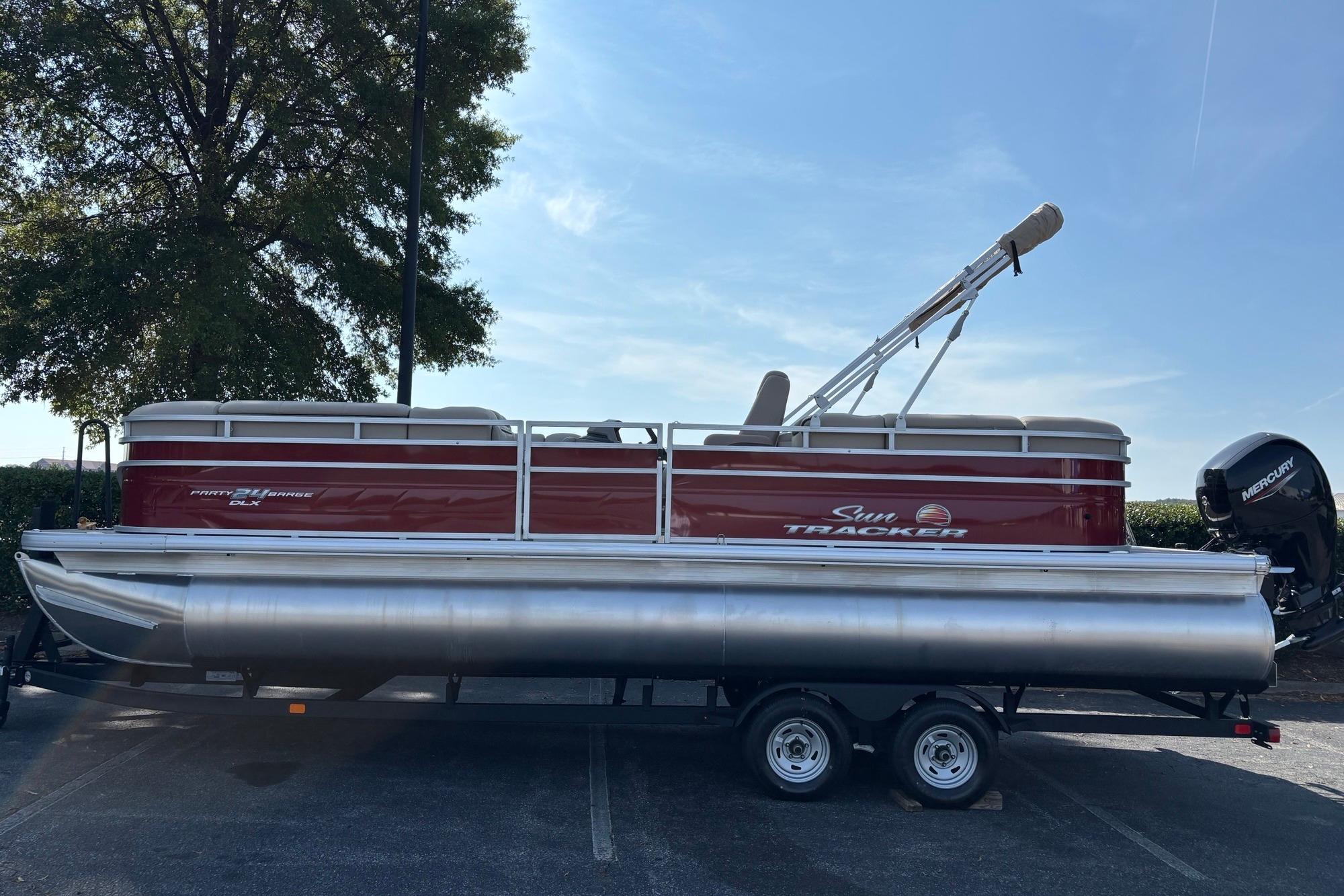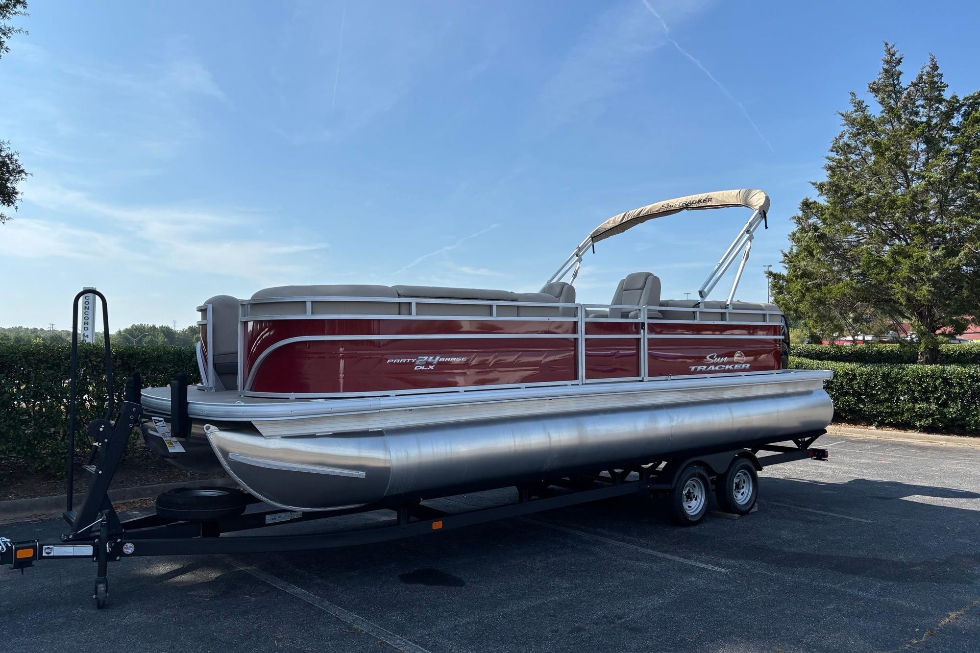 If you're going to go big, then go big! The 2025 PARTY BARGE® 24 DLX is the largest pontoon boat in the lineup, with room for up to 12 passengers. This PARTY BARGE® is lined with lounges in front of and behind the dual mid-deck captain's chairs. Those lounges feature the STOW MORE™ system, which places hidden storage spaces under the seats and behind the seat backs so you can keep all of your gear and supplies organized. The driver console also has an integrated storage space, as well as drink holders and a built-in footrest. The padded, easy-to-clean floor is easy on your feet and sports 2 anchor points for the moveable table and an optional ski-tow pylon. When the sun is beating down, deploy the 10' QuickLift® bimini top to get some shade. Create an unforgettable soundtrack for your floating party with the standard Wet Sounds® stereo with Bluetooth® and 4 upholstery speakers. Jump into the water from the full-width fore and aft decks past the gates and reboard easily with the telescoping aft ladder.