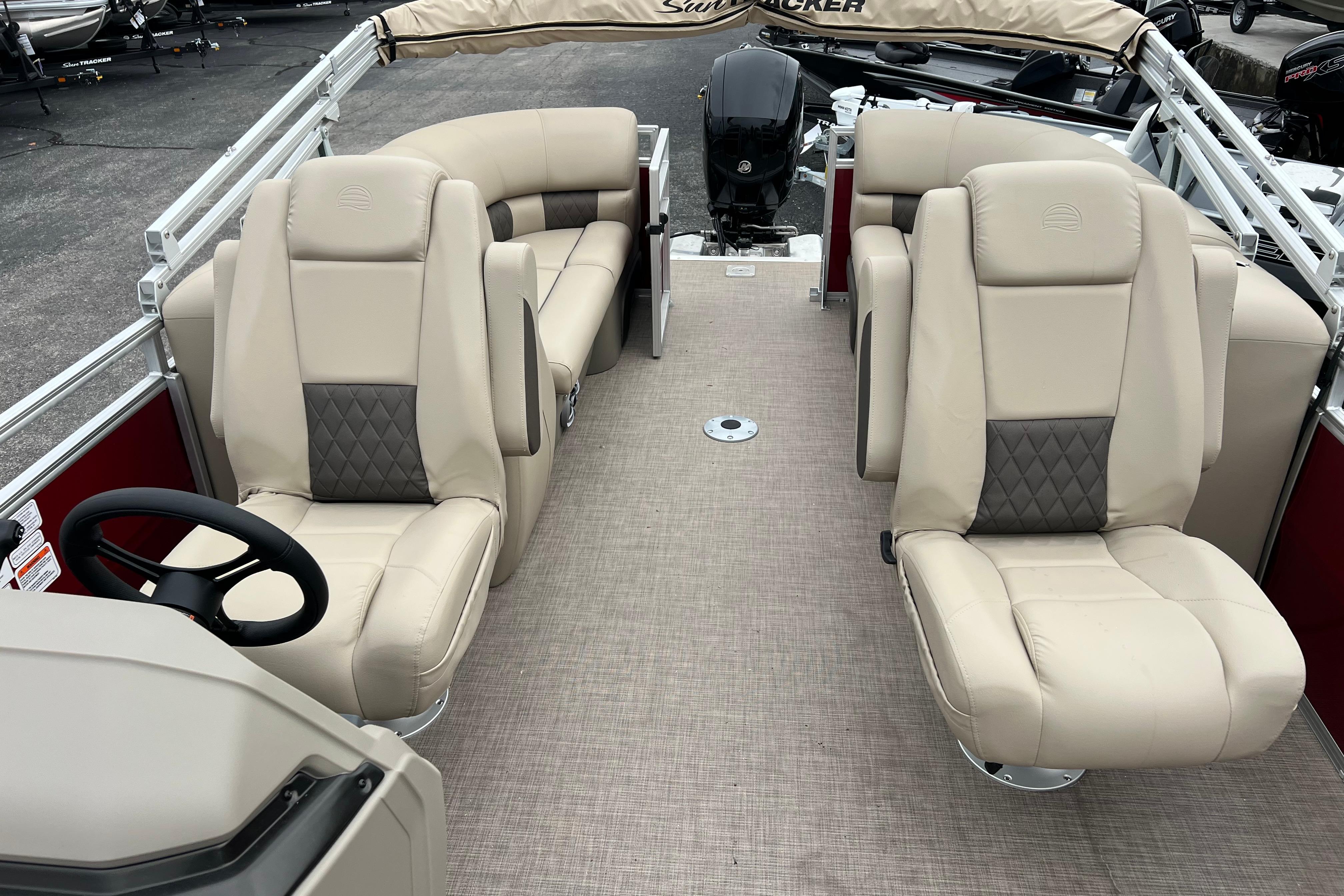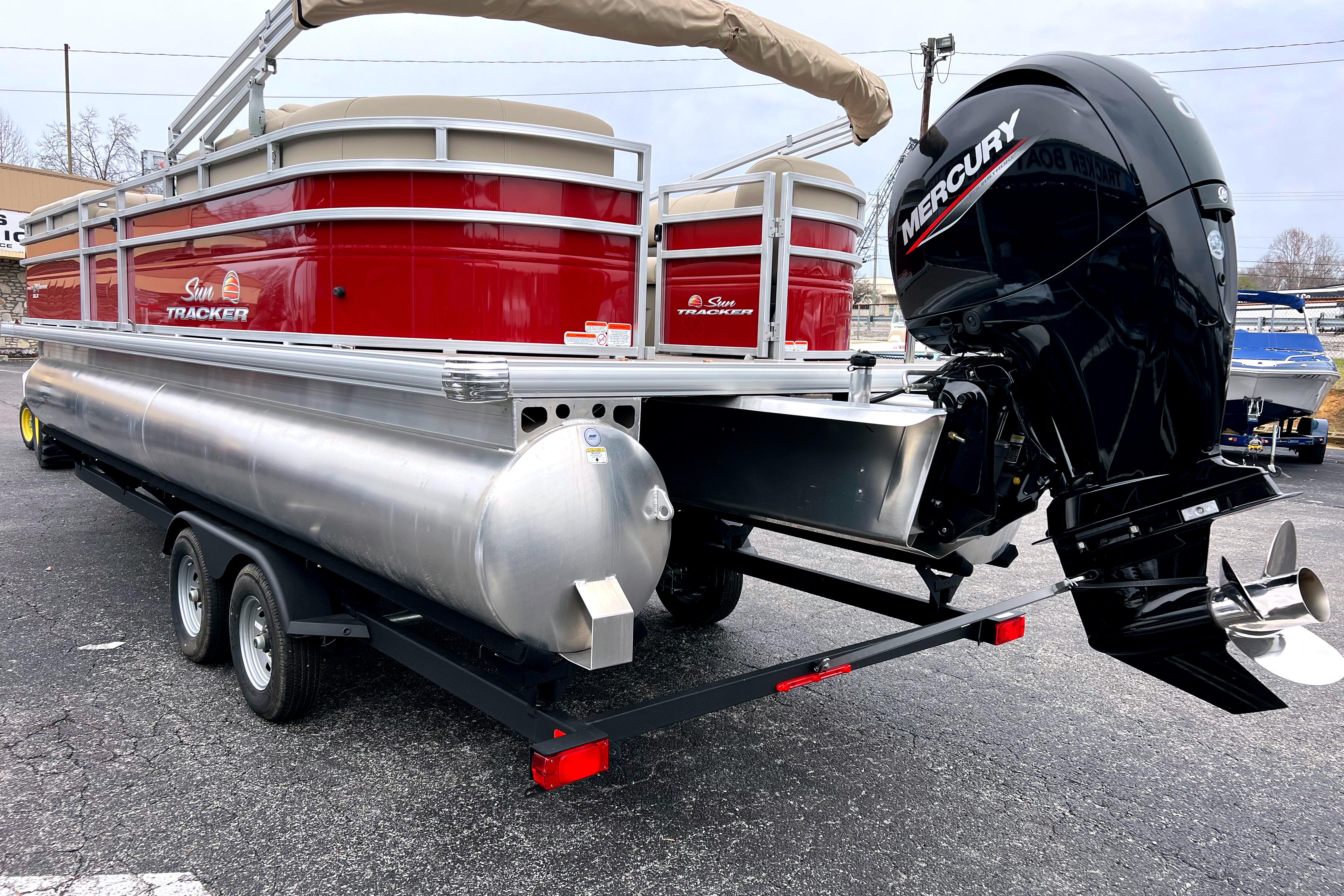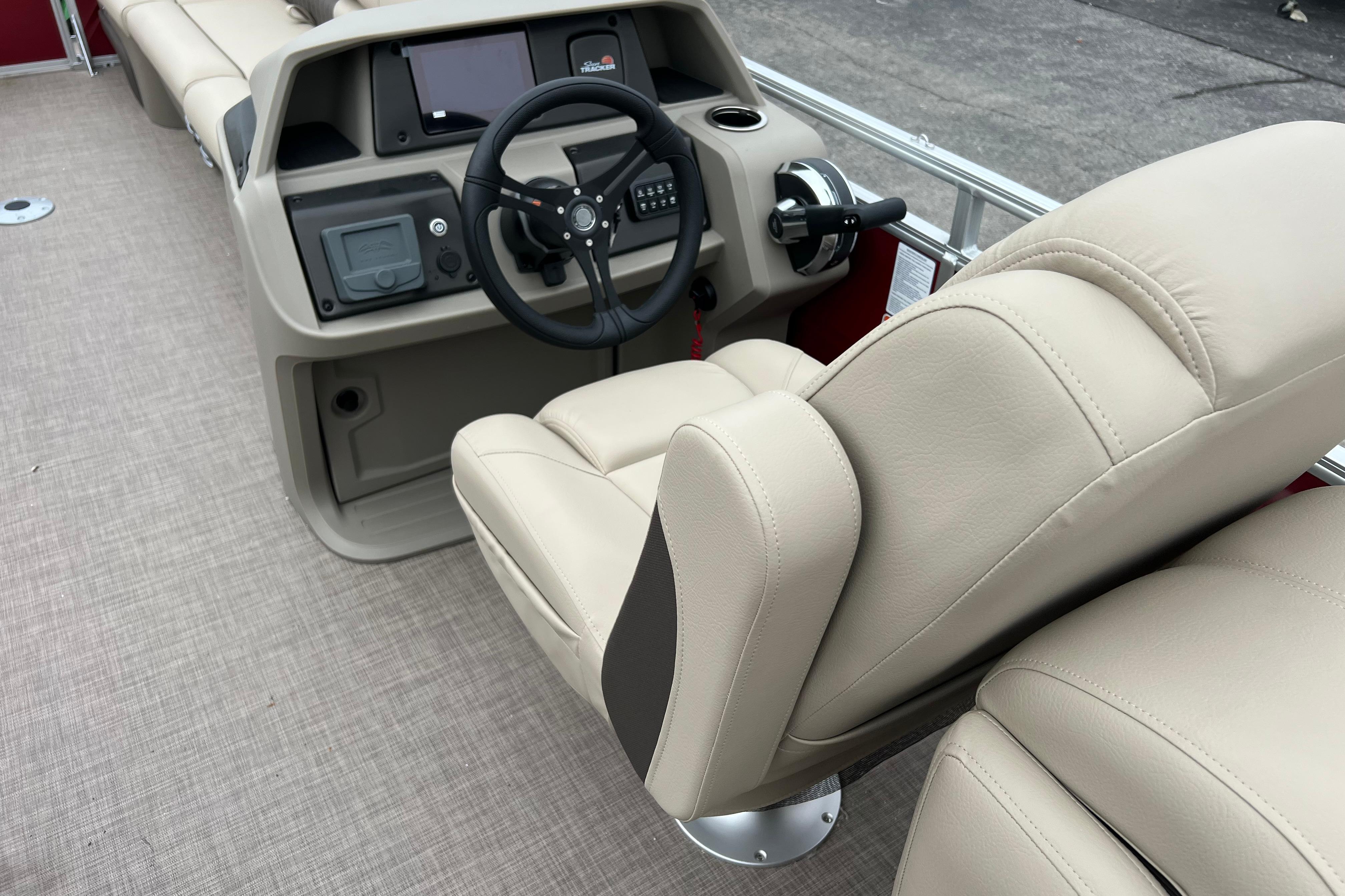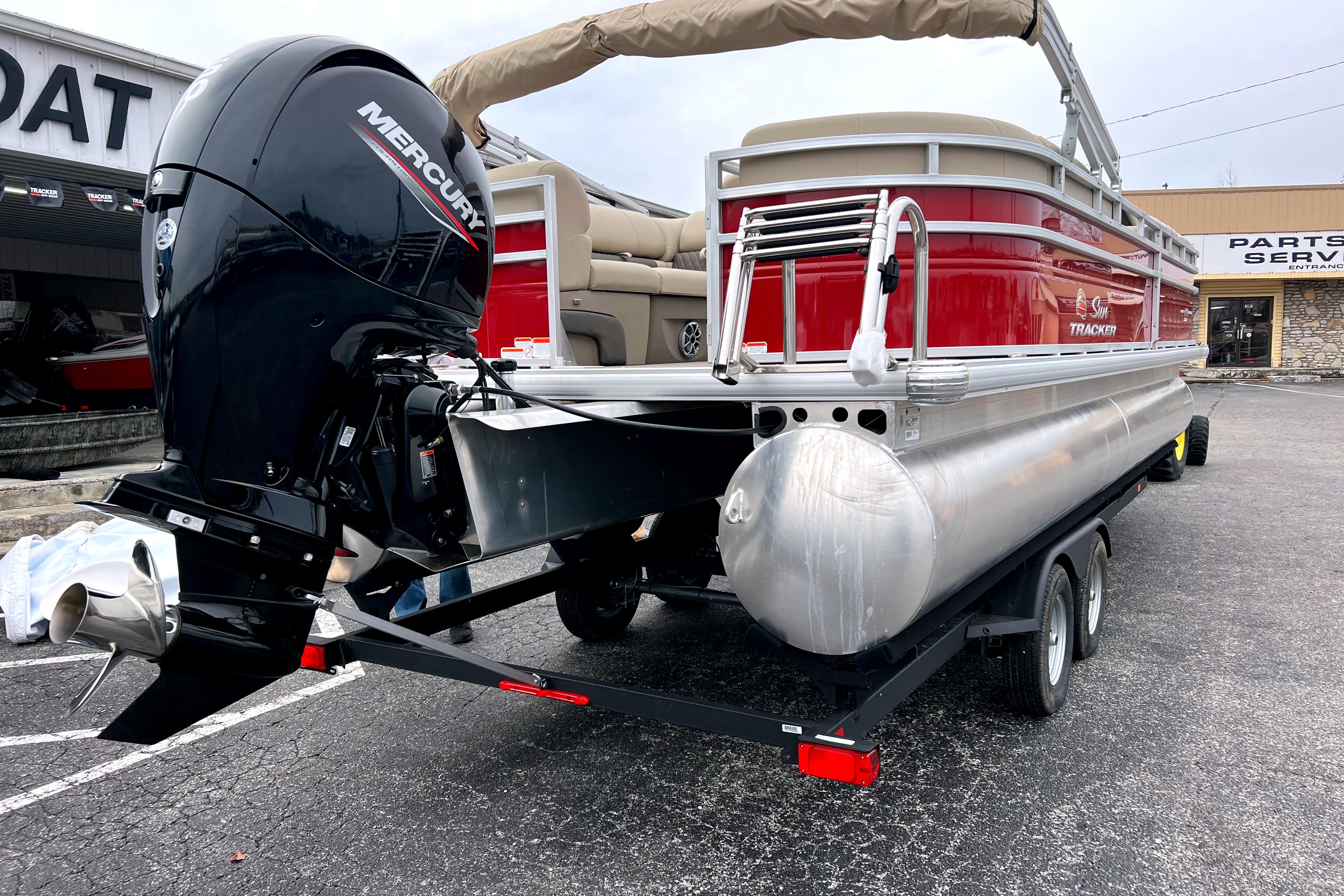 • 10' (3.05 m) SUN TRACKER® QuickLift™ Bimini top w/LED courtesy lights, storage pockets & protective boot (color-coordinated Black w/Charcoal fencing or Sand w/Copper Red fencing)