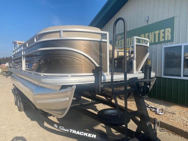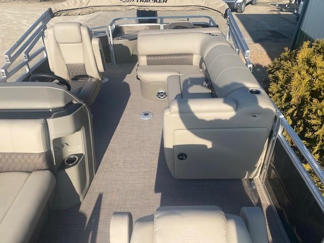 Get the best of 2 worlds with the 2025 SPORTFISH™ 20 DLX. This pontoon boat offers a space built for both serious fishing trips and days of fun on the water for up to 10 friends and family. Spend the day casting lines from the fore fishing captain's chair or the comfortable aft folding chair. These fishing stations feature an aft aerated livewell, drink holders, and rod holders. Navigate to the next fishing spot in the helm's captain's chair and the ergonomic console with a SUN TRACKER FLARE touchscreen, built-in storage space, and soft-touch steering wheel.