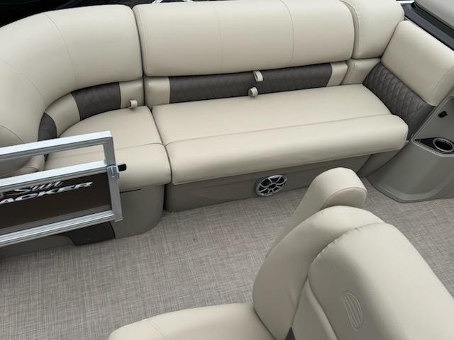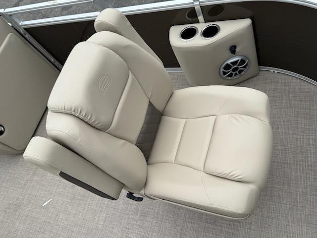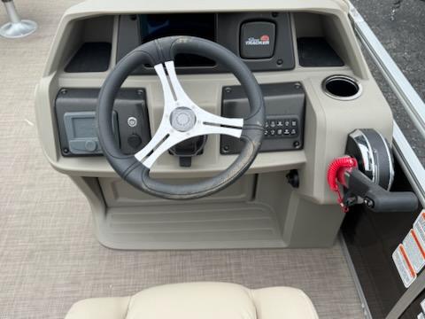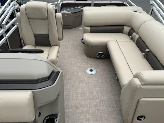 Get the best of 2 worlds with the 2025 SPORTFISH™ 20 DLX. This pontoon boat offers a space built for both serious fishing trips and days of fun on the water for up to 10 friends and family. Spend the day casting lines from the fore fishing captain's chair or the comfortable aft folding chair. These fishing stations feature an aft aerated livewell, drink holders, and rod holders. Navigate to the next fishing spot in the helm's captain's chair and the ergonomic console with a SUN TRACKER FLARE touchscreen, built-in storage space, and soft-touch steering wheel.